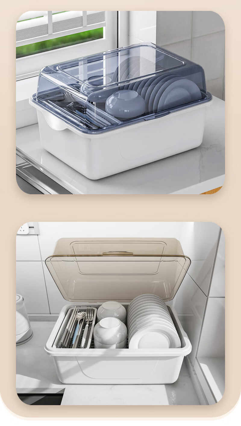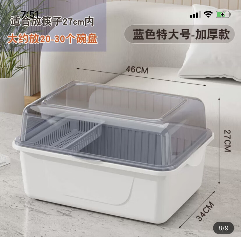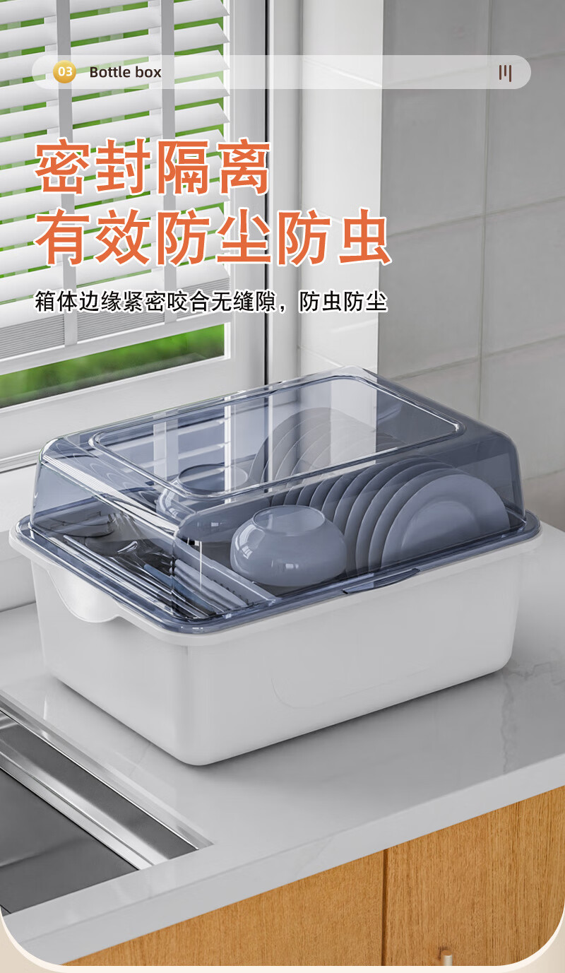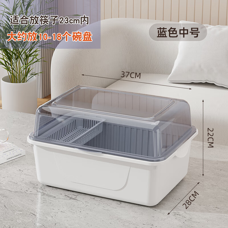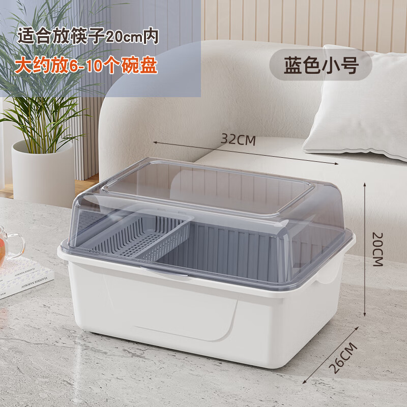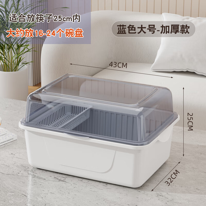 Cupboard Storage Box Cupboard Kitchen Covered Tableware Storage Box Dish Rack Storage Rack Blue Medium (Recommended for 2-4 People)