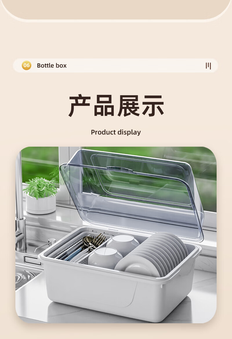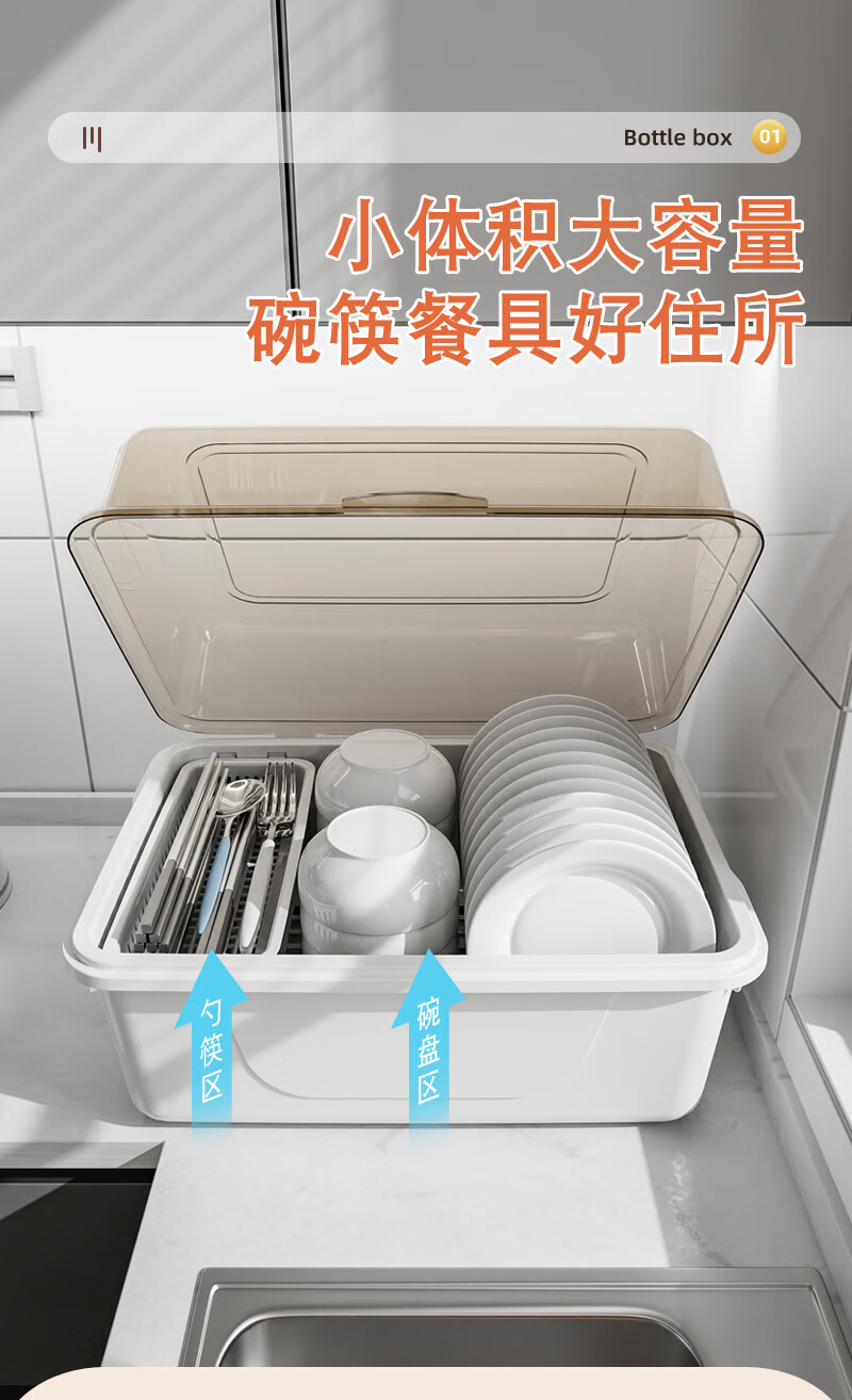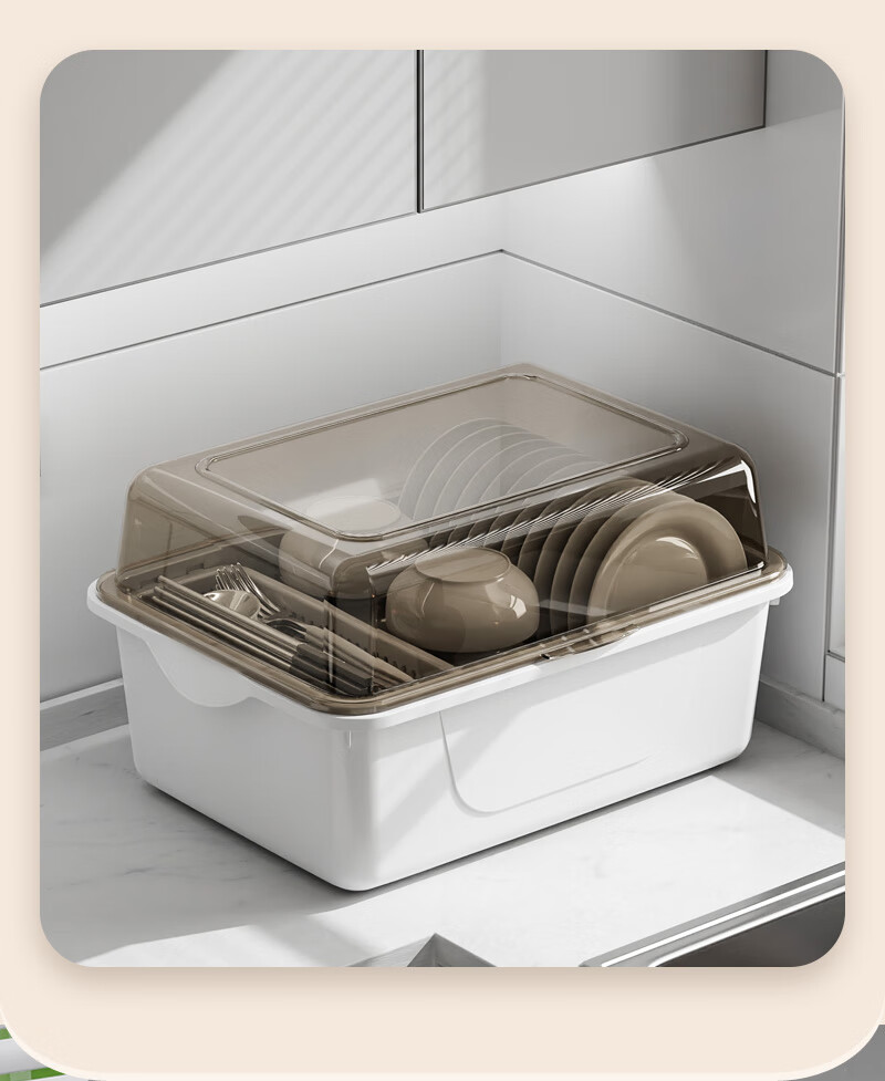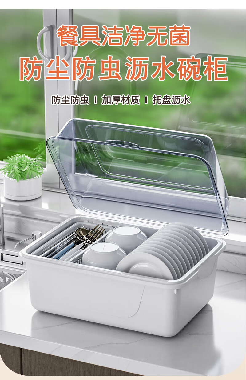 Cupboard Storage Box Cupboard Kitchen Covered Tableware Storage Box Dish Rack Storage Rack Blue Medium (Recommended for 2-4 People)