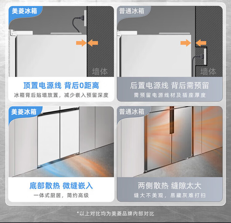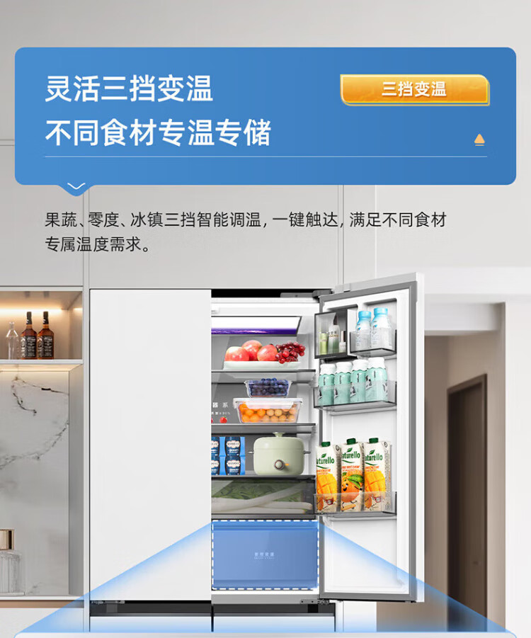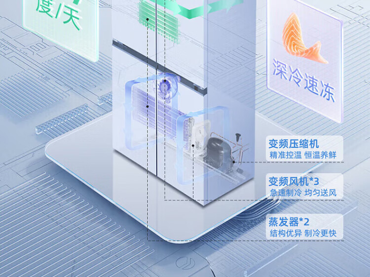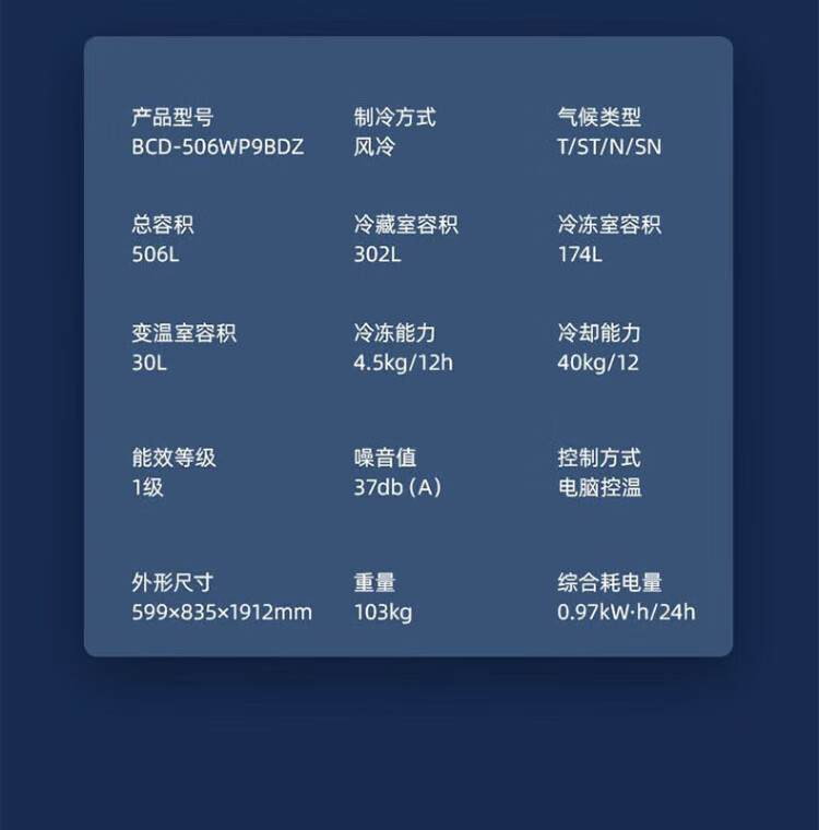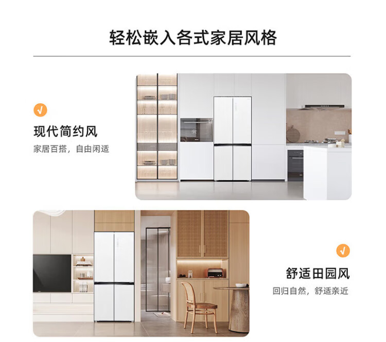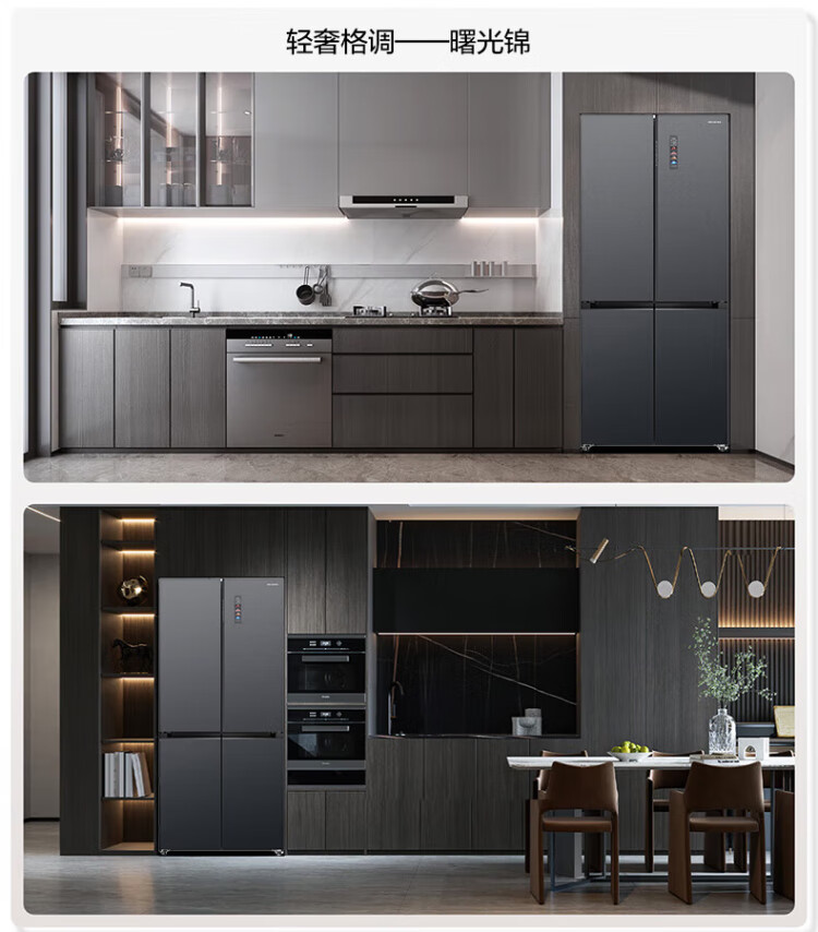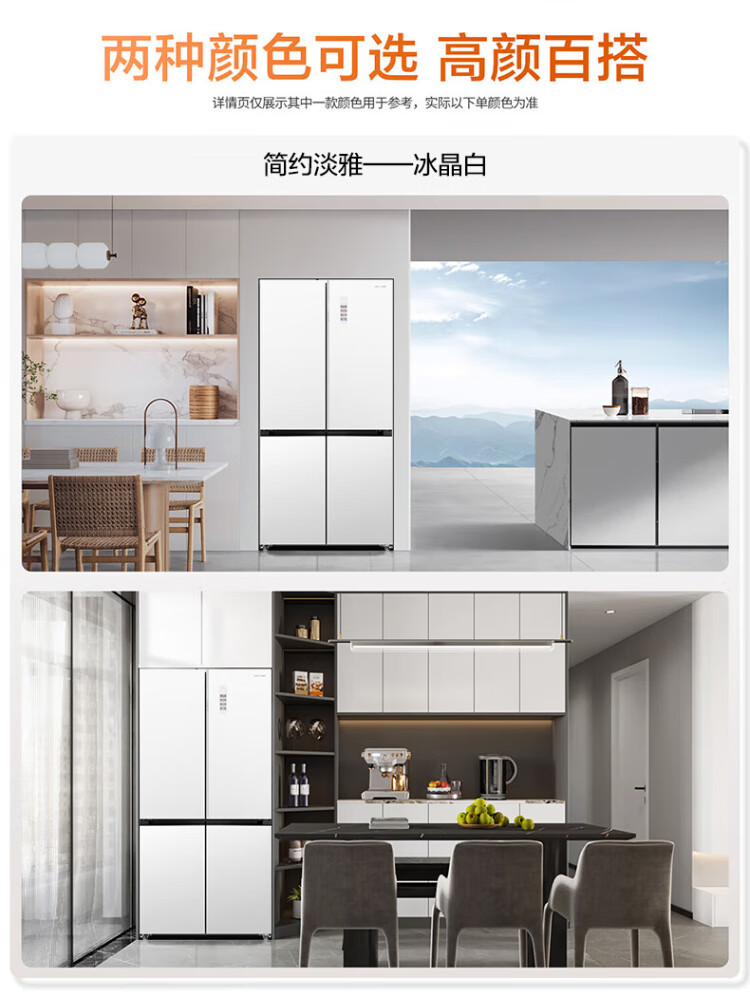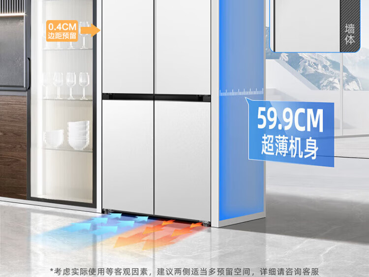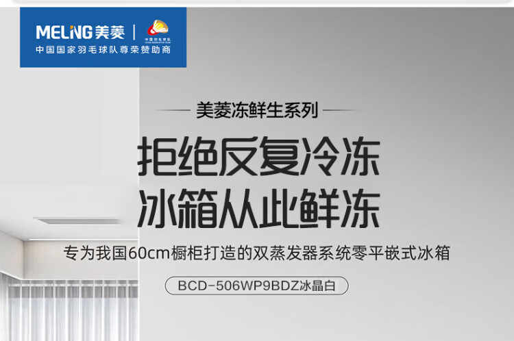 MeiLing dual system 60cm zero-flat embedded line refrigerator of the same style 506/507 liters household cross four-door ultra-thin double frequency conversion color crystal glass door refrigerator BCD-506WP9BDZ constant temperature fresh frozen Shuguangjin