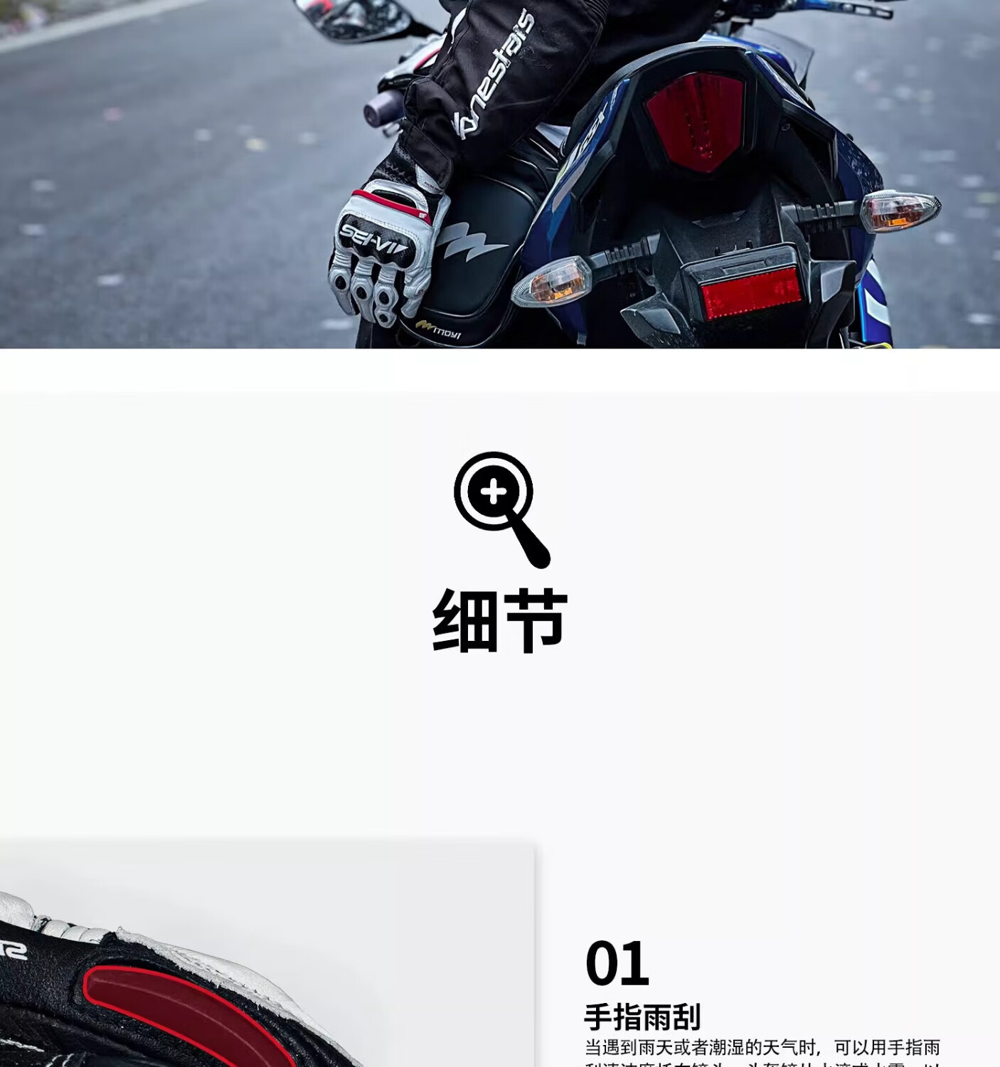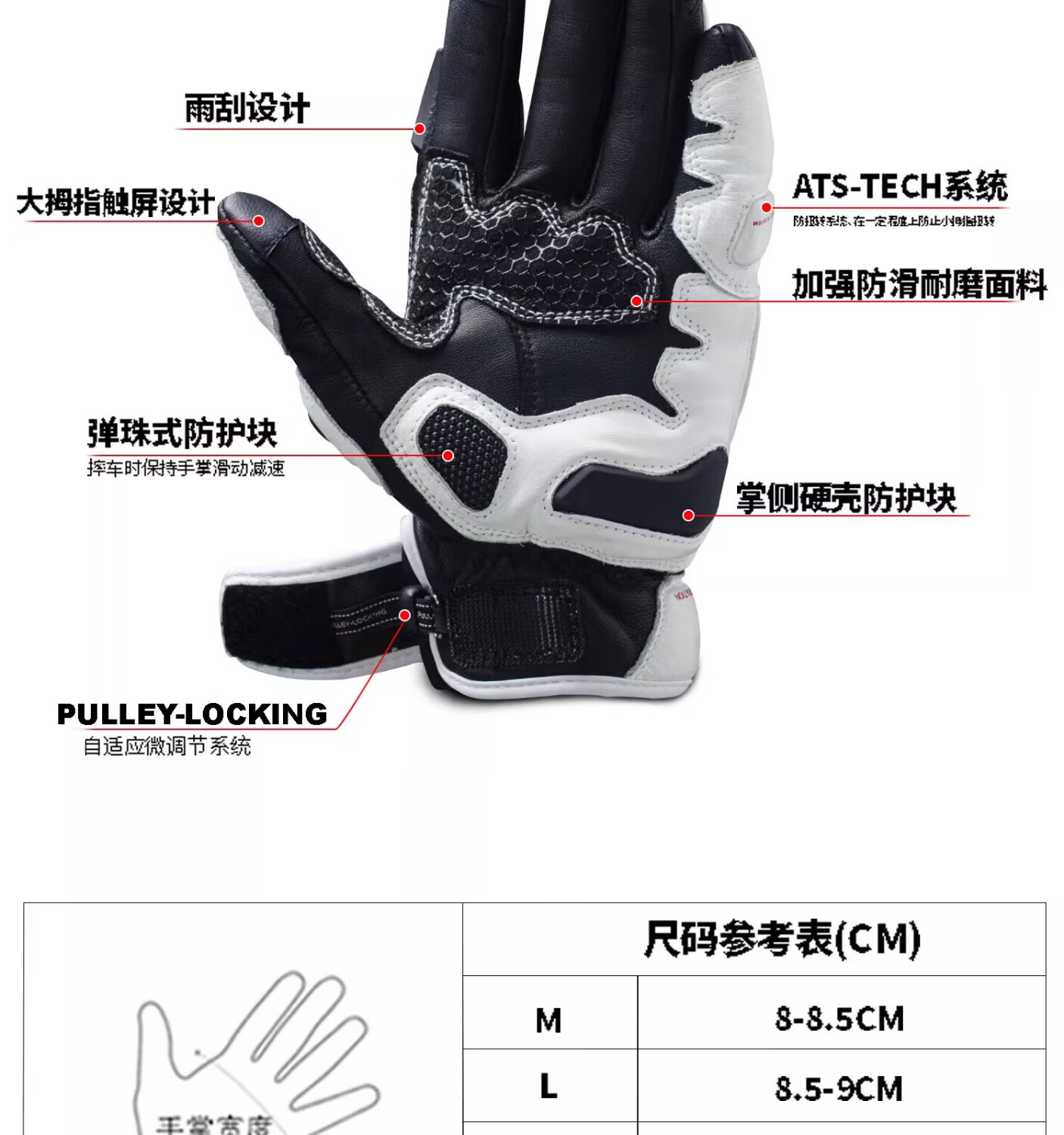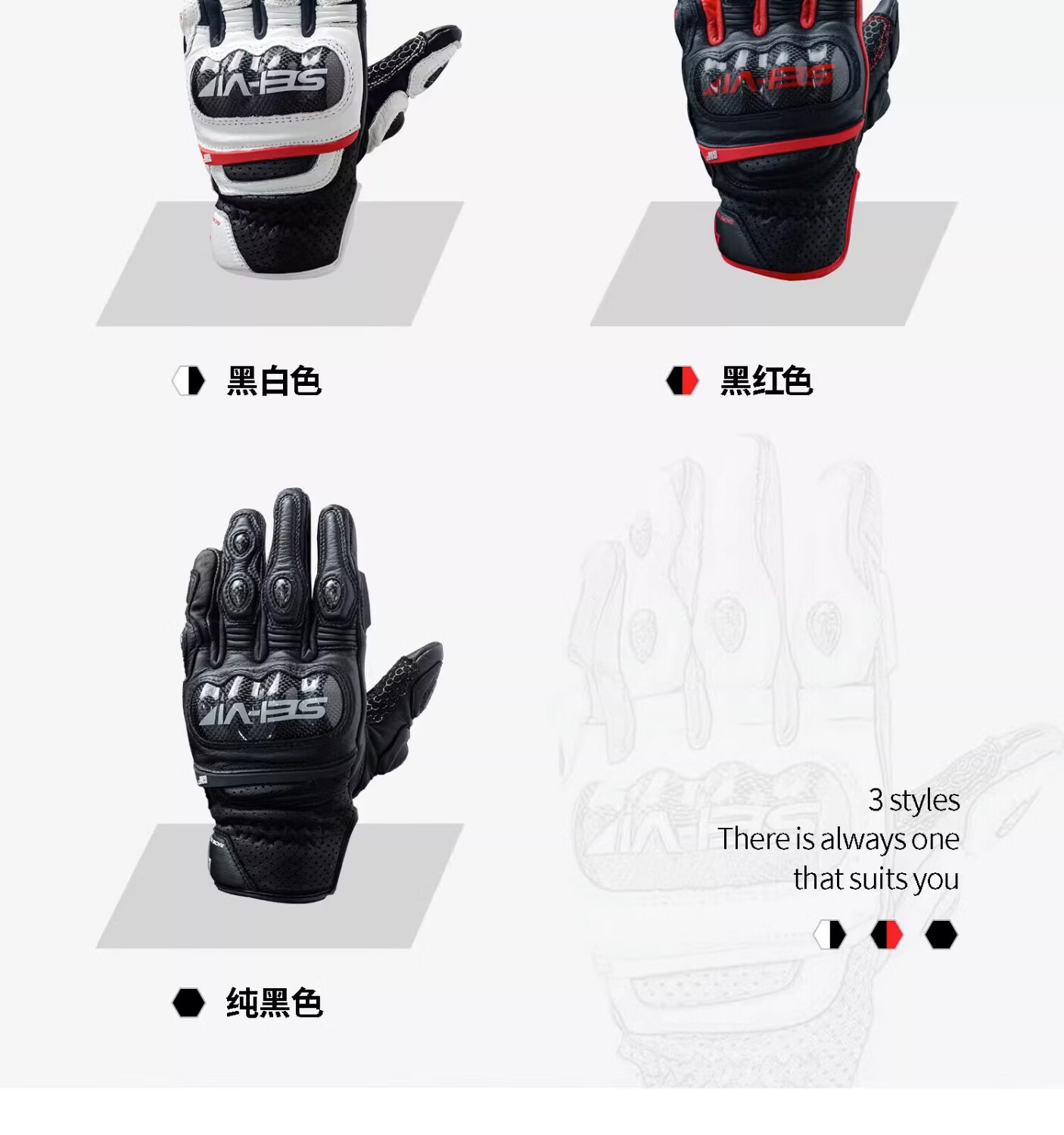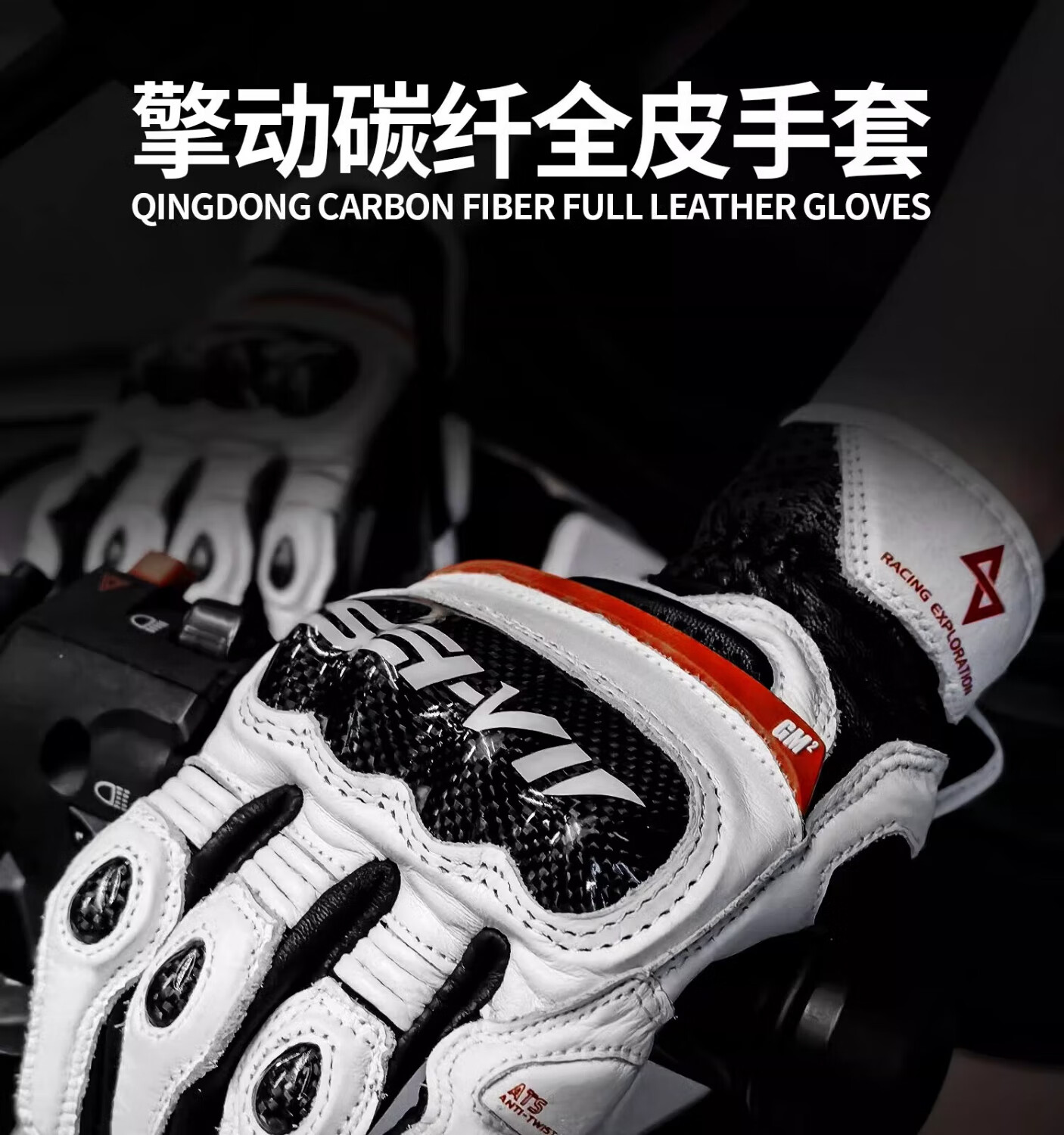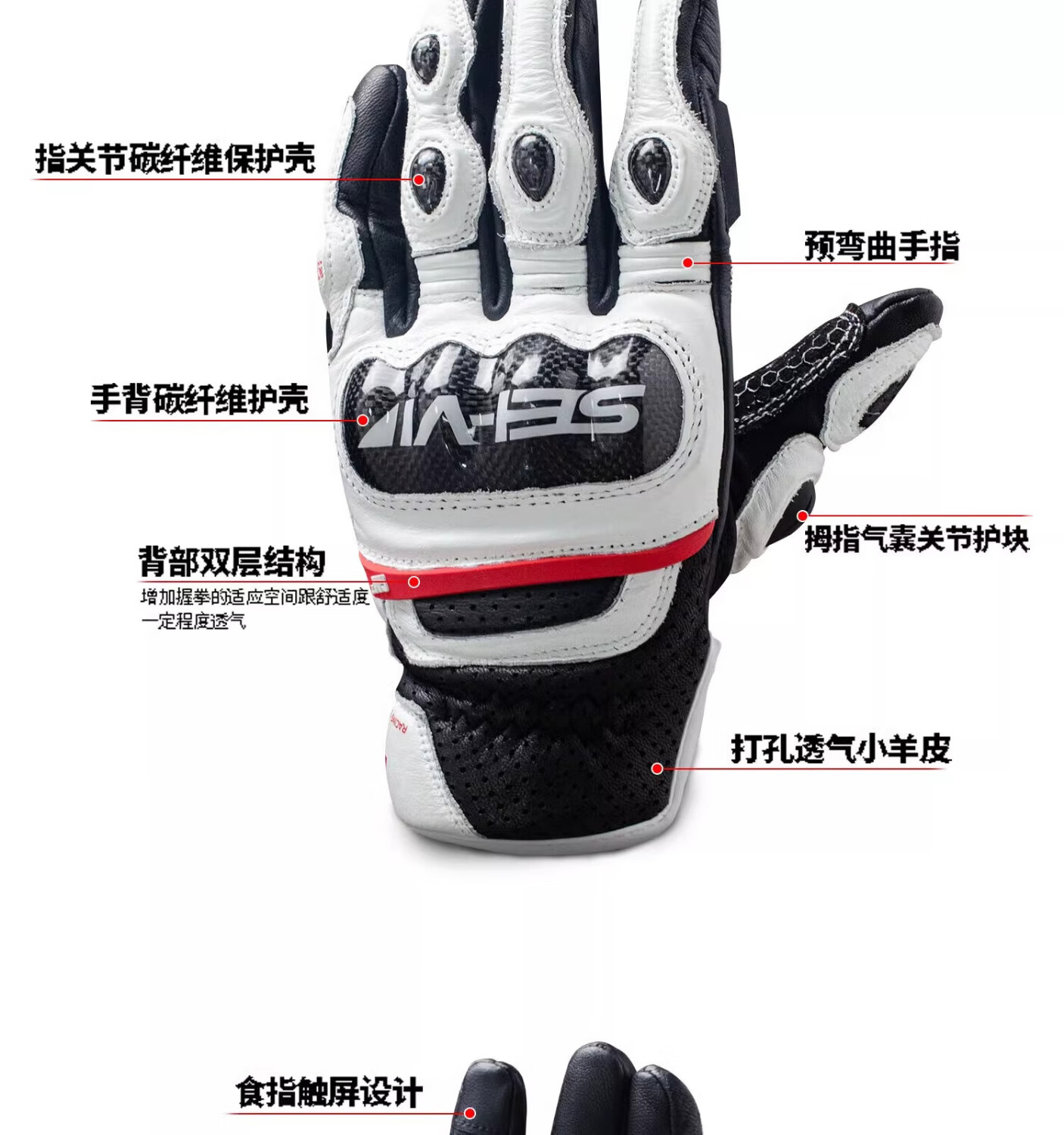 SEI-VI Saiwei motorcycle gloves men's breathable all-season riding carbon fiber touch screen outdoor anti-fall female rider equipment motorcycle GM2 white carbon fiber shell universal M palm width 8-8.5cm