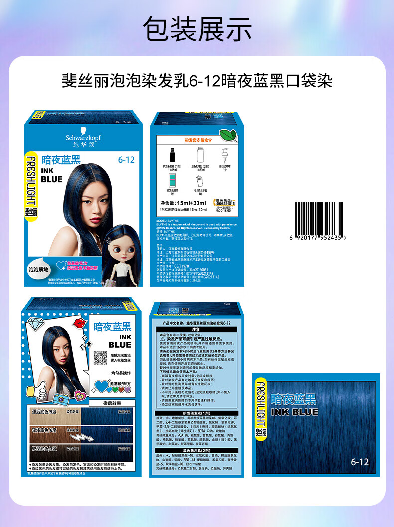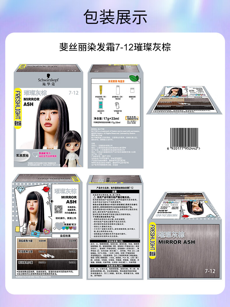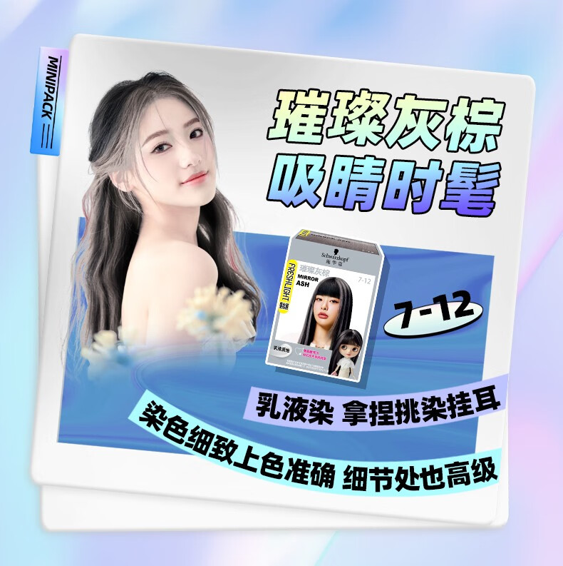 Schwarzkopf Fesli Bubble Hair Dye Cream Hair Dye Mini Mini Pocket Dye Trendy Highlights and Hanging Ear Hair Dye Cream Highlights as You Want Bright Gray Brown 7-12