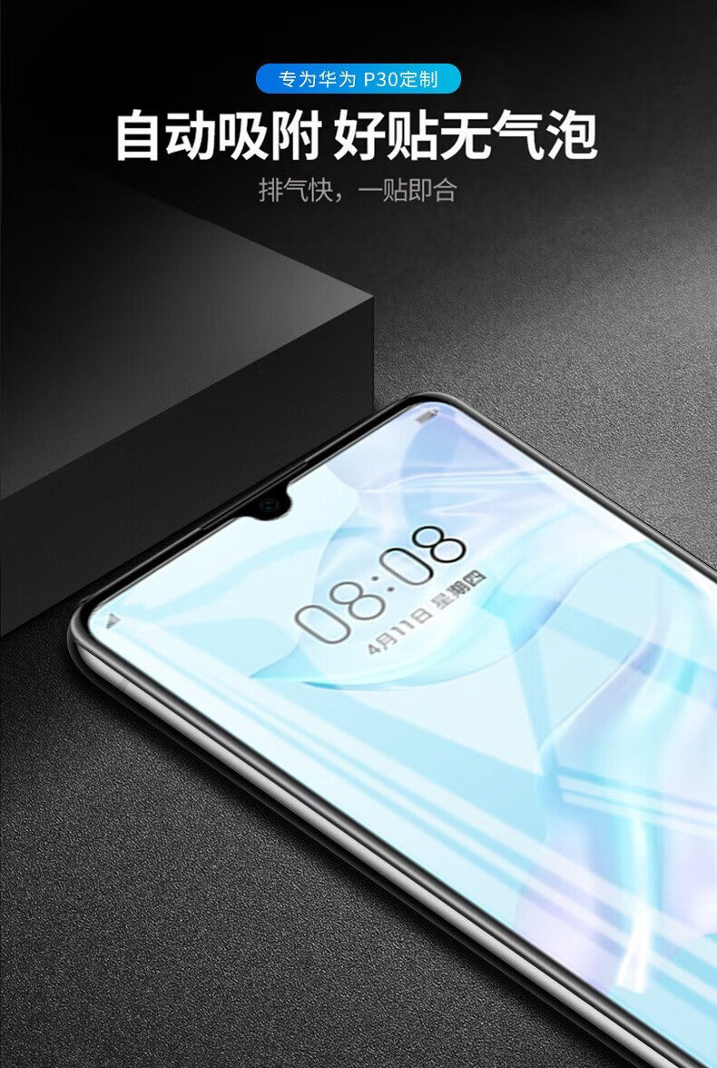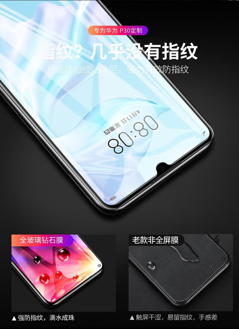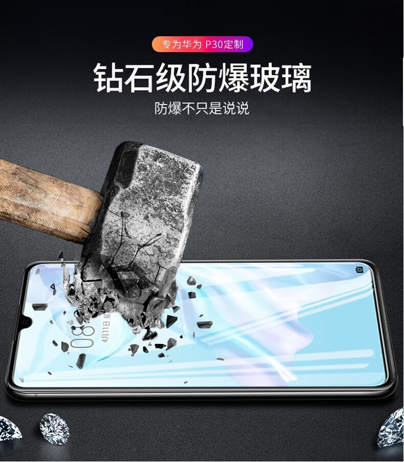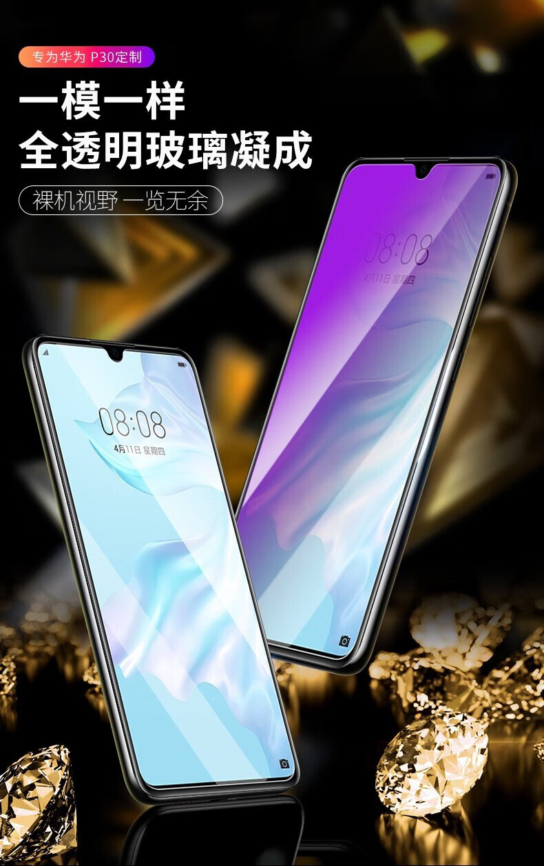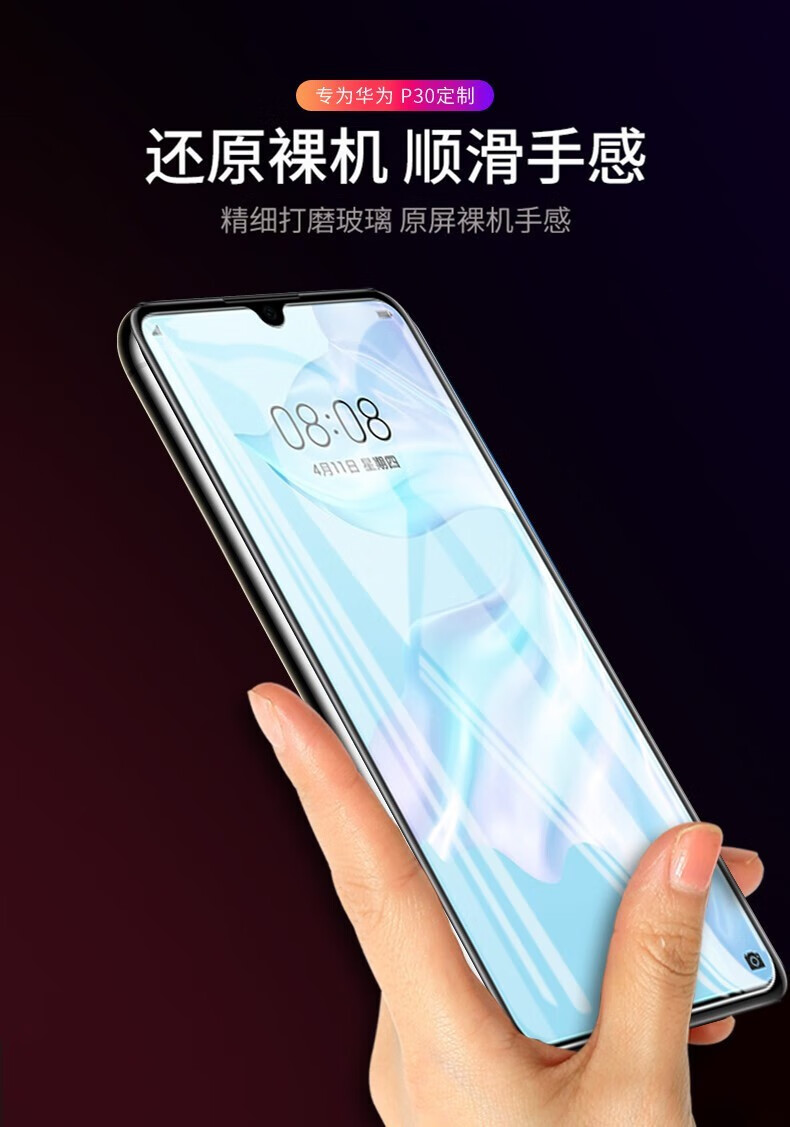 Saint Turan suitable for Huawei P30 tempered film p30 full screen cover film ELE-AL00 high-definition anti-fingerprint eye protection and anti-fall mobile phone film Huawei P30 full screen tempered film ultra-clear 4K 2 pieces