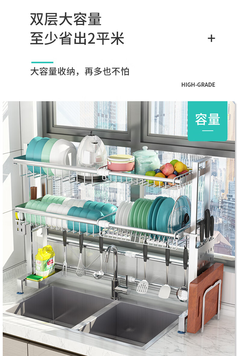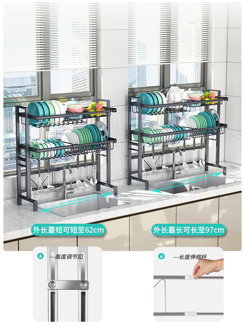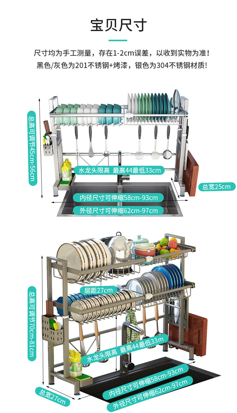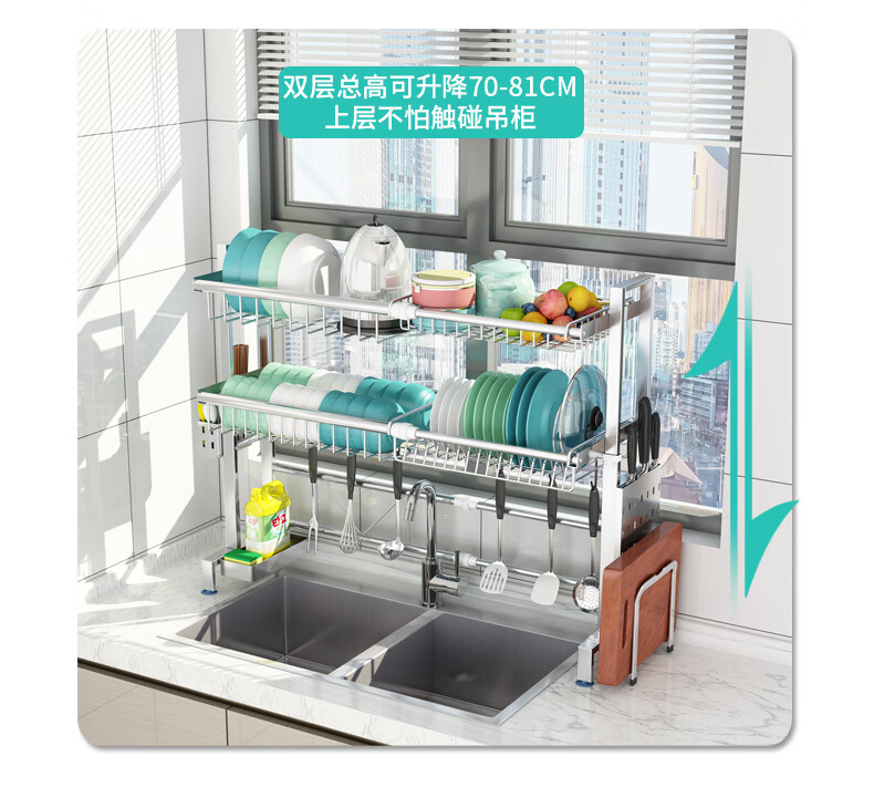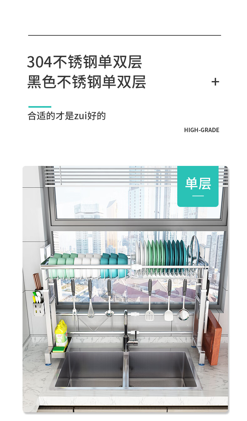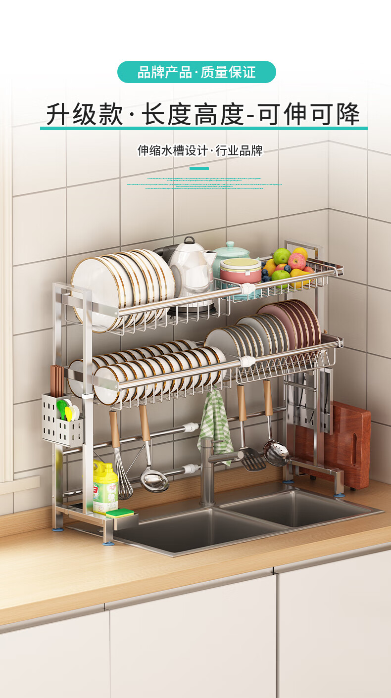 Yunhuan 304 stainless steel kitchen rack sink retractable wash basin dishes and chopsticks drain rack supplies household M005C silver single layer - chopsticks and spoon holder + knife holder