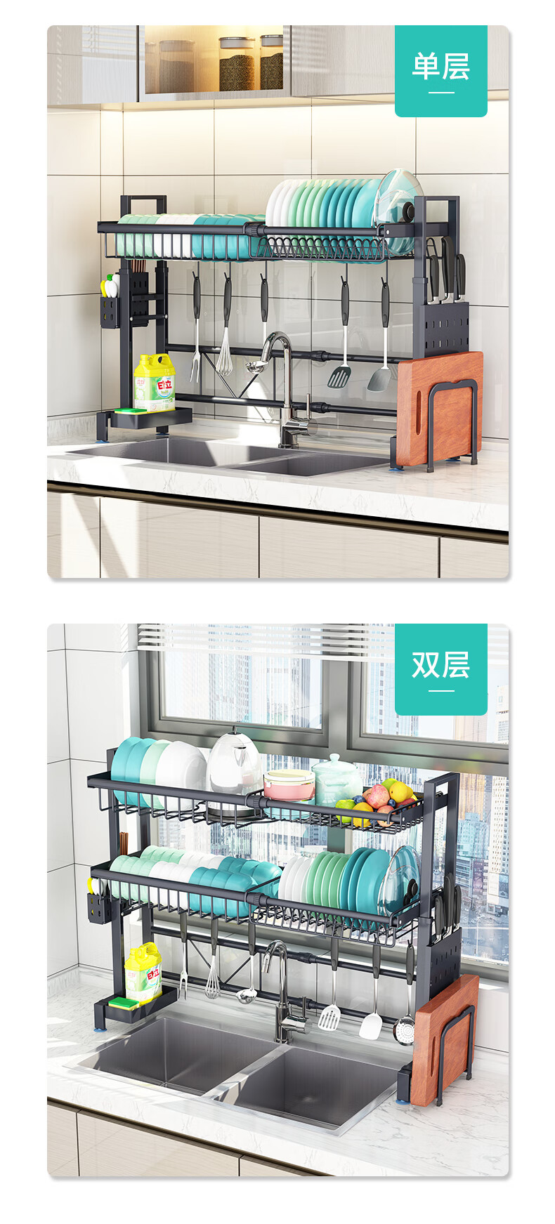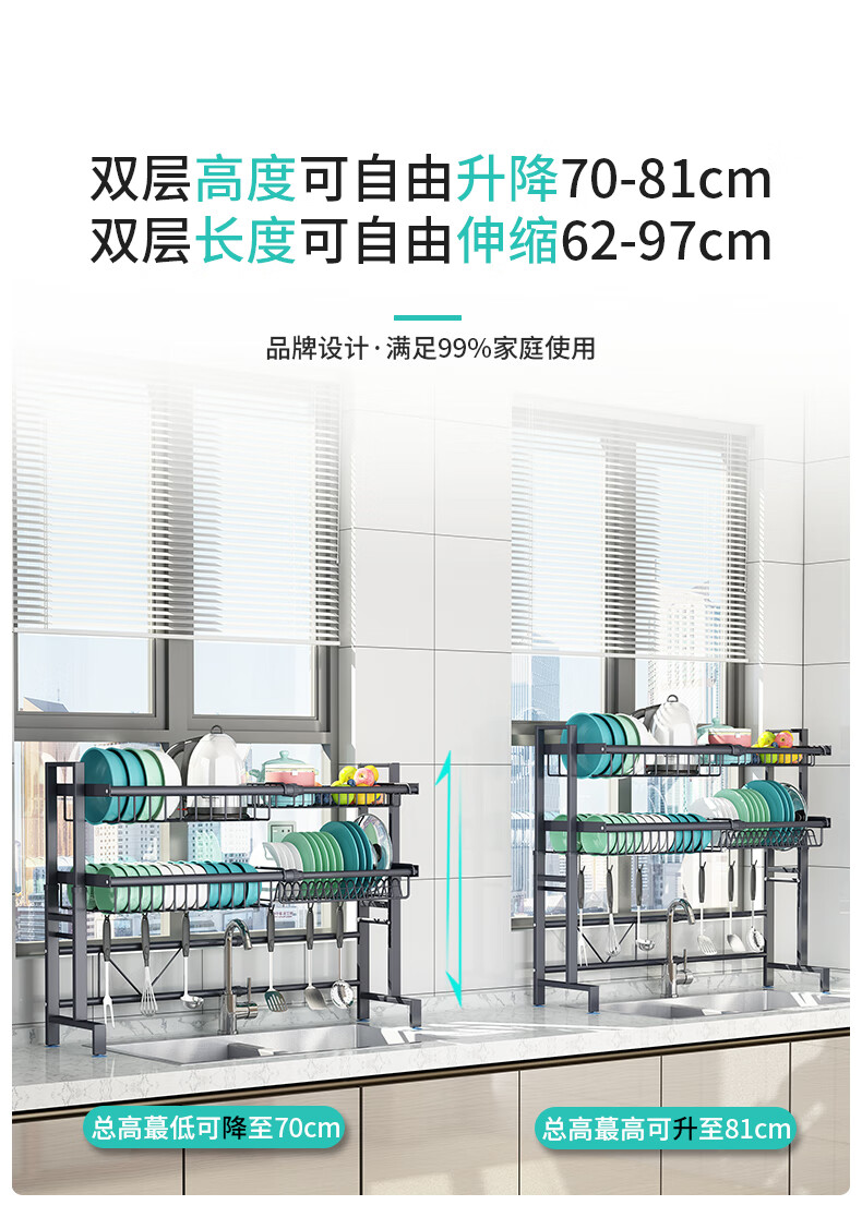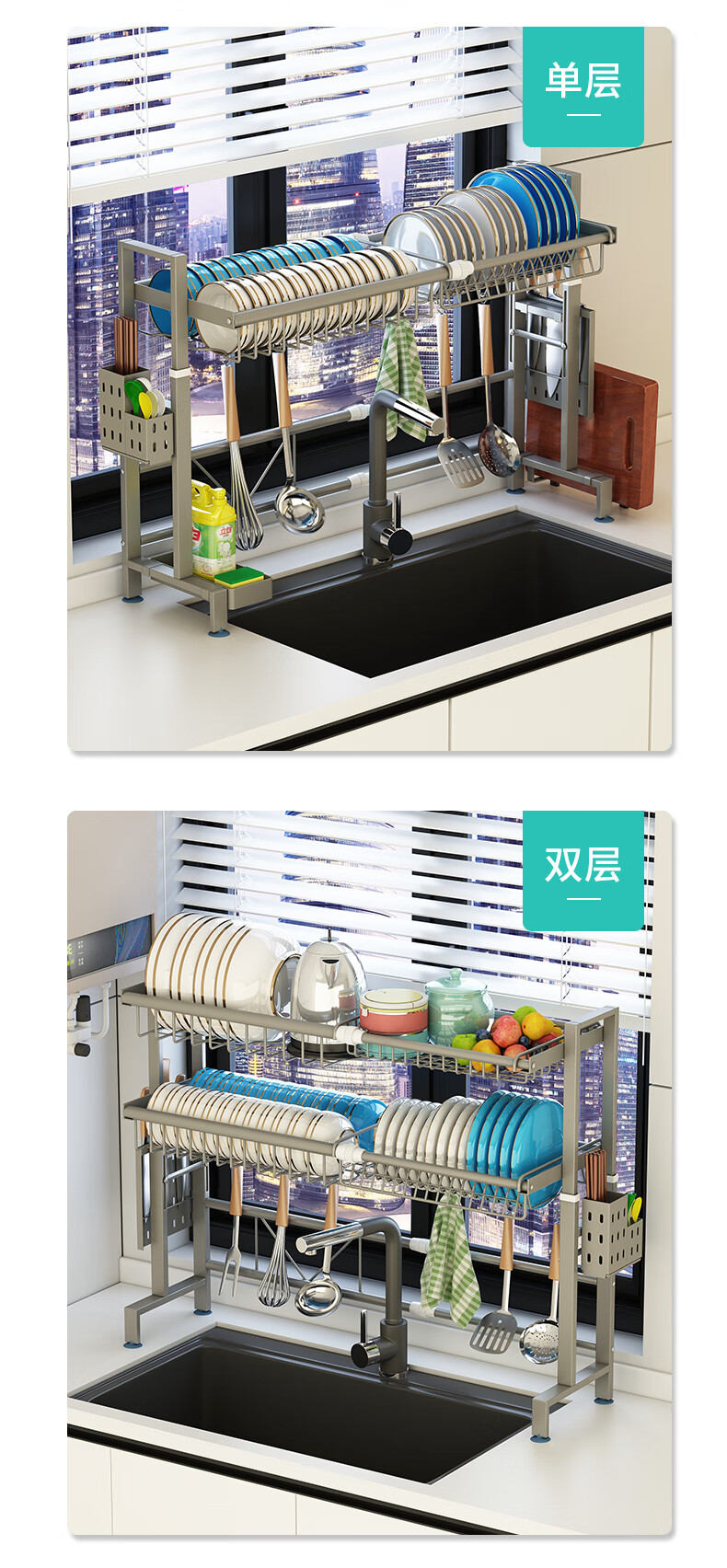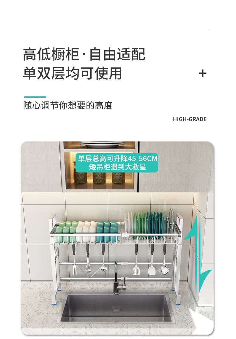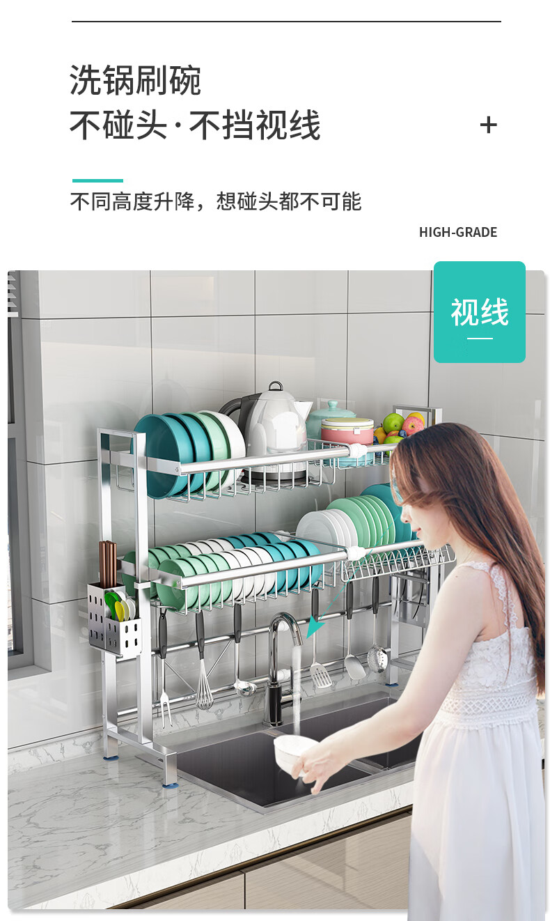 Yunhuan 304 stainless steel kitchen rack sink retractable wash basin dishes and chopsticks drain rack supplies household M005C silver single layer - chopsticks and spoon holder + knife holder