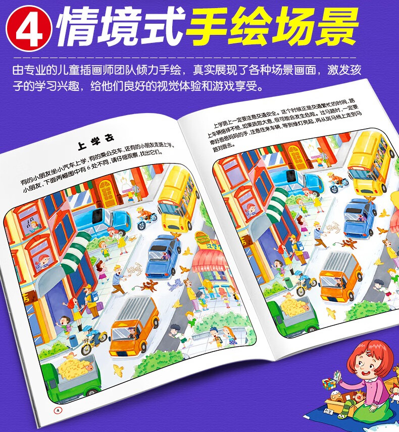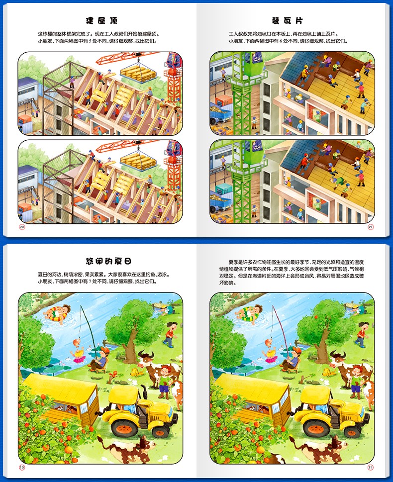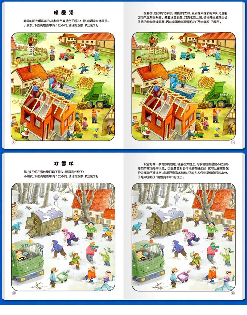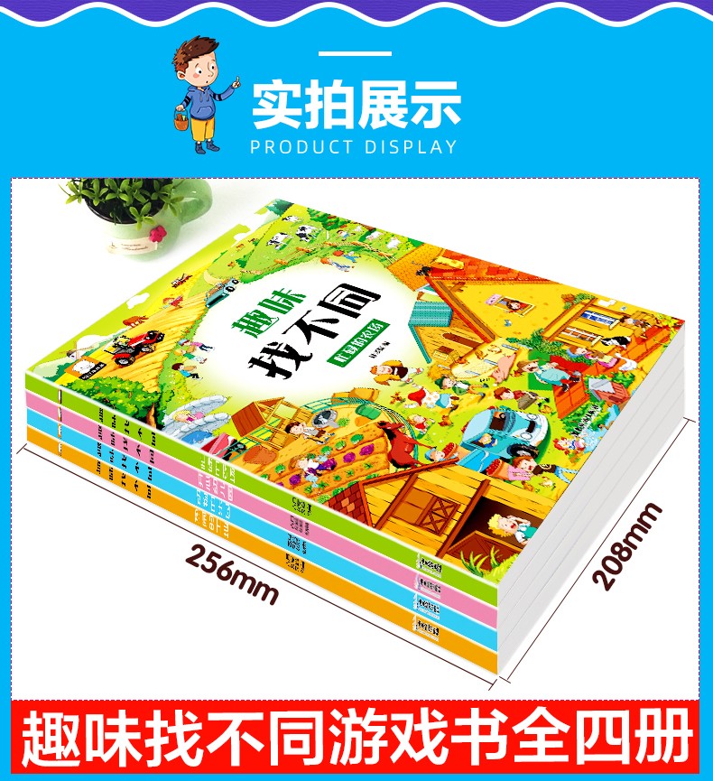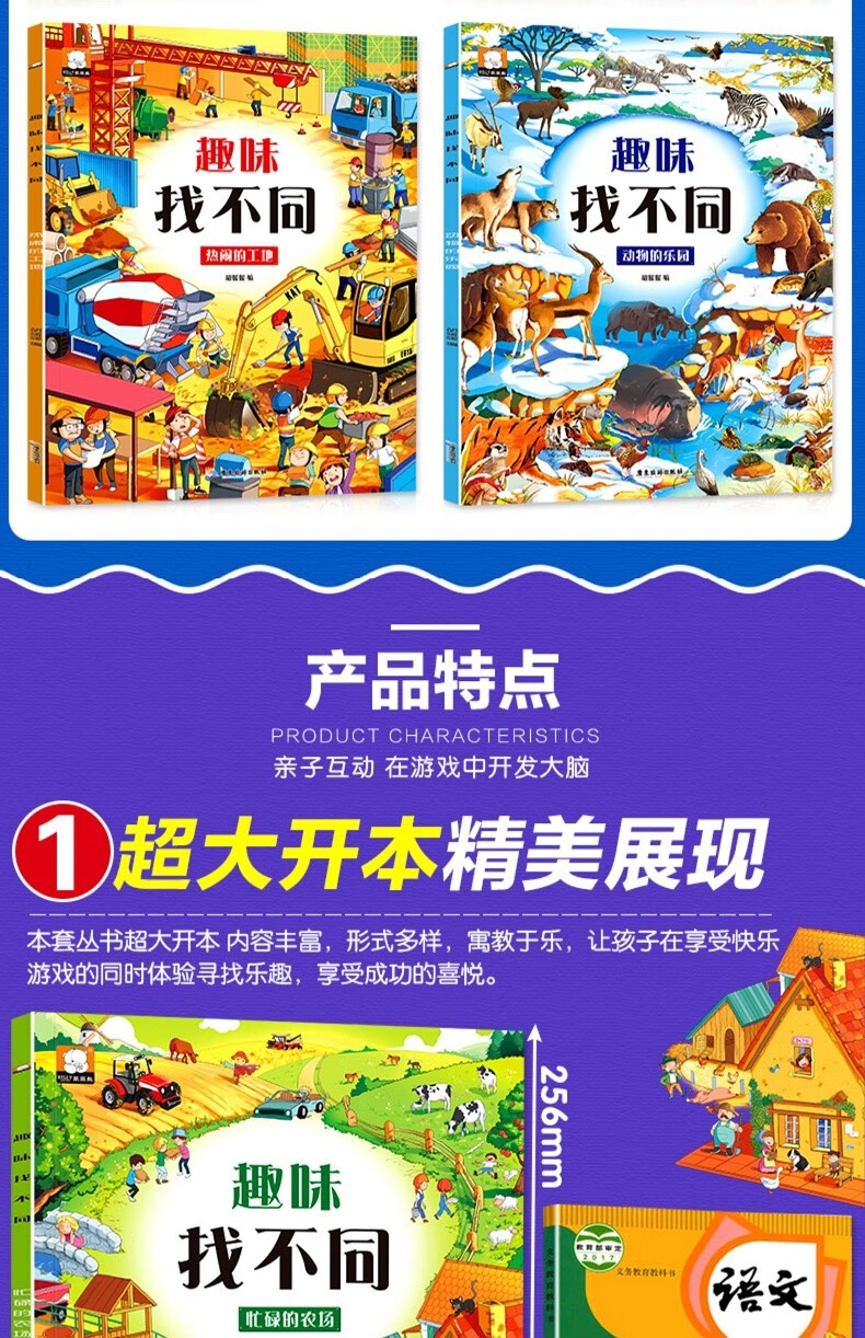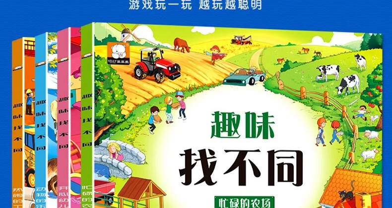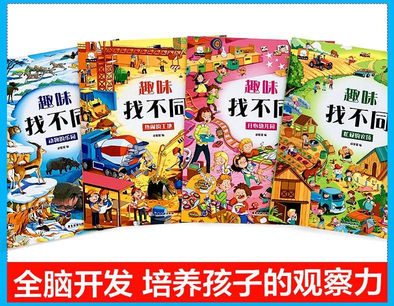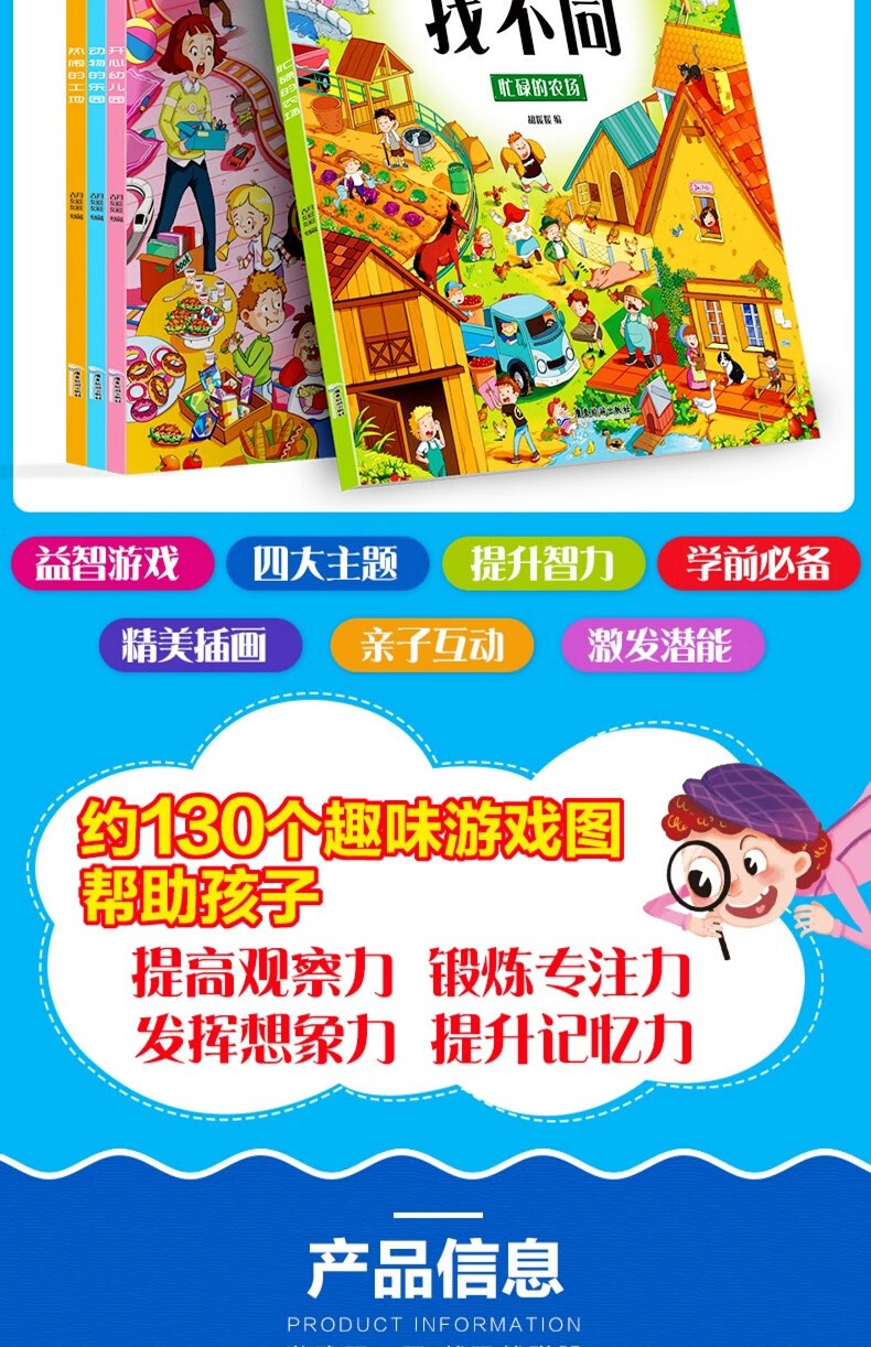 4 volumes of fun Find Differences, concentration training children's book for 3-5-6-7-10 years old, highly difficult educational books, brain development children's books, pattern-finding and difference-finding books, thinking training baby's intelligence book, attention book for preschool brainpower, a full set of 4 volumes, Fun Find Differences