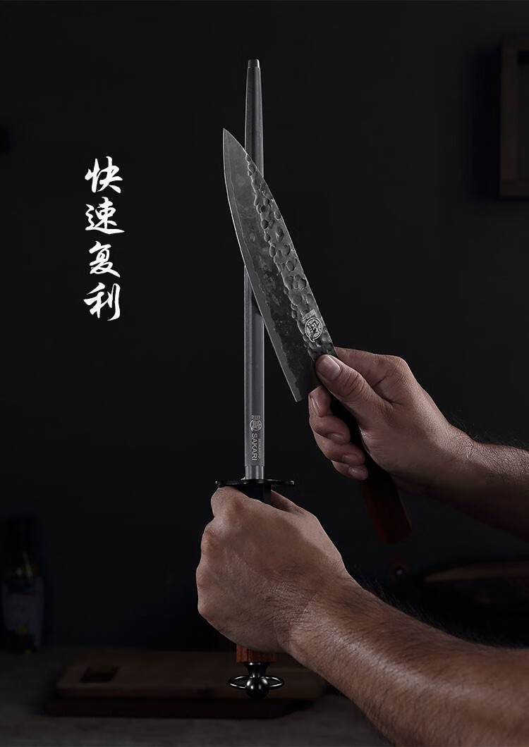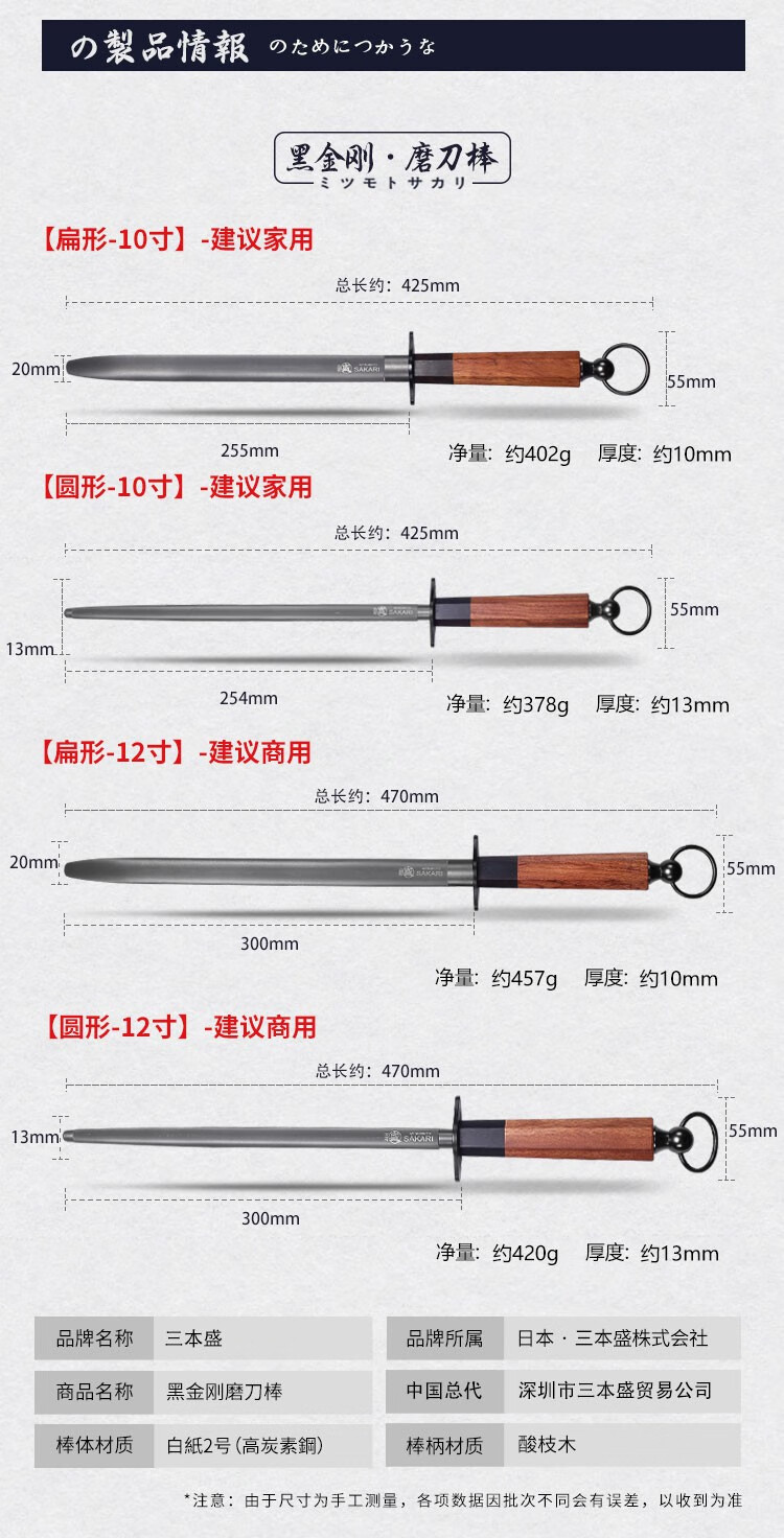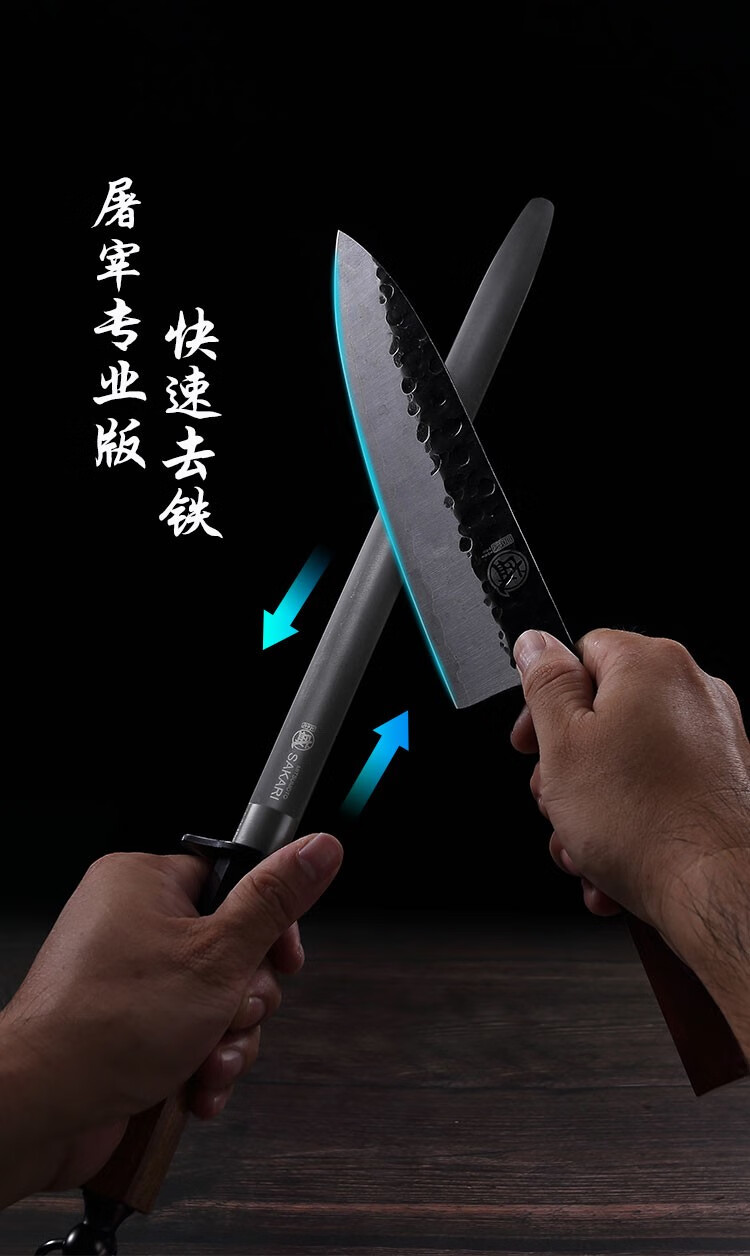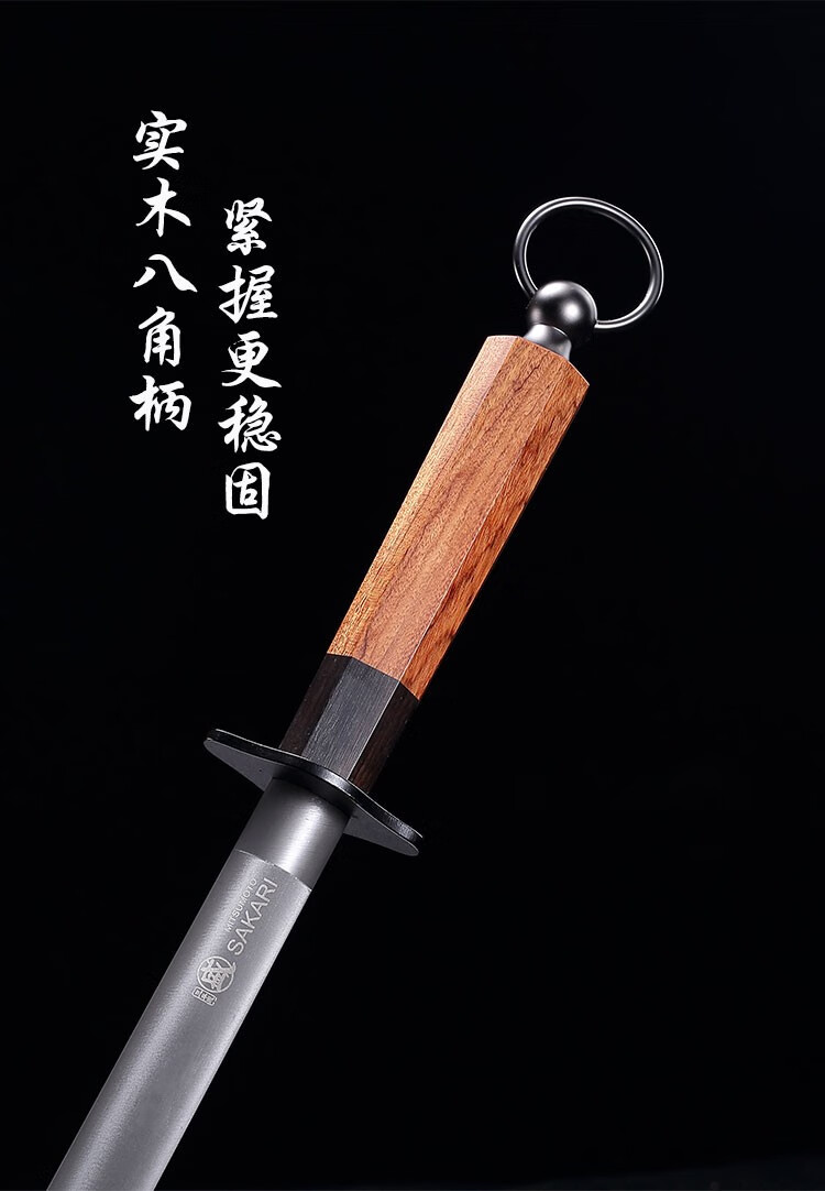 Sanbensheng sharpening stick high carbon steel sharpening stick household sharpening tool slaughterhouse commercial special round rosewood/10 inches
