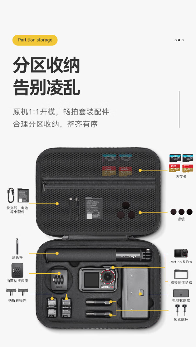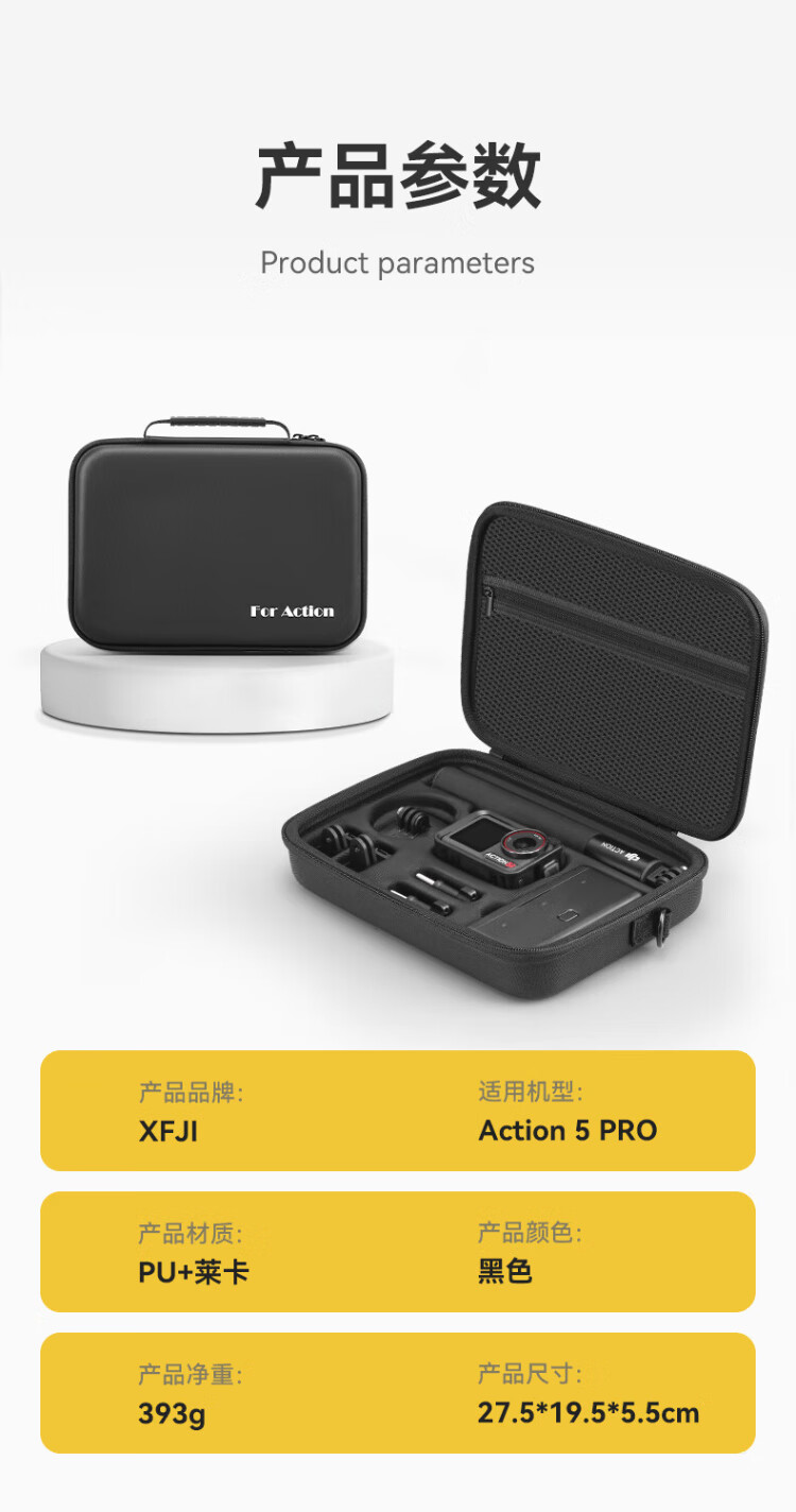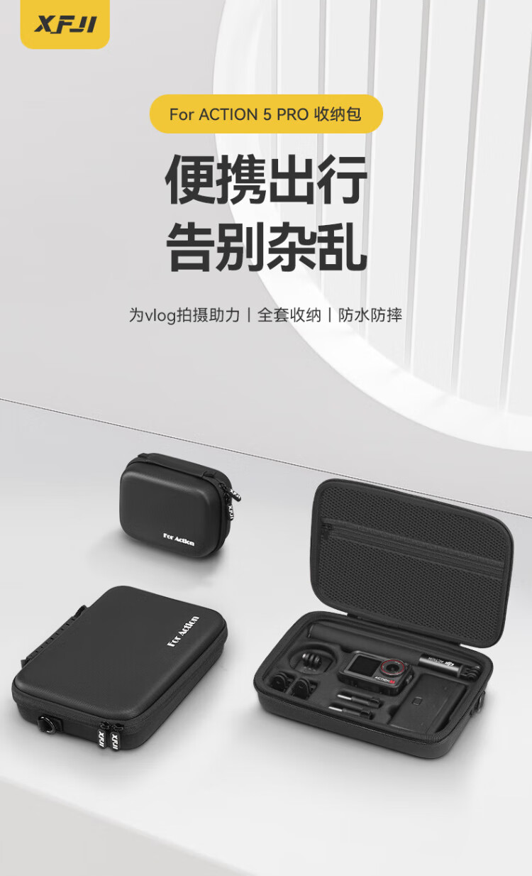 XFJI is suitable for DJI DJI Action5Pro smooth shooting storage bag, portable filter set bag, Action4/3 action camera standard all-in-one bag, universal charging handle storage box, action5Pro 4 universal all-round suit bag, free lens cover
