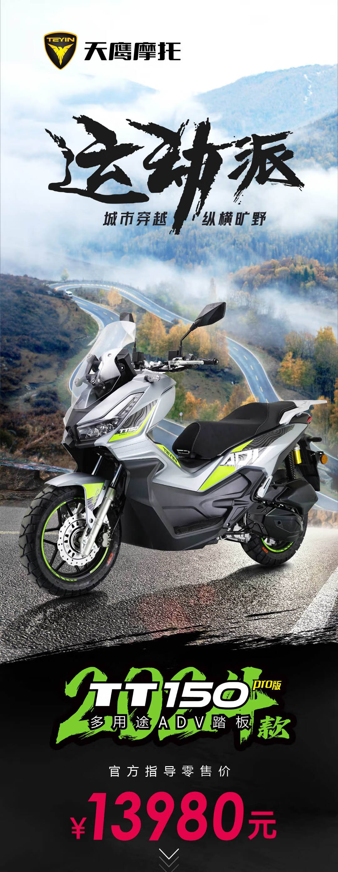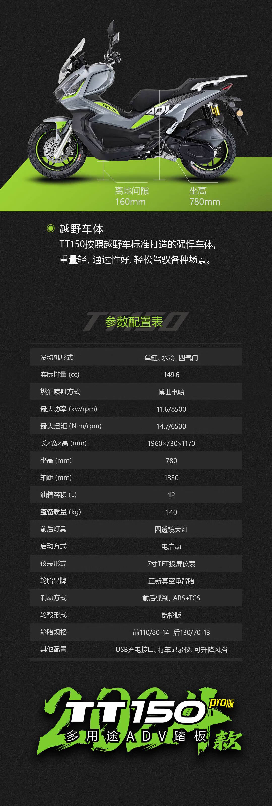 Skyhawk 2024 water-cooled four-valve TT150 ADV gray