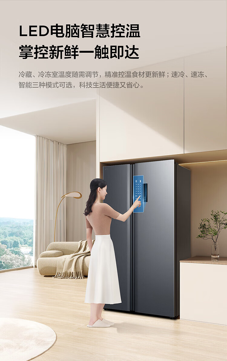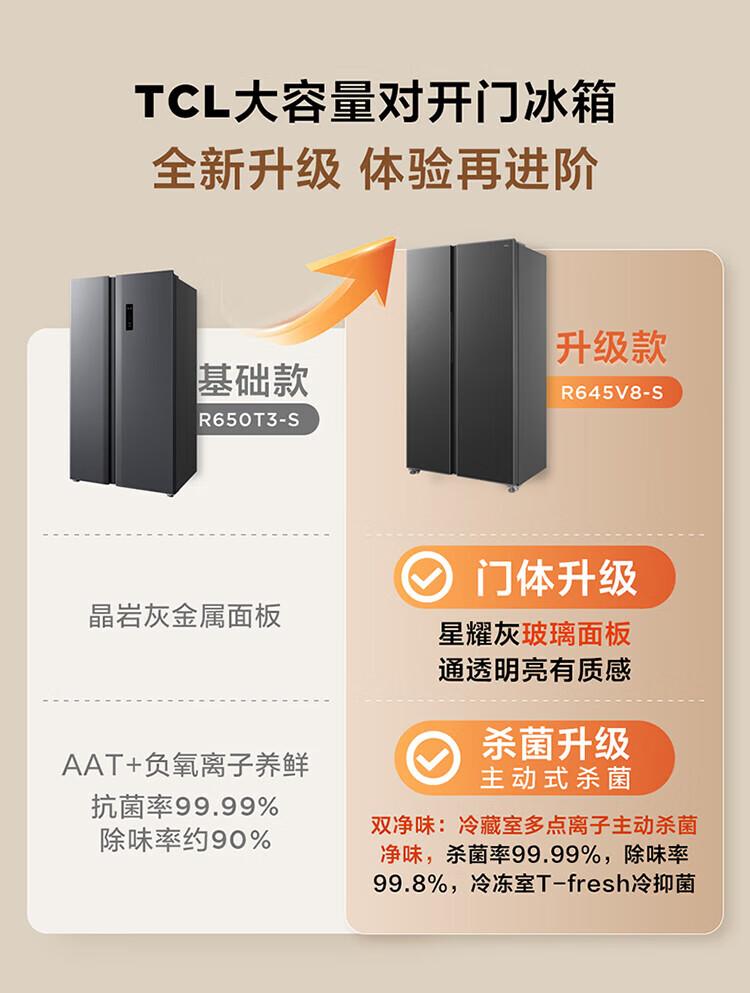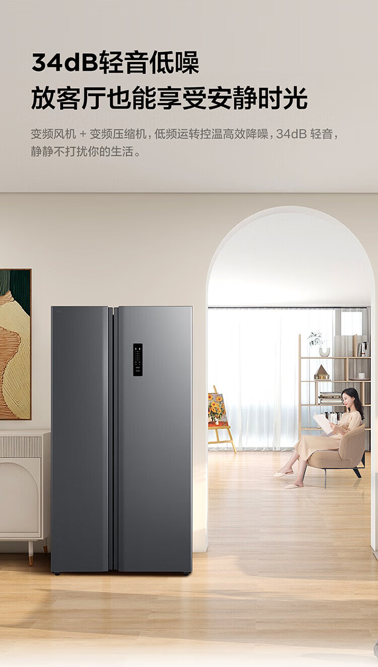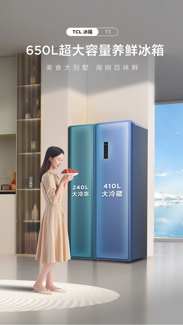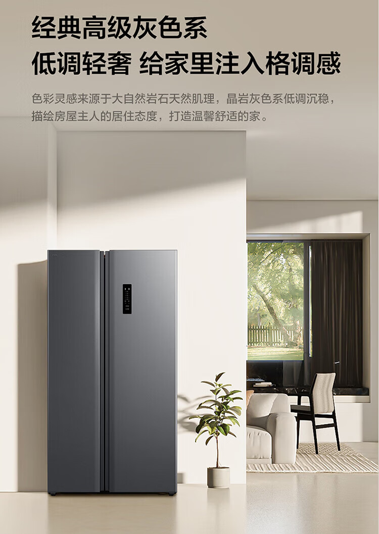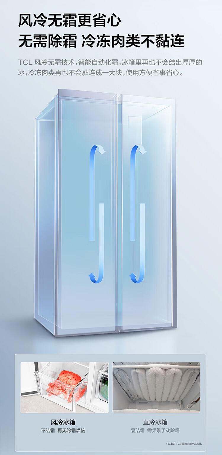 TCL 650 liter side-by-side double-door large-capacity large-capacity freezer refrigerator Dual frequency conversion first-class energy efficiency Air-cooled frost-free Ion freshness energy-saving home refrigerator Trade-in double-door refrigerator Crystal ash national subsidy