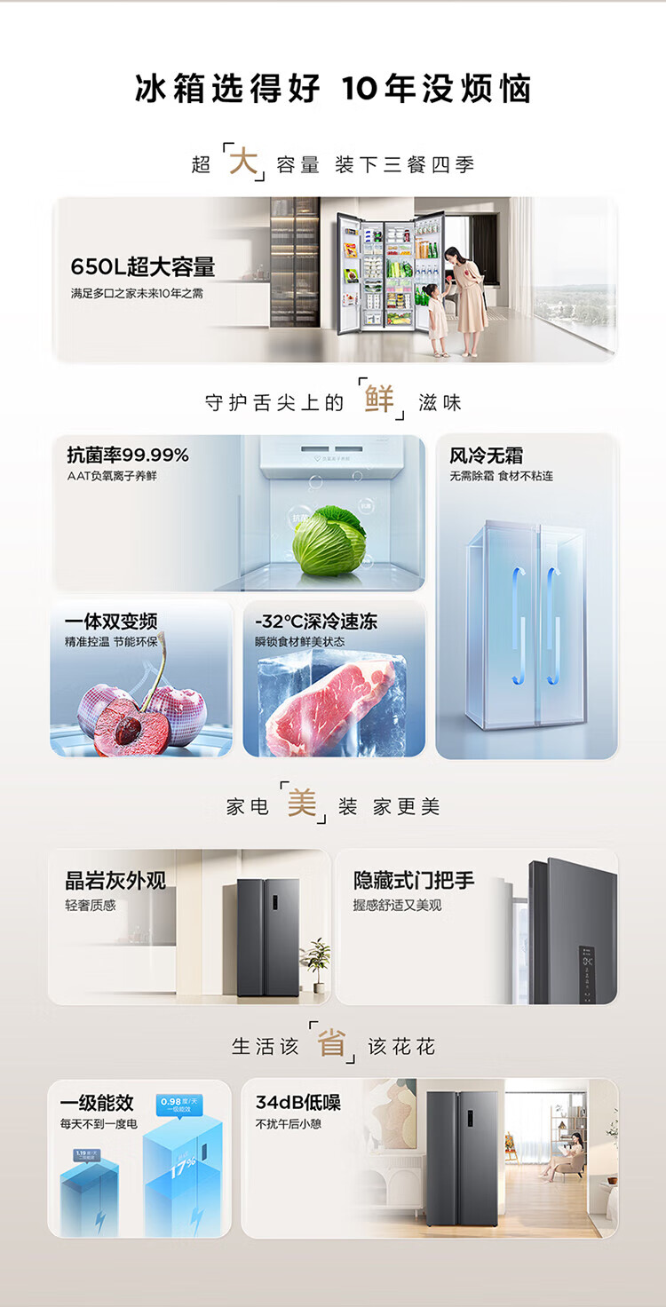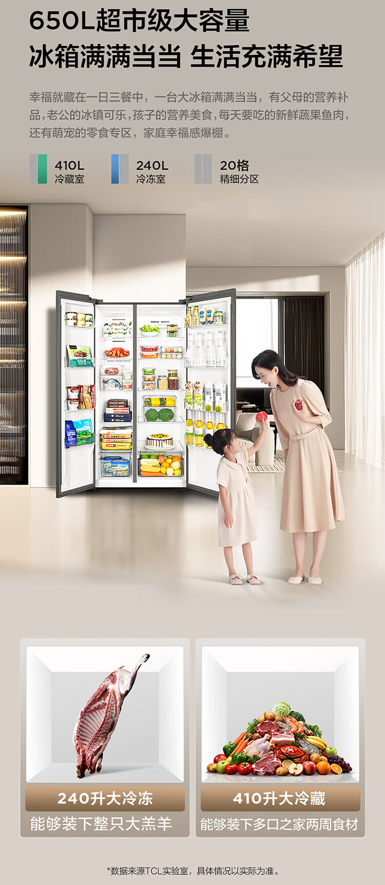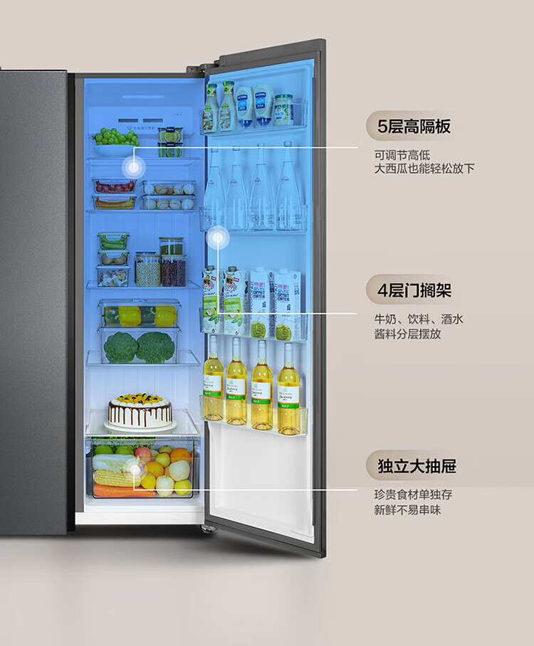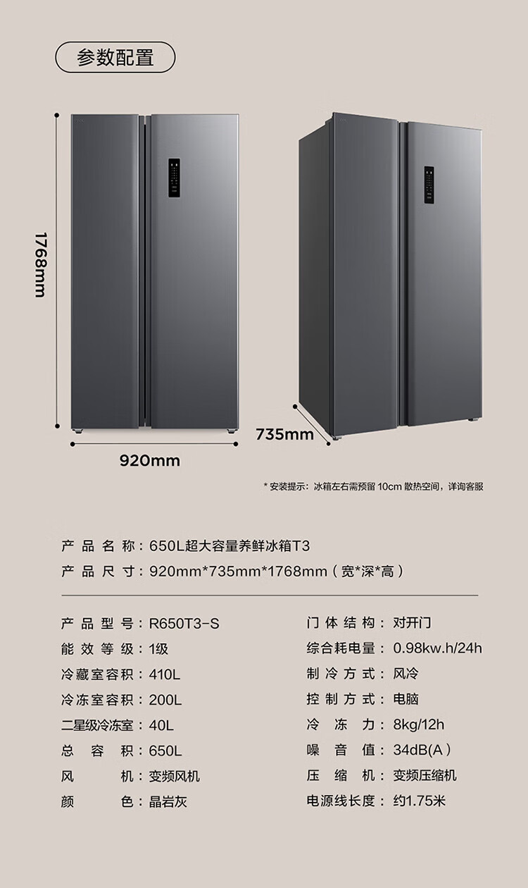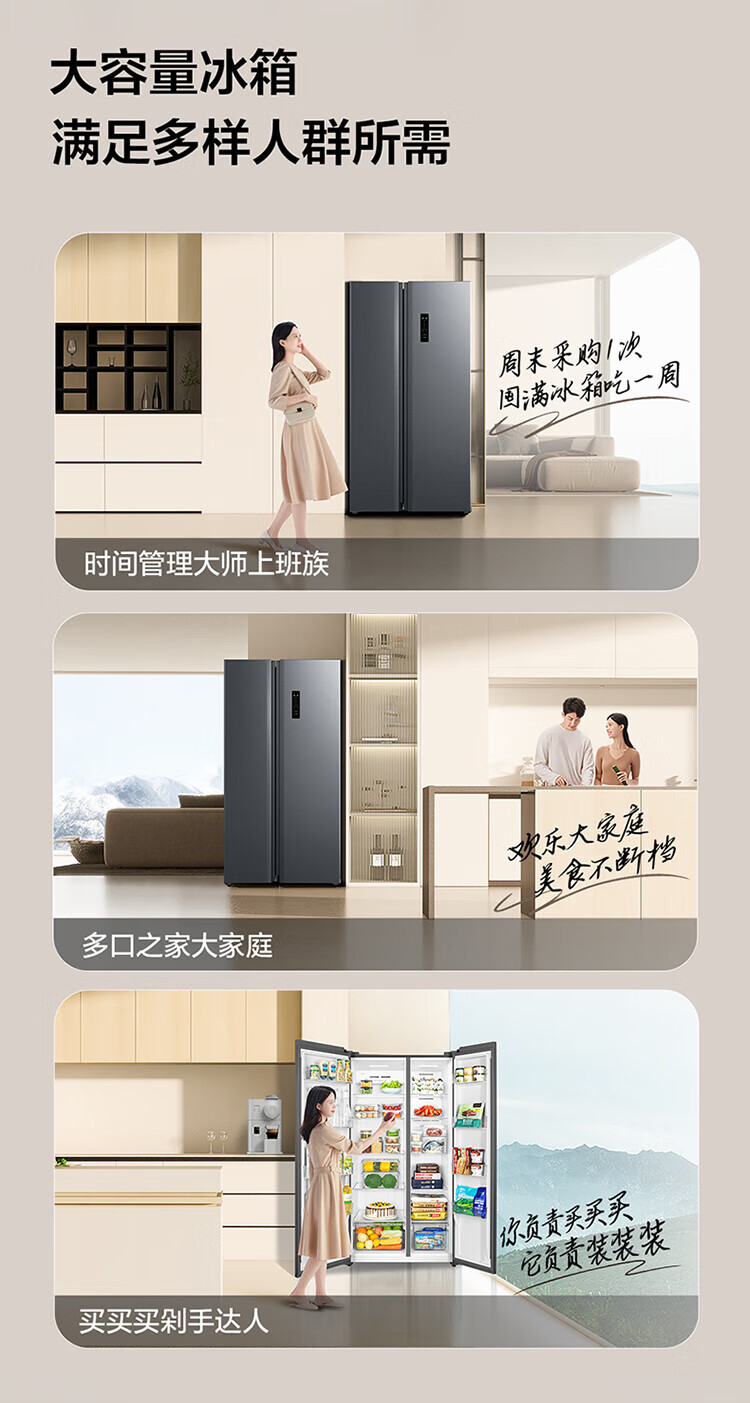 TCL 650 liter side-by-side double-door large-capacity large-capacity freezer refrigerator Dual frequency conversion first-class energy efficiency Air-cooled frost-free Ion freshness energy-saving home refrigerator Trade-in double-door refrigerator Crystal ash national subsidy