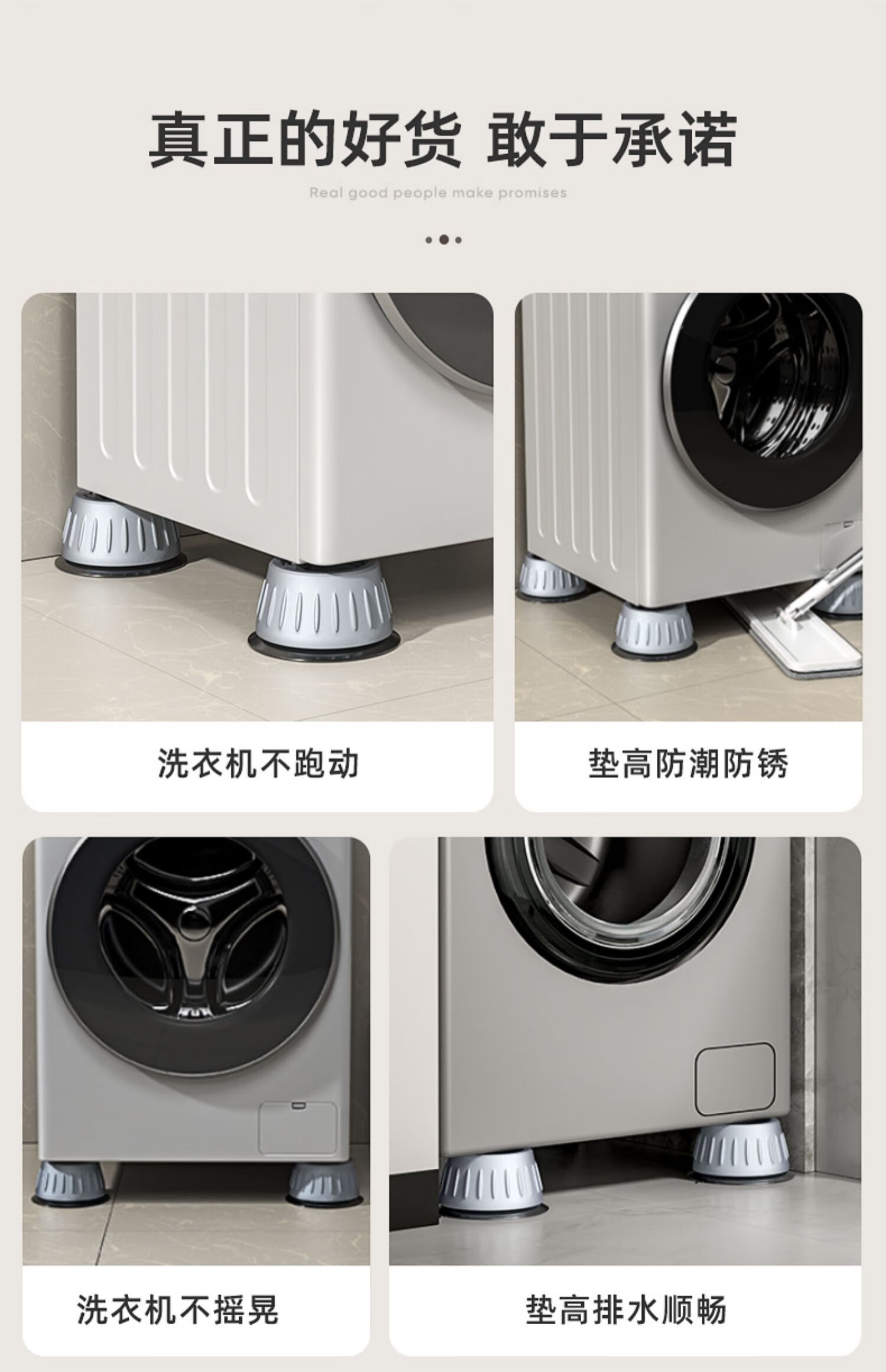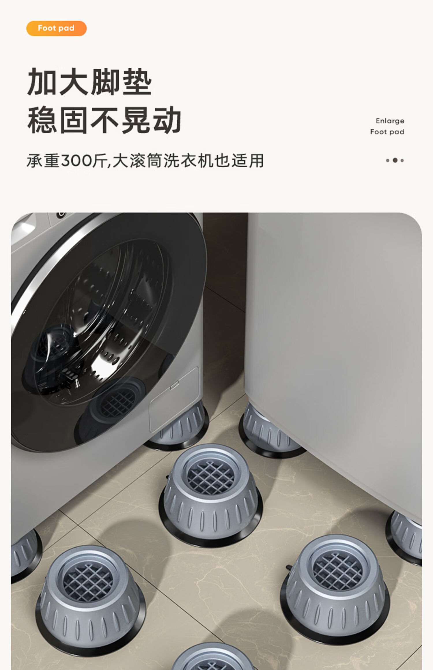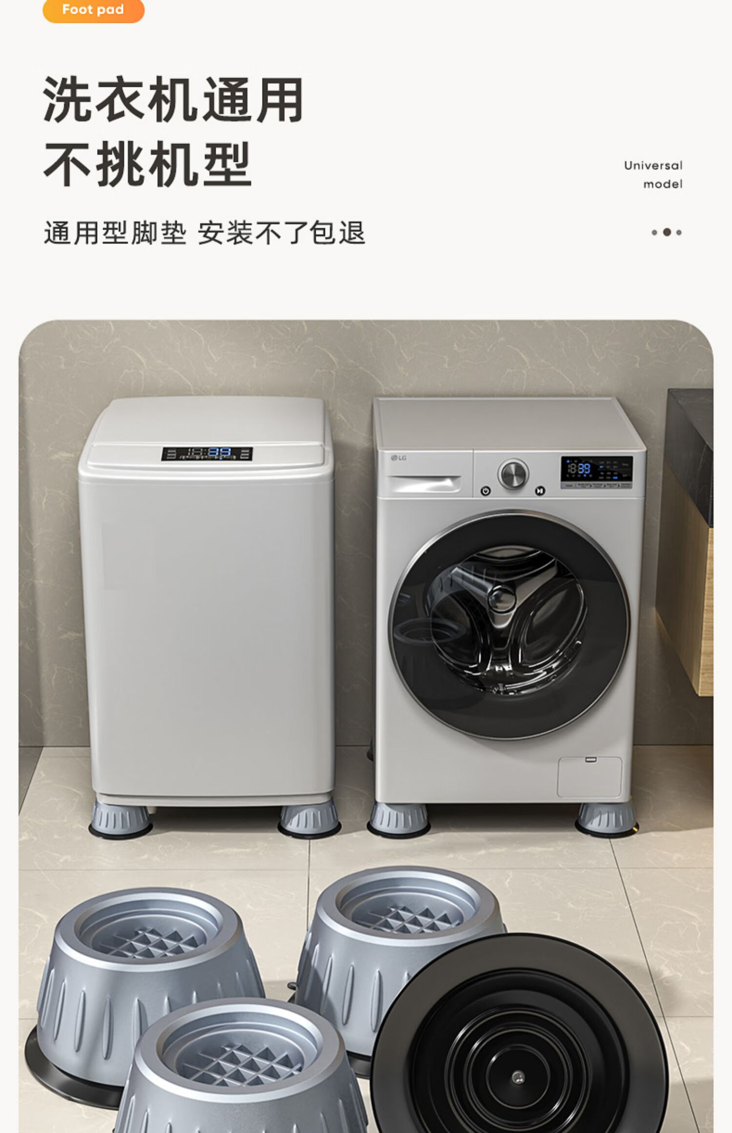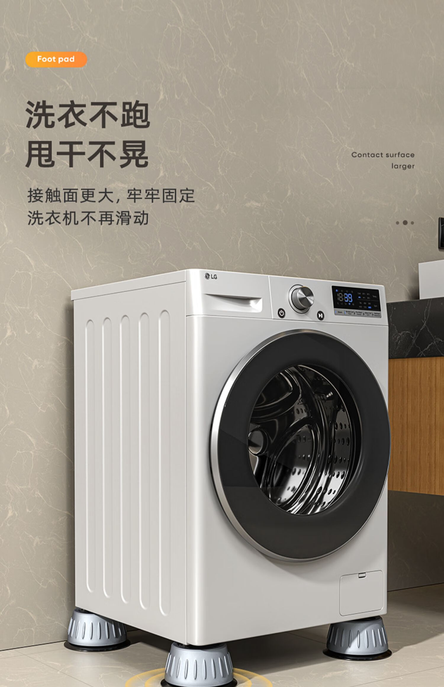 Universal fixed mat bracket for lunar exploration washing machine base, fully automatic roller tripod, heightening bracket, non-slip and shock-proof foot pads, universal 4-pack, large suction cup, increased by 4CM