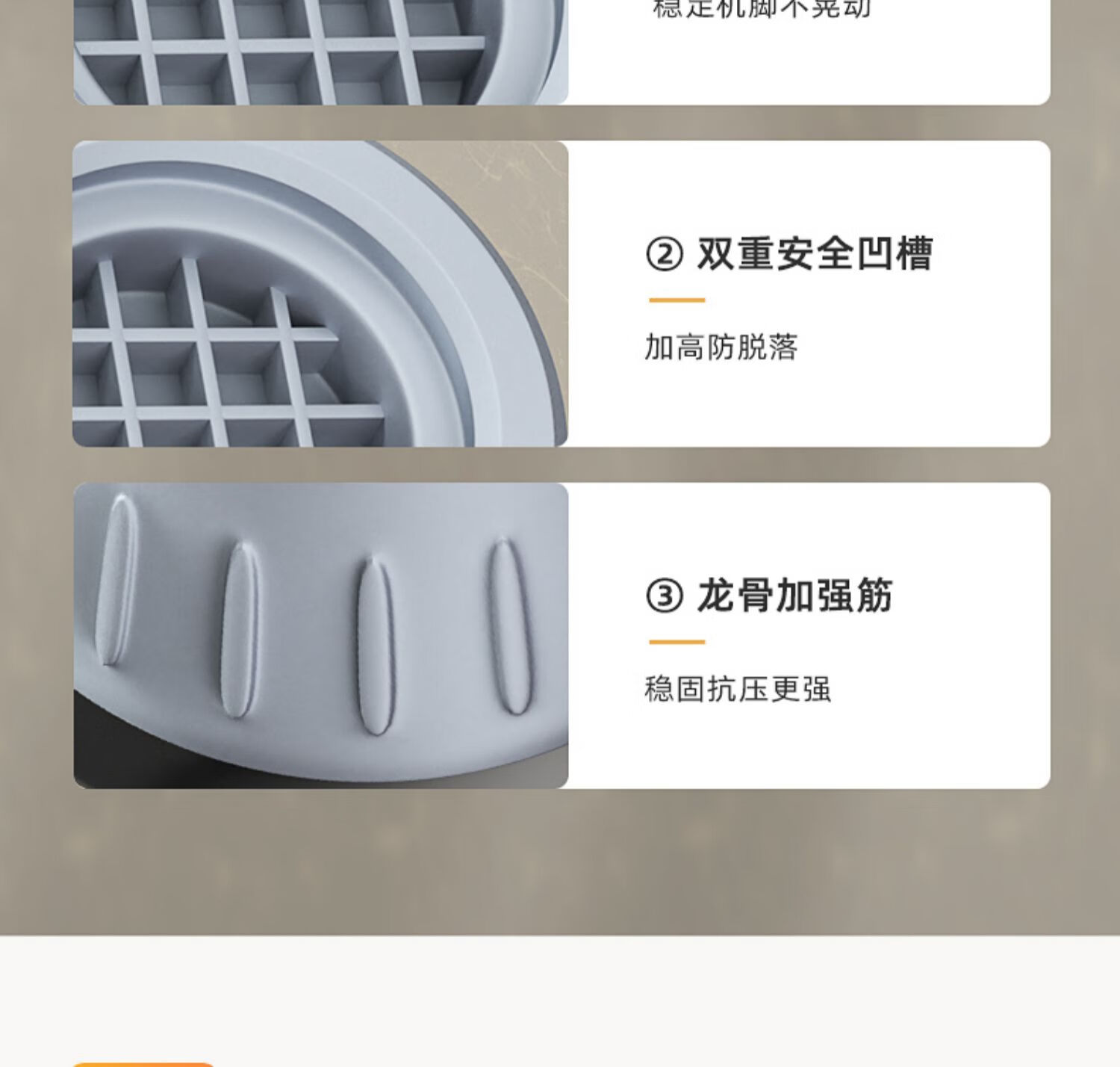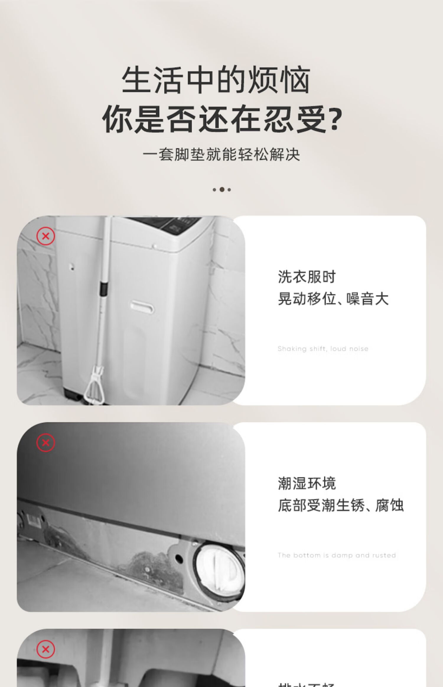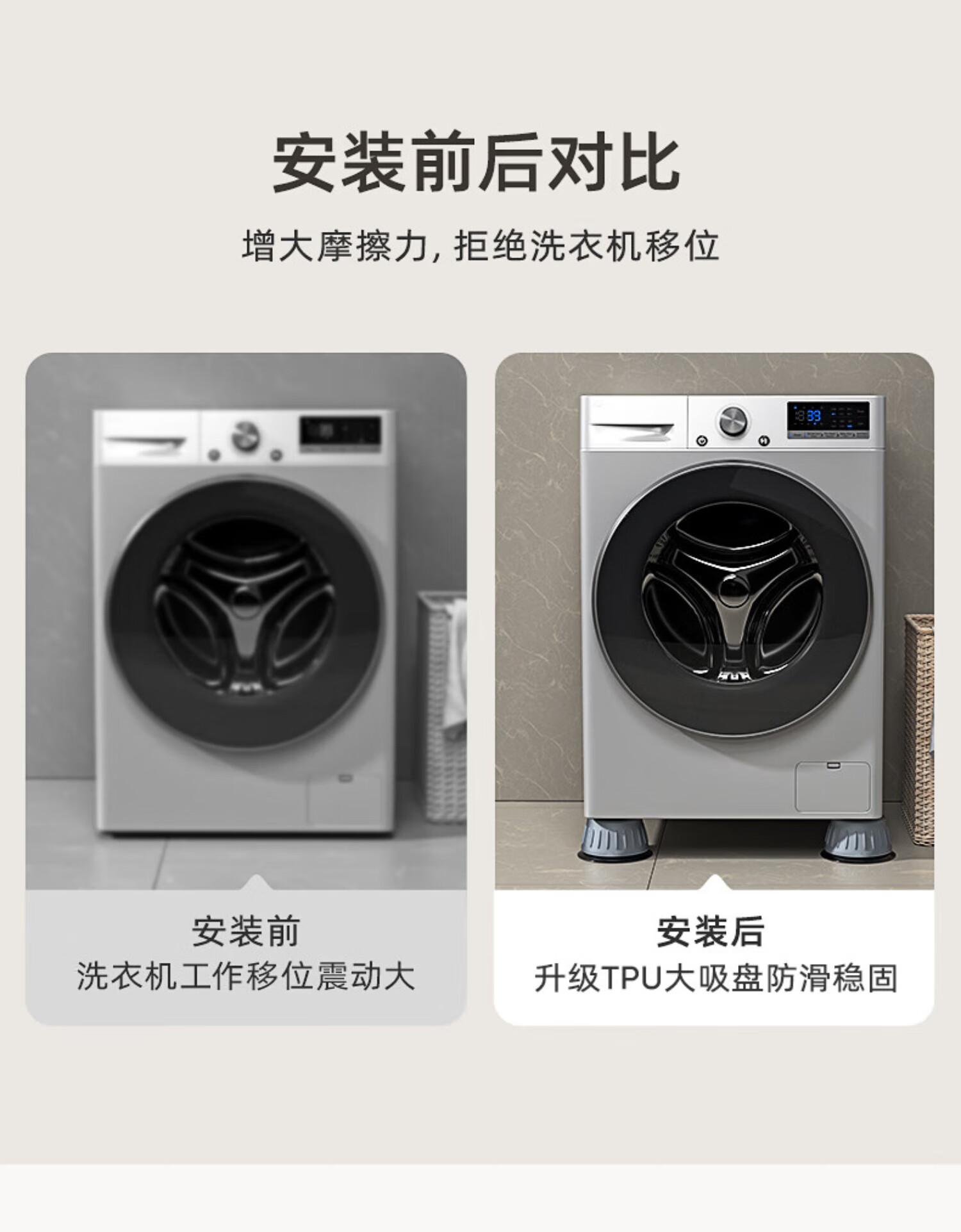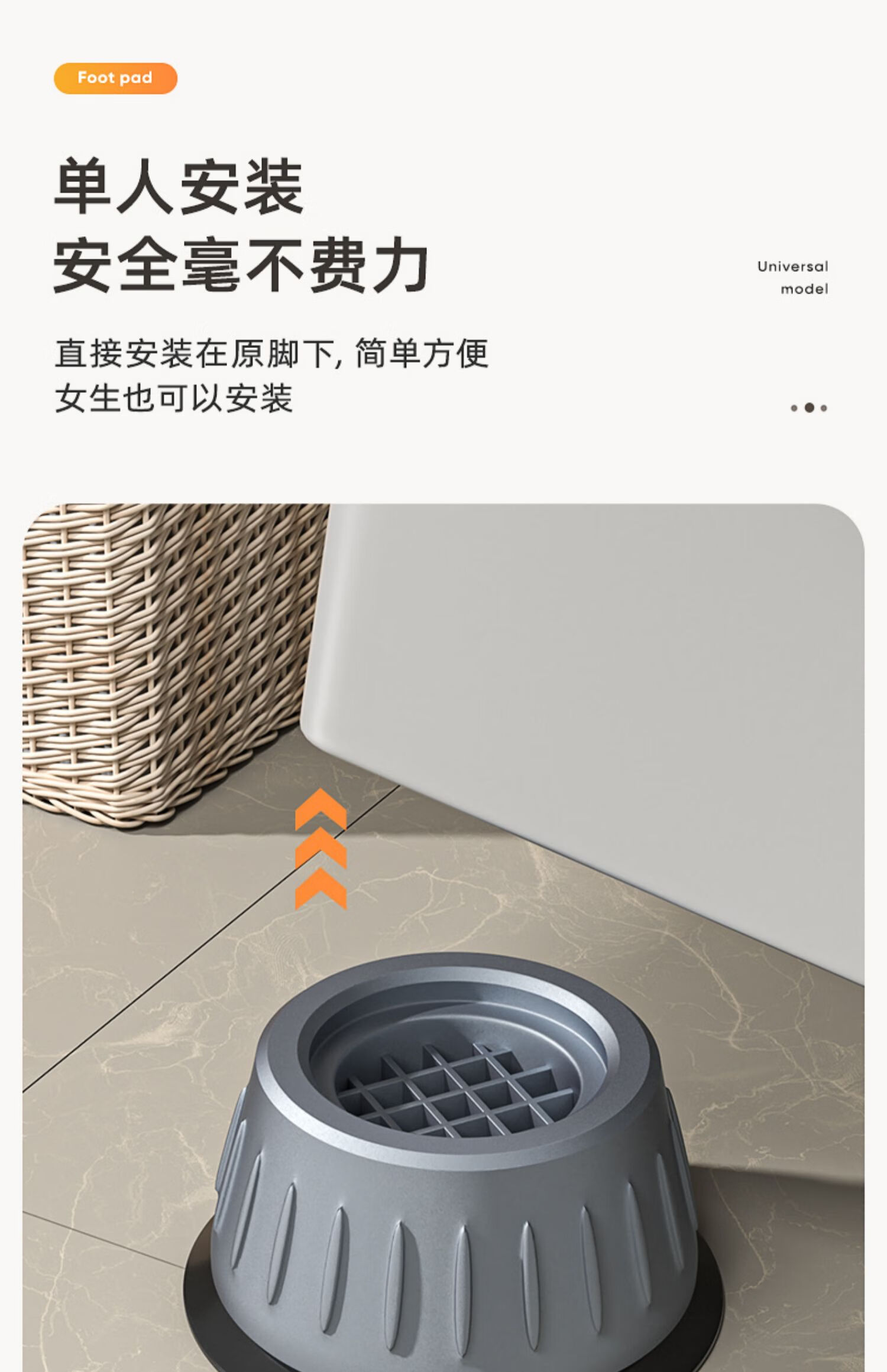 Universal fixed mat bracket for lunar exploration washing machine base, fully automatic roller tripod, heightening bracket, non-slip and shock-proof foot pads, universal 4-pack, large suction cup, increased by 4CM