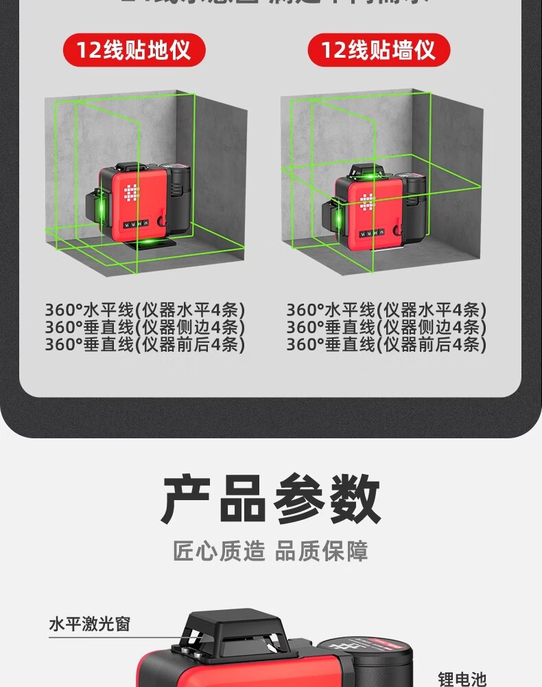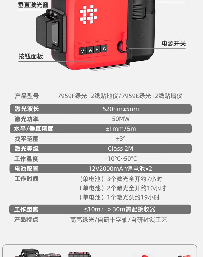 Shijing (SHIJING) level meter high-precision outdoor strong light thin line laser infrared floor and wall meter 12-line automatic leveling water meter 12-line green light floor and wall meter 7959F dual electric standard + platform