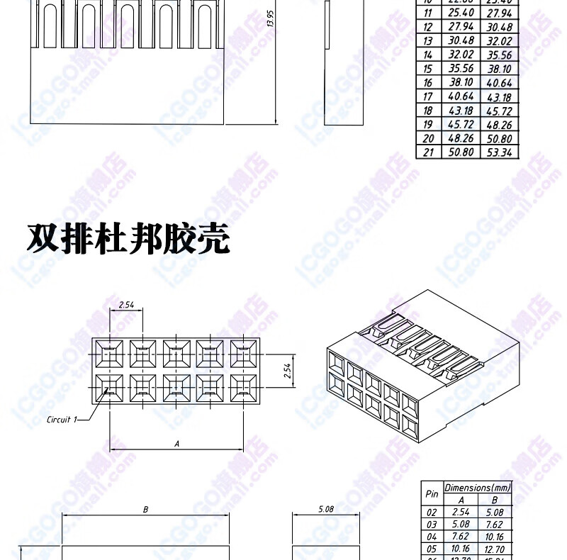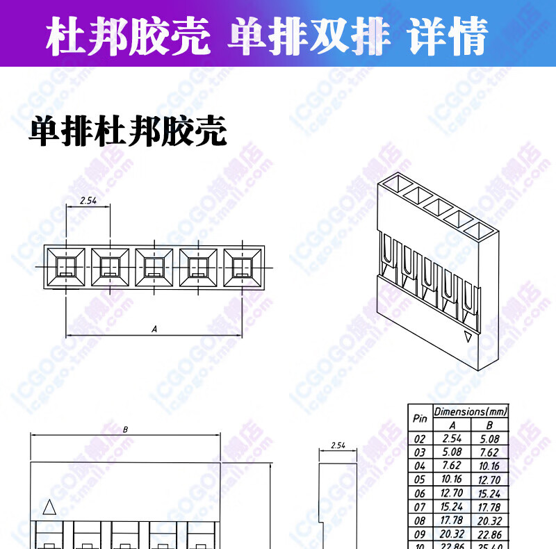 DuPont shell plastic shell DuPont wire terminal single and double row 2.54mm plug connector 1/2/3/4/5/6P-20P 2x10P-2.54mm_DuPont rubber shell 50 pieces