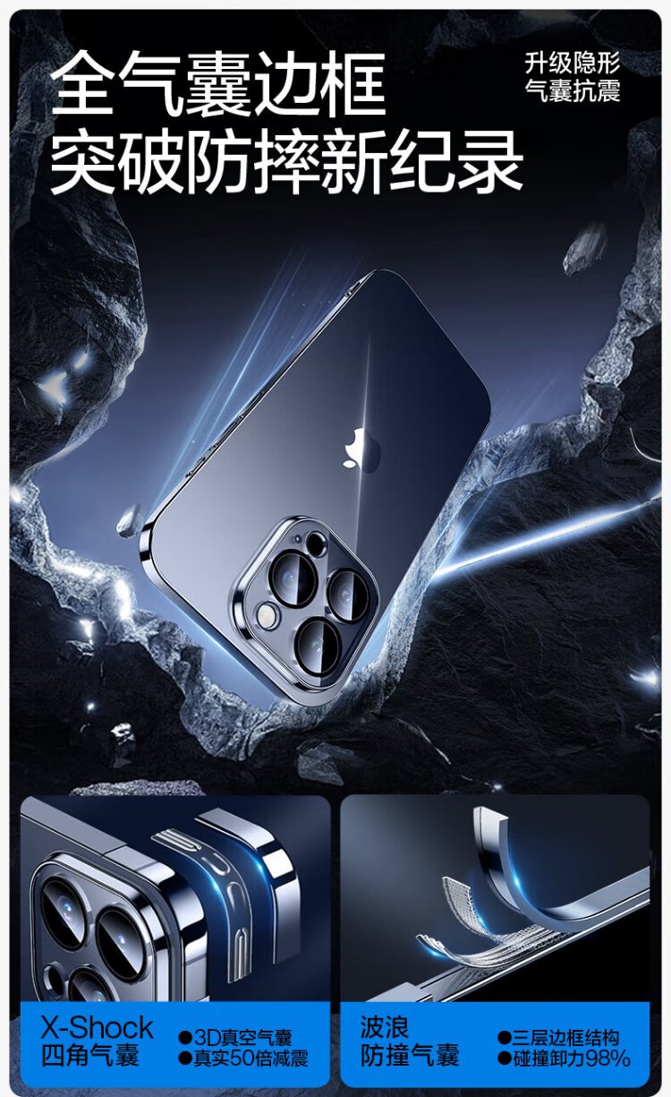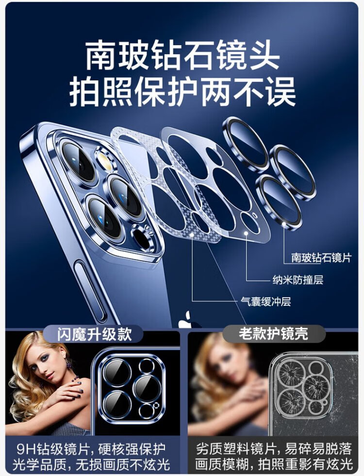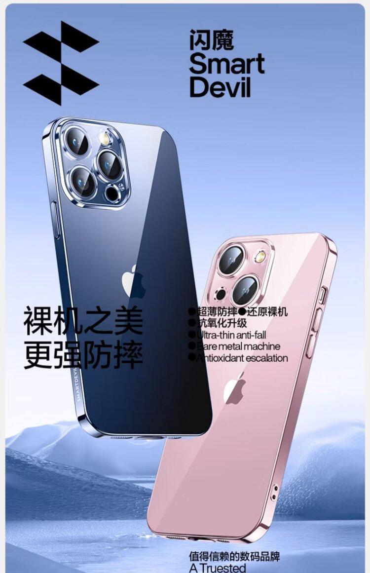 Flash magic comes with lens film, suitable for iphone15 series mobile phone cases, Apple protective cases, lens all-inclusive transparent anti-fall silicone airbag electroplating for men and women 15 fully transparent comes with lens film
