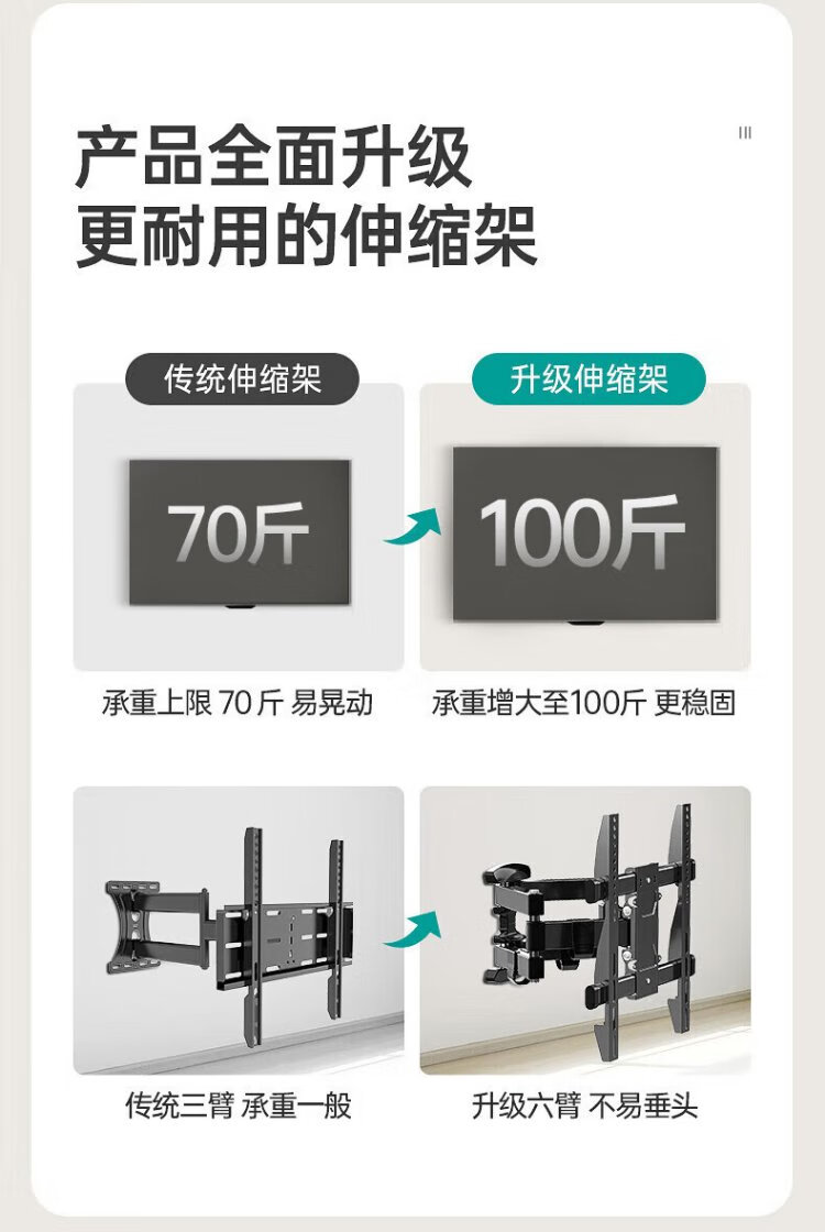 Zhilong TV Telescopic Hanger TV Bracket Wall Mount Rotating Wall Mount Suitable for Xiaomi TCL Hisense Skyworth (32-150 inches) universal large-screen TV hanging 40-75 inches universal six-arm upgrade and strengthening