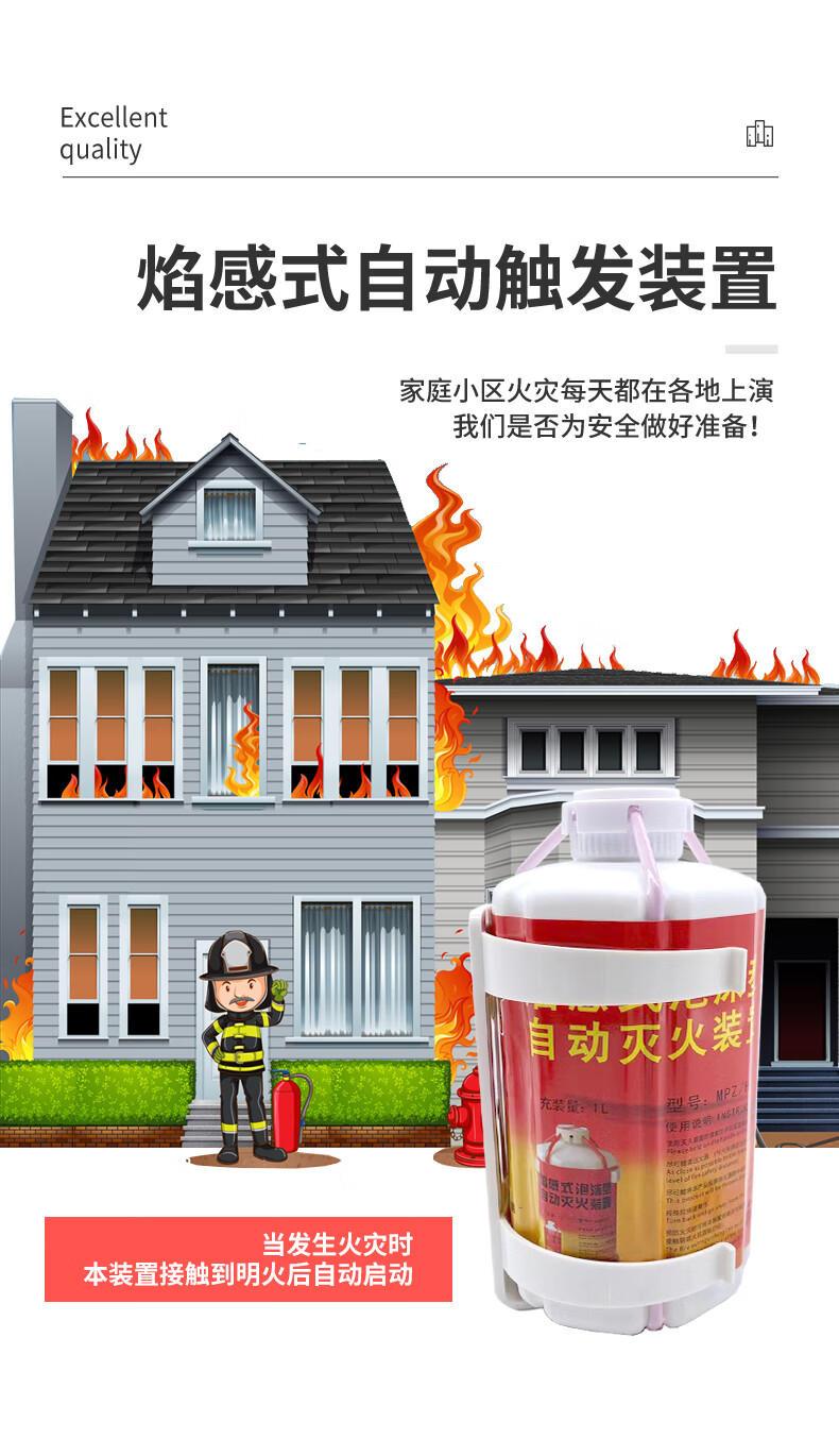 Fully automatic flame-sensing water-based foam fire-extinguishing device, multi-functional self-destructing fool-type throwing fire extinguisher, Huolian 1L (flame-sensing start)