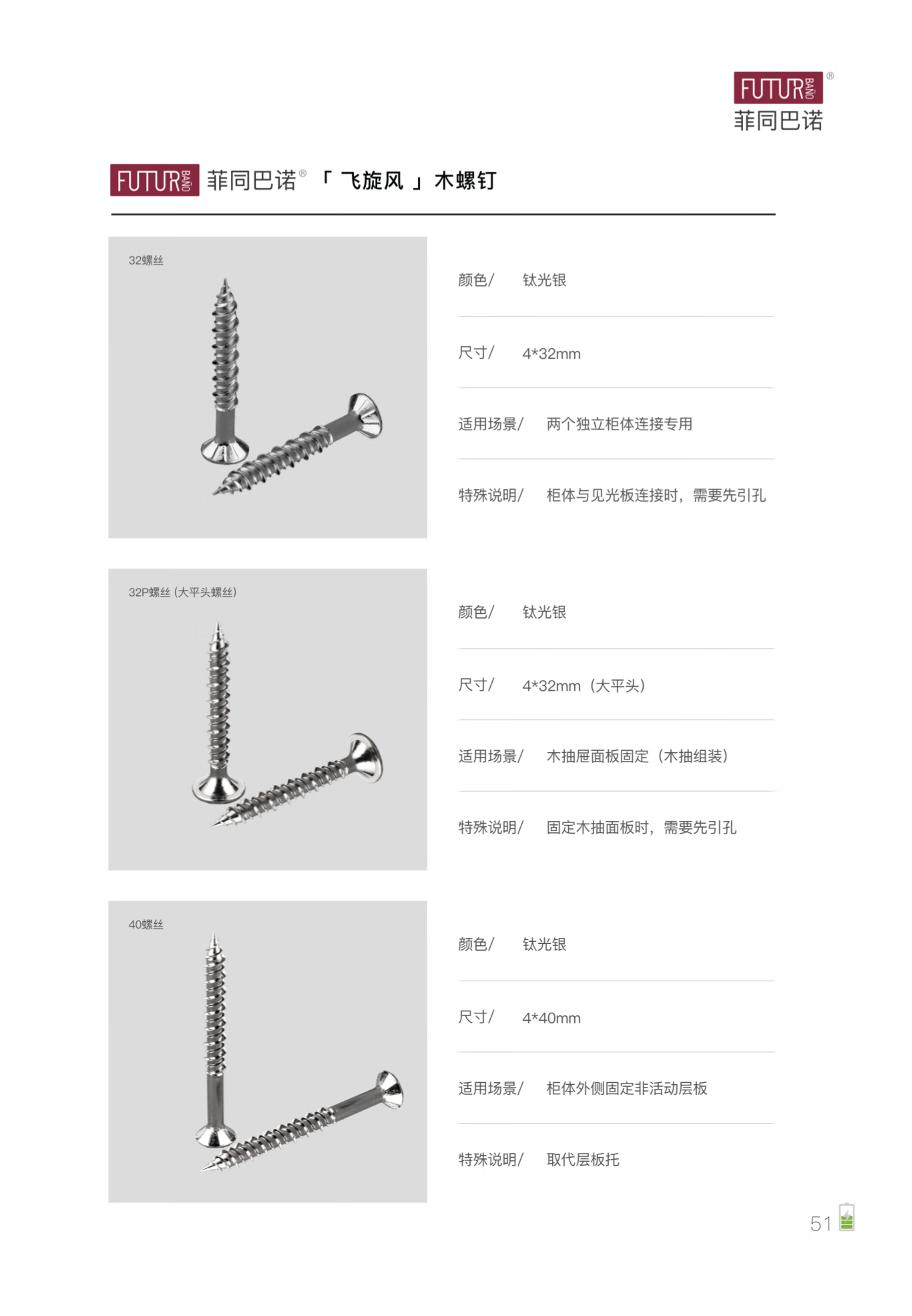 Feitong Bano regular screws 4x16 titanium silver self-tapping screws dovetail nails furniture custom wardrobe assembly hardware bag (100 pieces/bag)