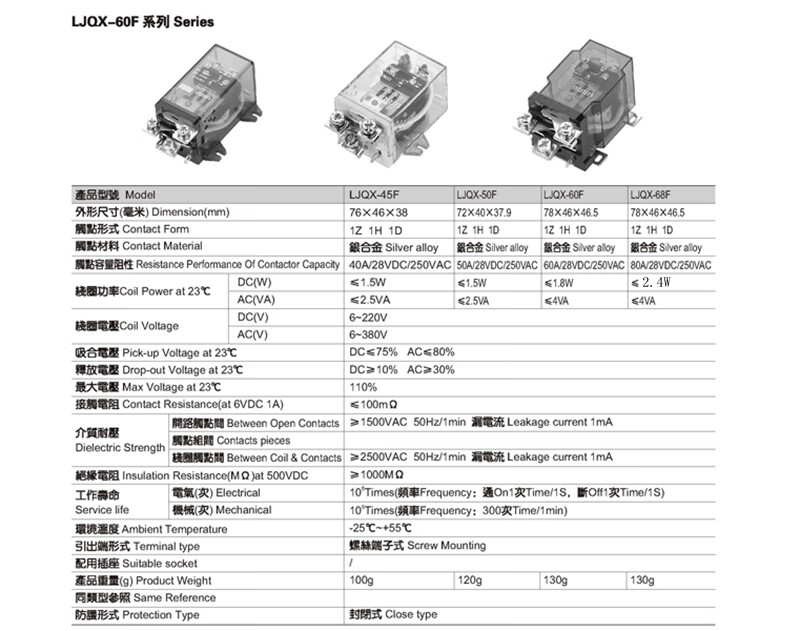 JQX-68F/1Z high current 80A high power 12V relay 24V LJQX-40F-58F-63F screw installation DC24V