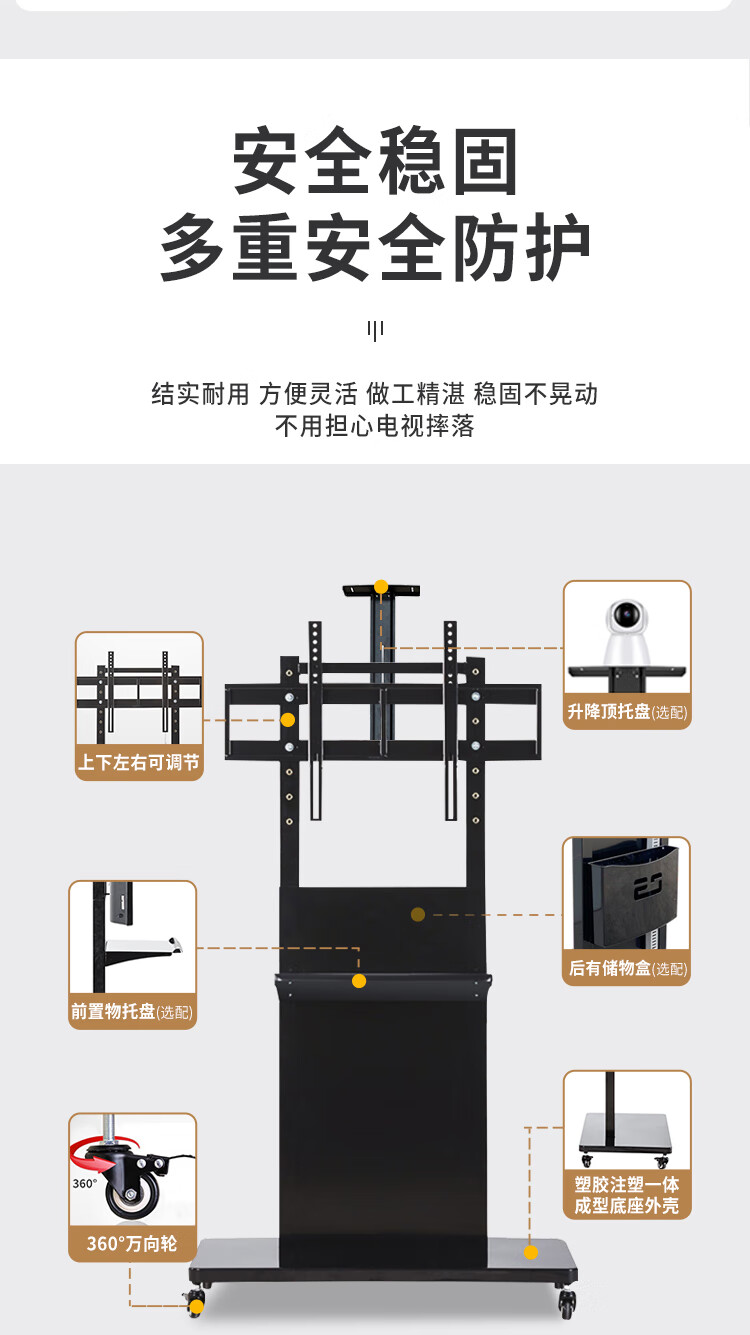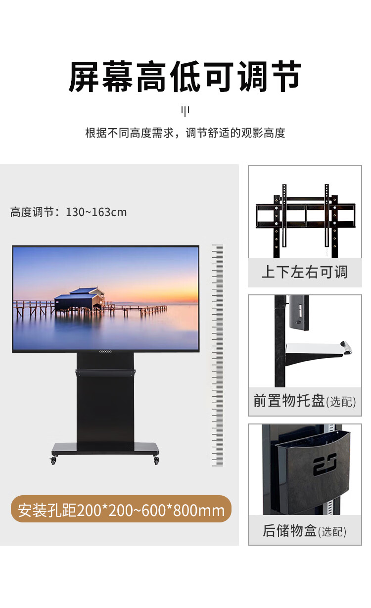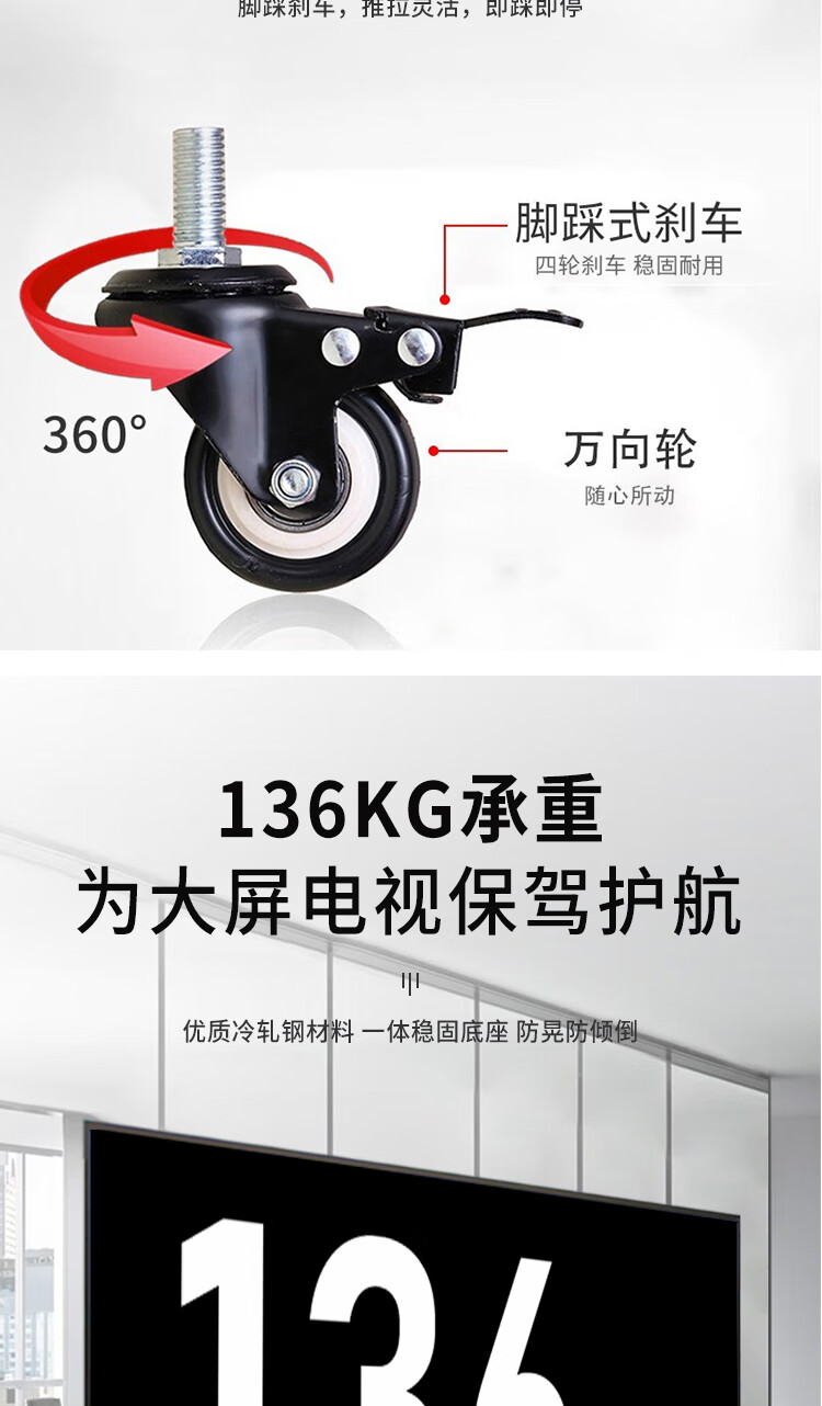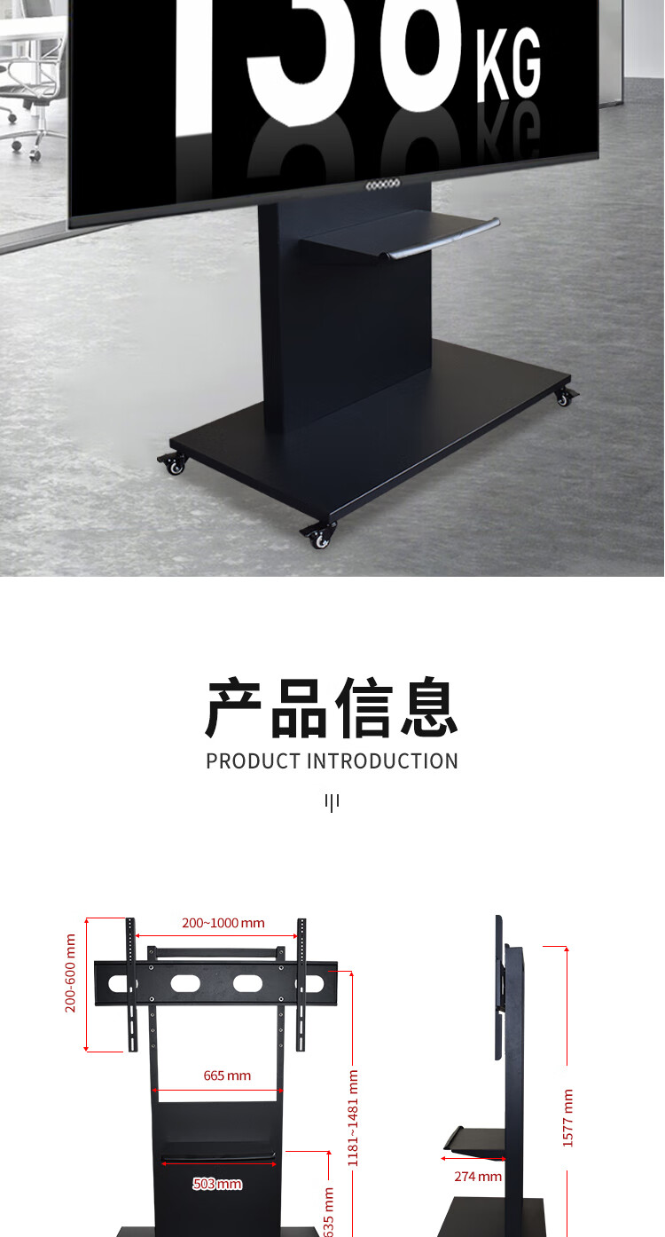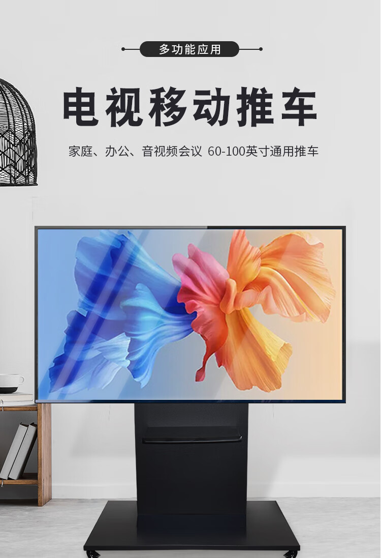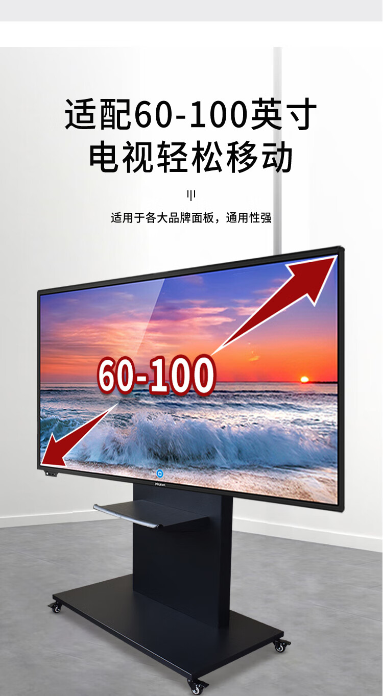 CREAINSUN Changshuo TV Mobile Cart Universal TV Mobile Bracket Floor Stand Universal Hisense Skyworth TCL Xiaomi Honghe Changhong Philips Hikvision Huawei TV Bracket Black Bright Light Suitable for 60-100-inch TVs Bearing 136KG