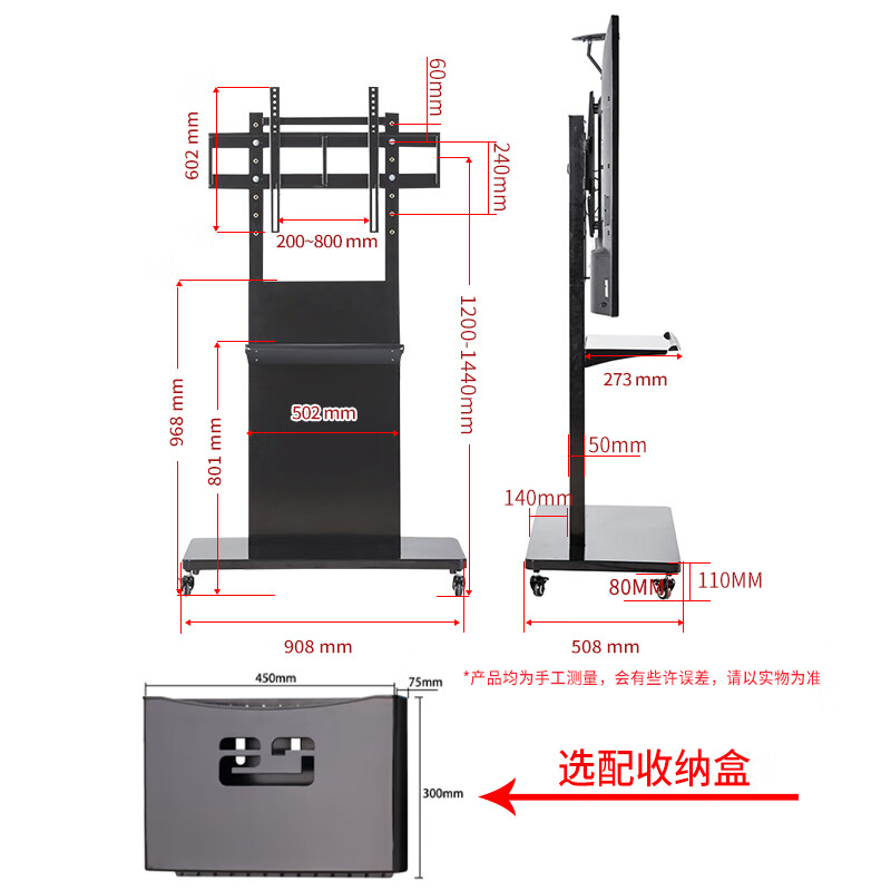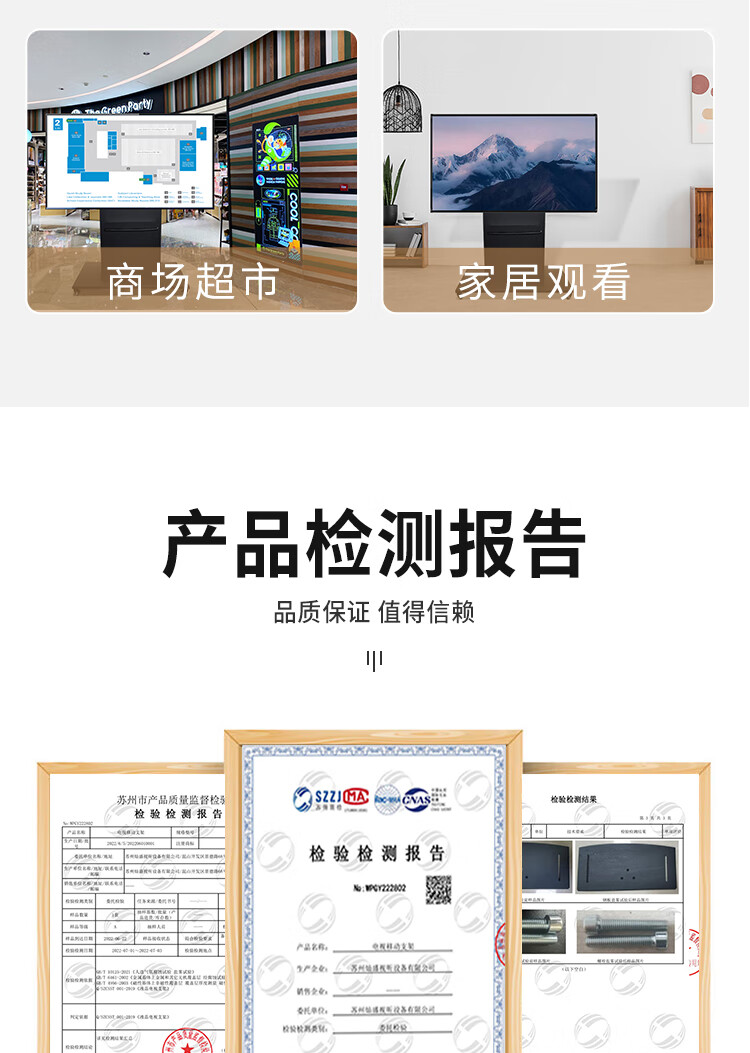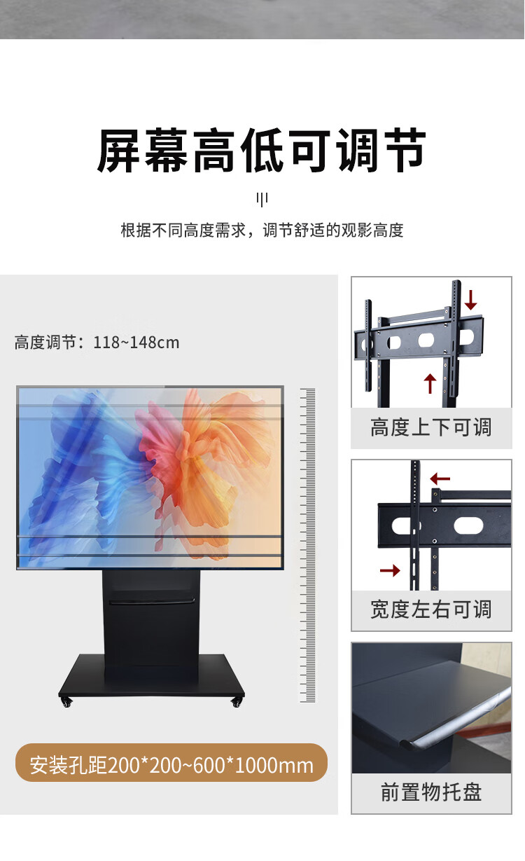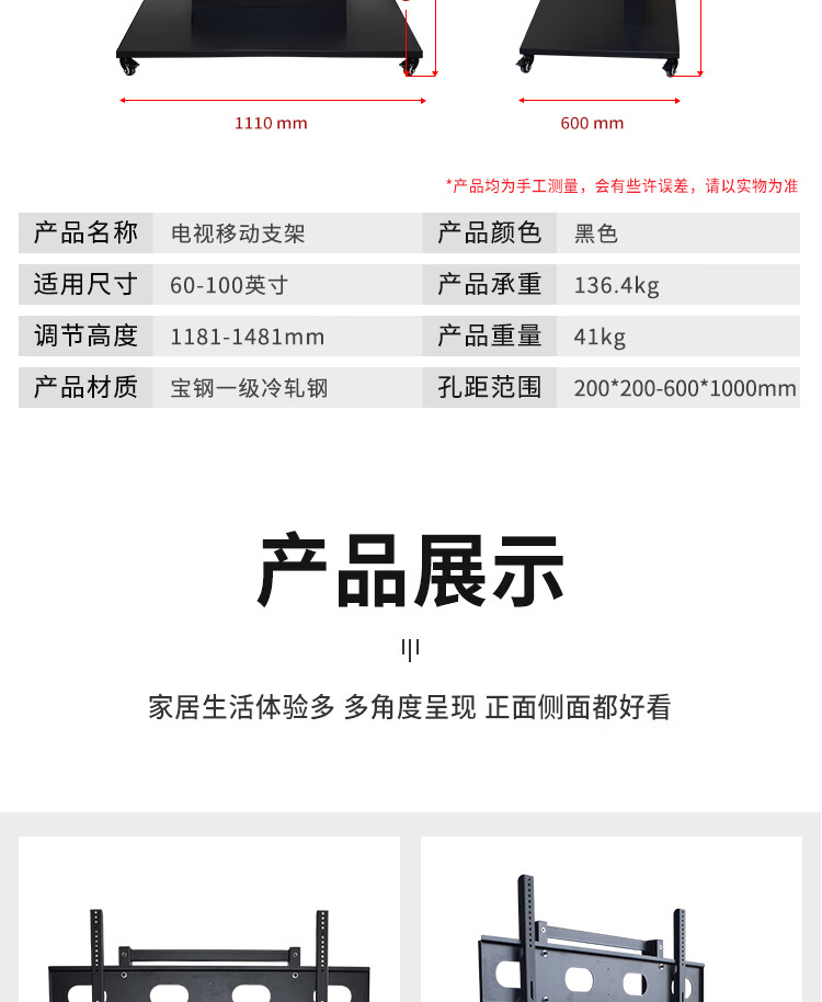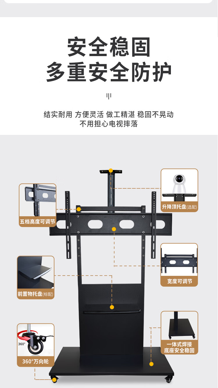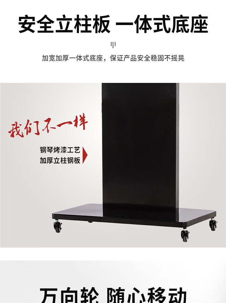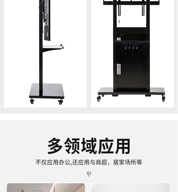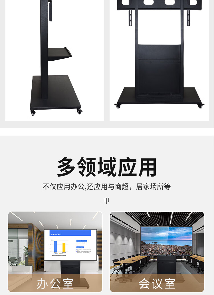 CREAINSUN Changshuo TV Mobile Cart Universal TV Mobile Bracket Floor Stand Universal Hisense Skyworth TCL Xiaomi Honghe Changhong Philips Hikvision Huawei TV Bracket Black Bright Light Suitable for 60-100-inch TVs Bearing 136KG