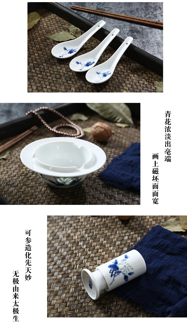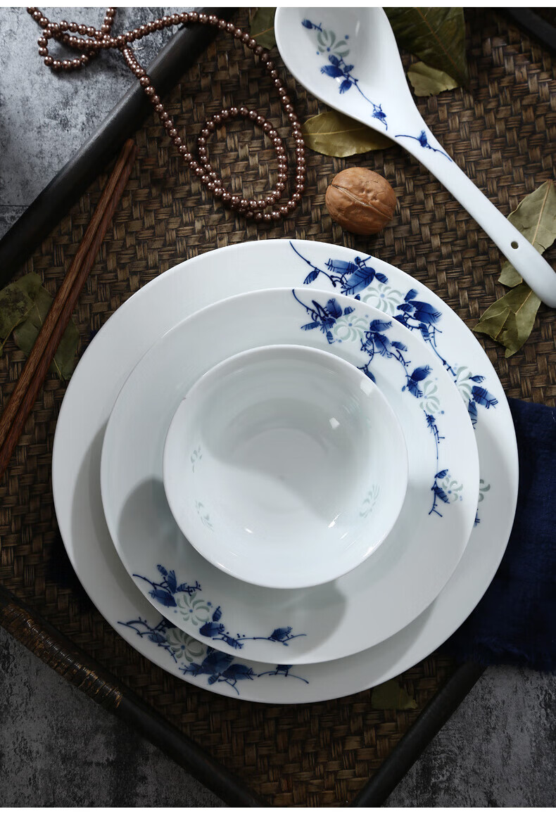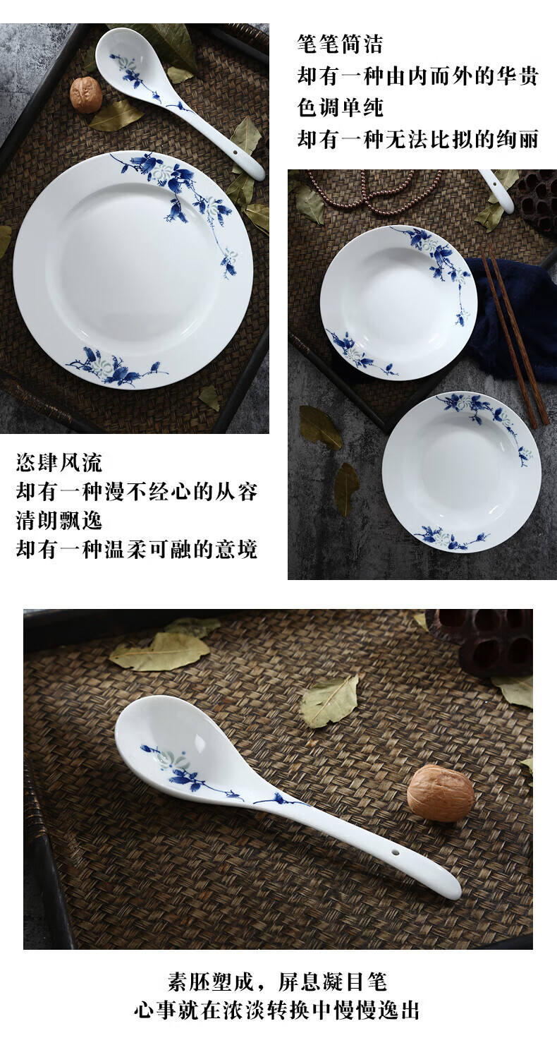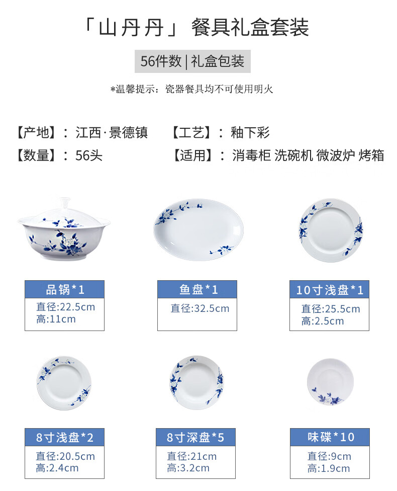 Jingdezhen official ceramics hand-painted Shandandan tableware set blue and white exquisite bowl and dish set underglaze color housewarming high-end gift hand-painted Shandandan tableware for 10 people 56 pieces
