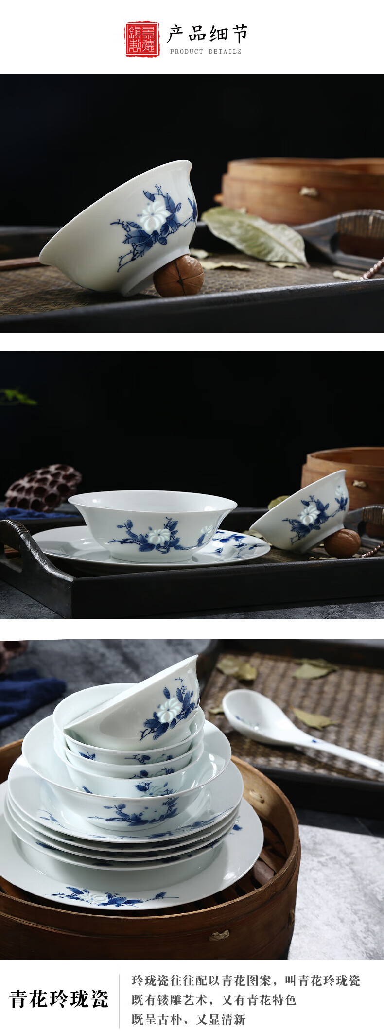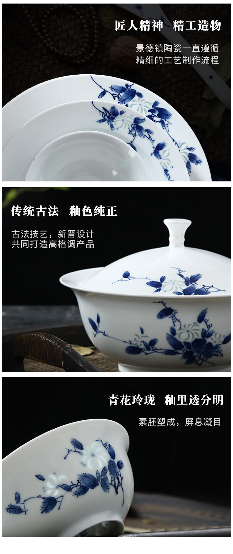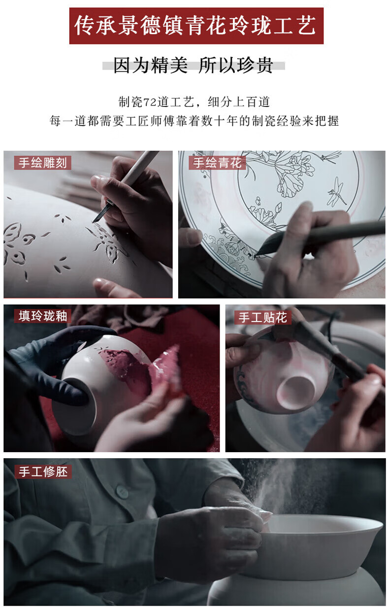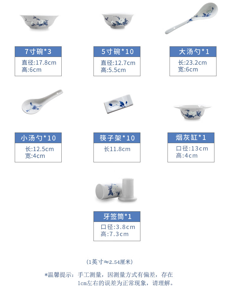 Jingdezhen official ceramics hand-painted Shandandan tableware set blue and white exquisite bowl and dish set underglaze color housewarming high-end gift hand-painted Shandandan tableware for 10 people 56 pieces