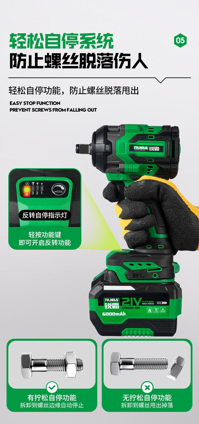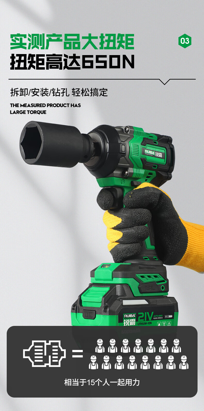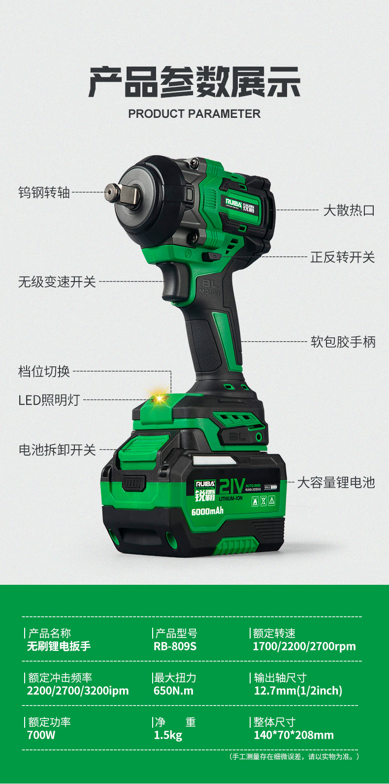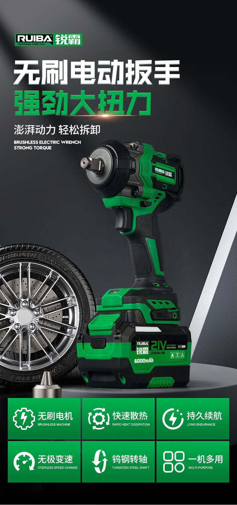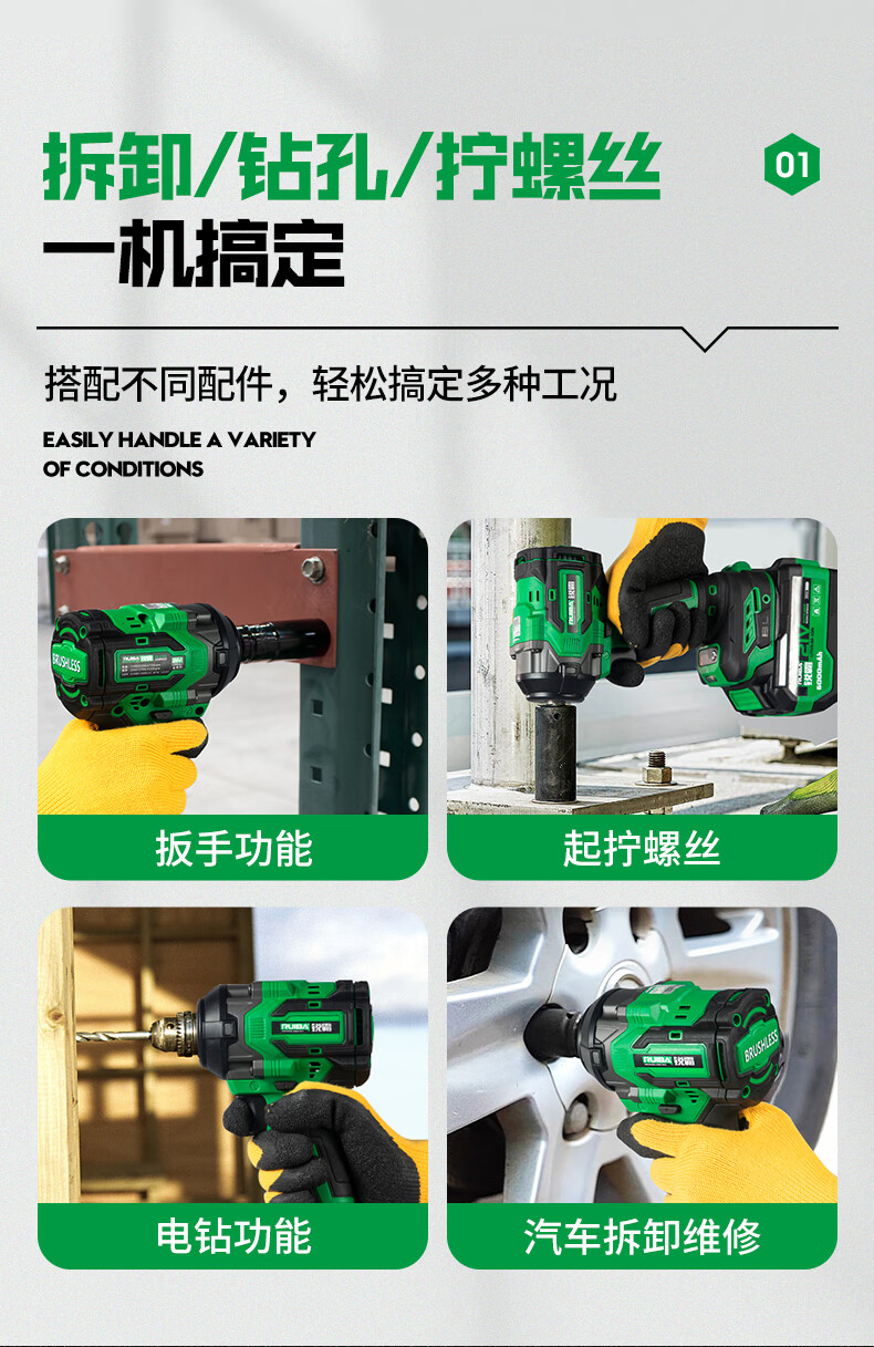 Ruiba electric wrench high torque lithium impact electric wrench wireless auto repair woodworking heavy duty rechargeable impact wind cannon 809S Ruiba 650 N 6000 mAh one battery package