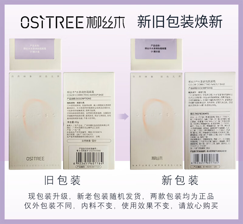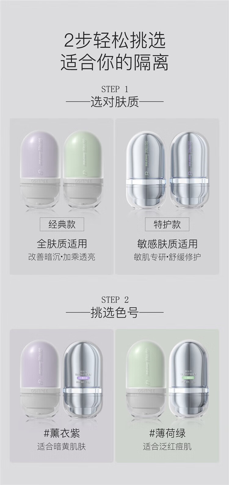 Ositree Color Changing Special Care Isolation Cream Primer Moisturizing Moisturizing Concealer Three-in-one Even Brightening Skin Color Gift for Women Lavender Purple 32g Modifies Dark Yellow Skin