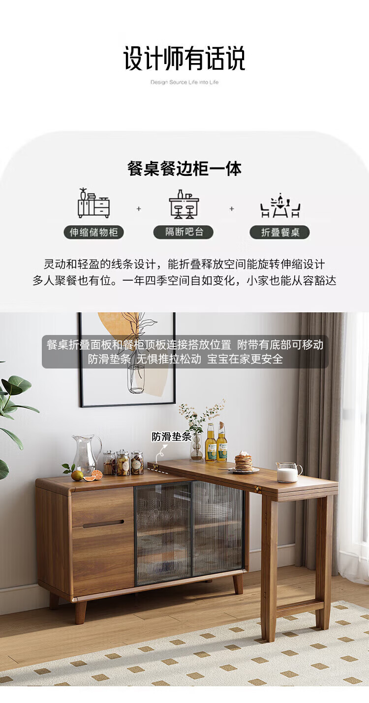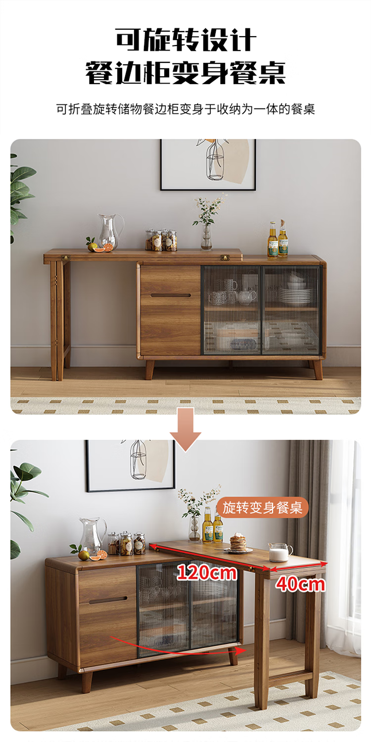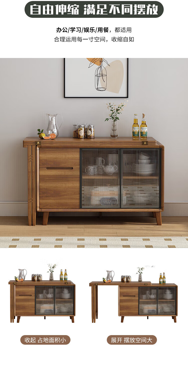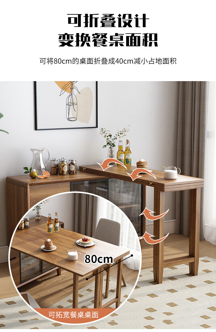 Bomeng Foldable Dining Table Retractable Sideboard Solid Wood Legs Integrated Small Apartment Island Dining Table Home Rotating Chinese Bar Table Sideboard Dining Table Integrated Length 129 Width 40 Height 79cm Free Delivery 120cm