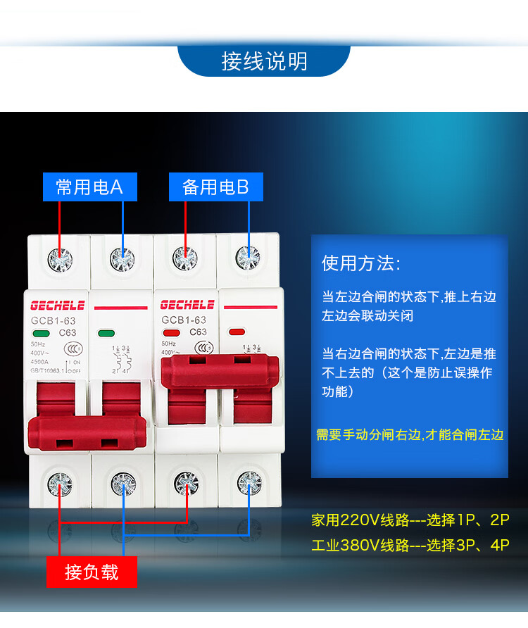 Circuit breaker dual-circuit automatic transfer switch 220V electric vehicle converter manual dual power transfer switch 10A 2P