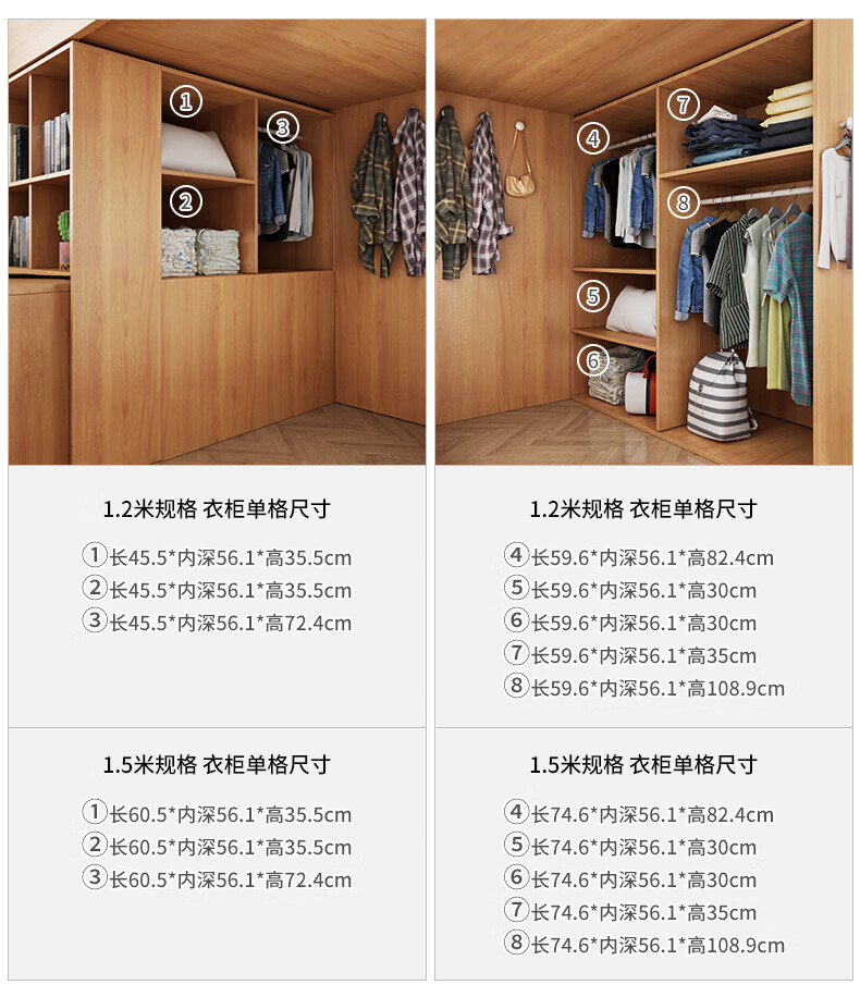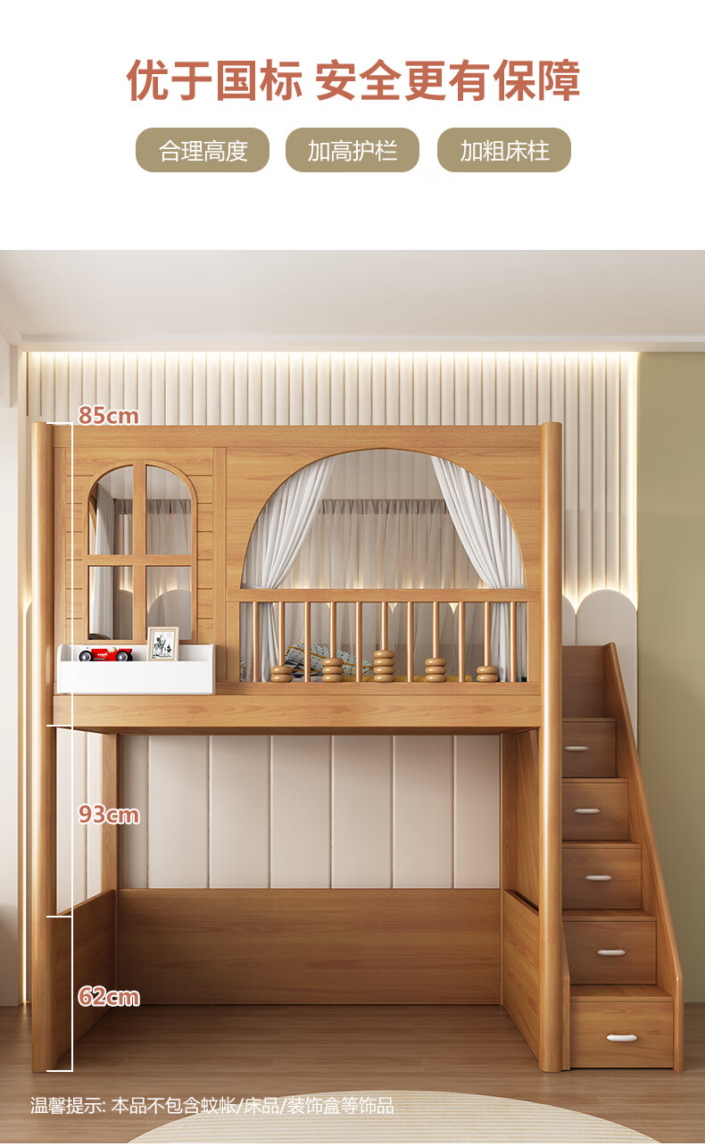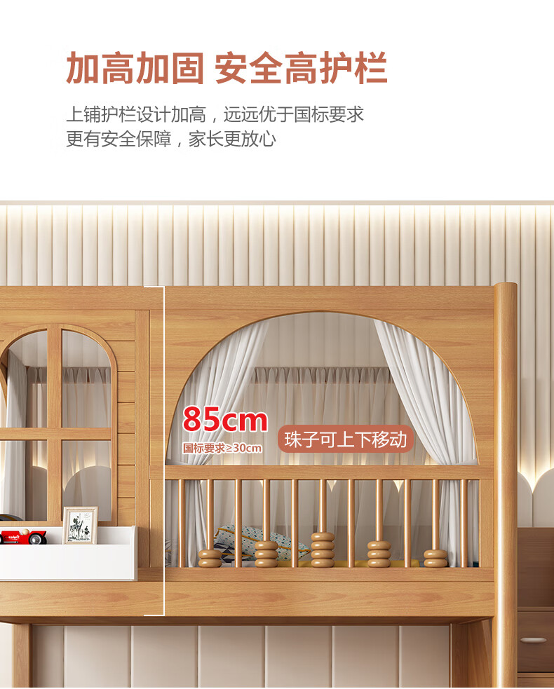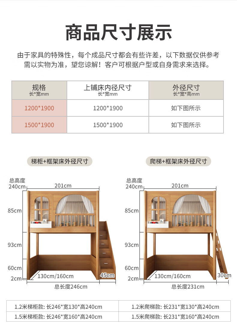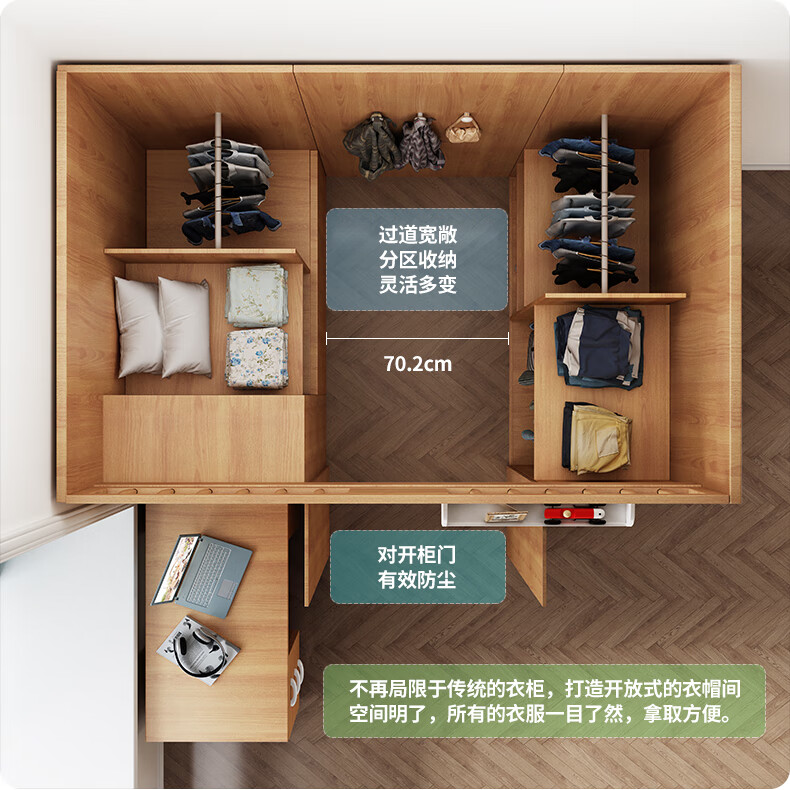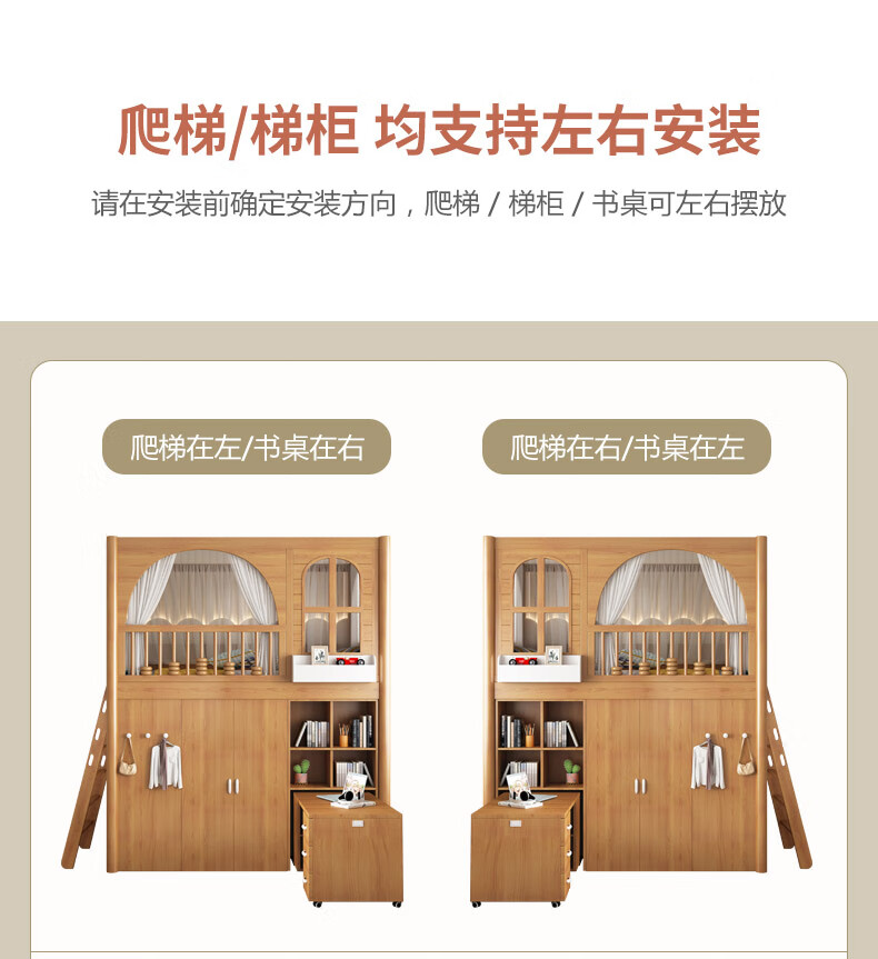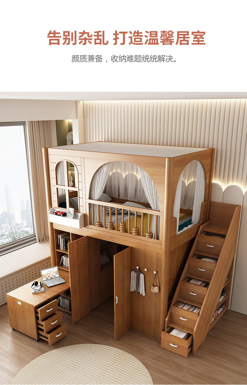Hanmu high and low bed with desk integrated overhead wardrobe double-layer children's bed multifunctional combination bunk bed and table, ladder cabinet + overhead bed + cloakroom + 1 mattress 1.2*1.9m
