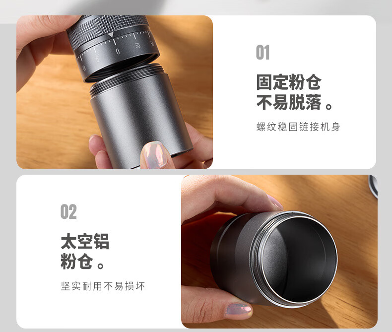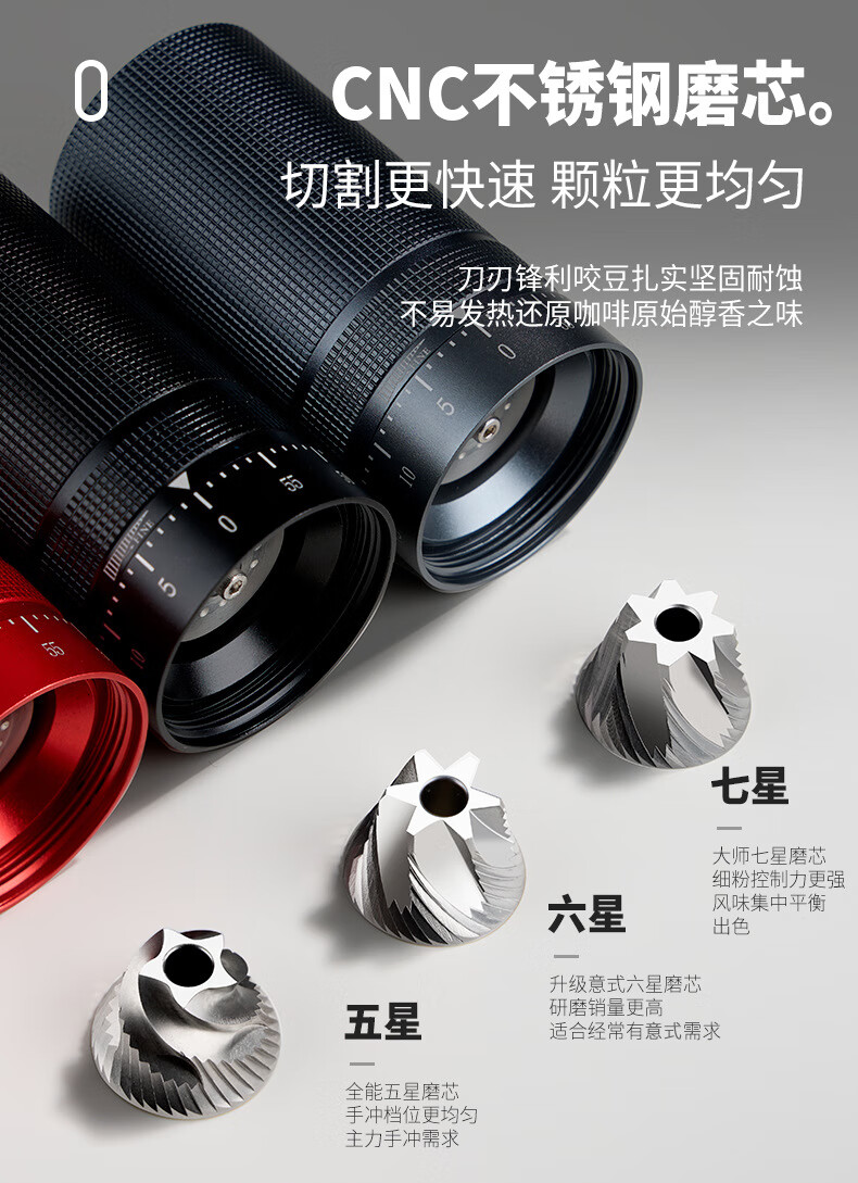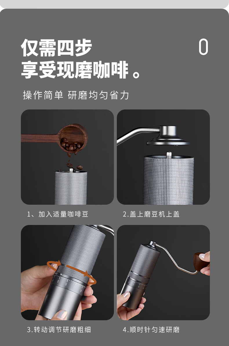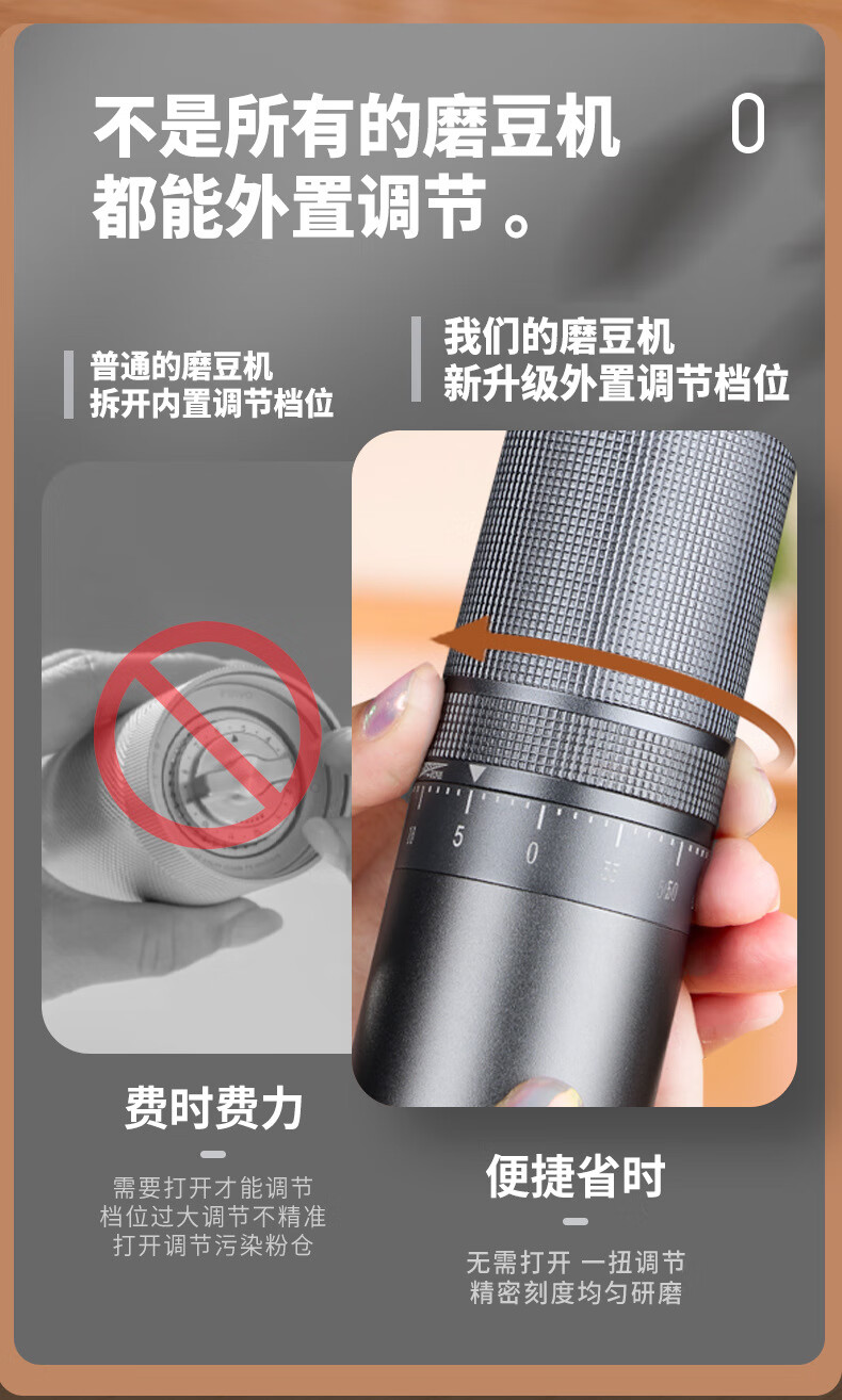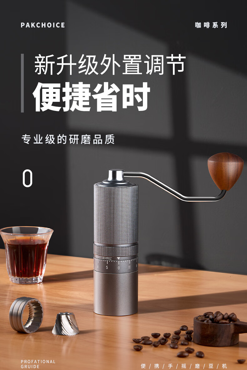 GOK external adjustment hand grinder steel core seven-star household coffee grinder outdoor portable coffee grinder square external adjustment seven-star-gun gray