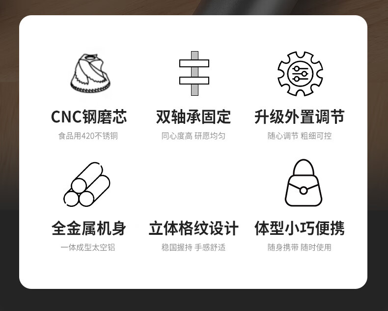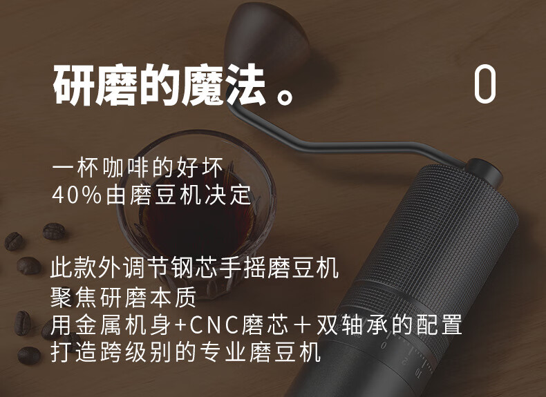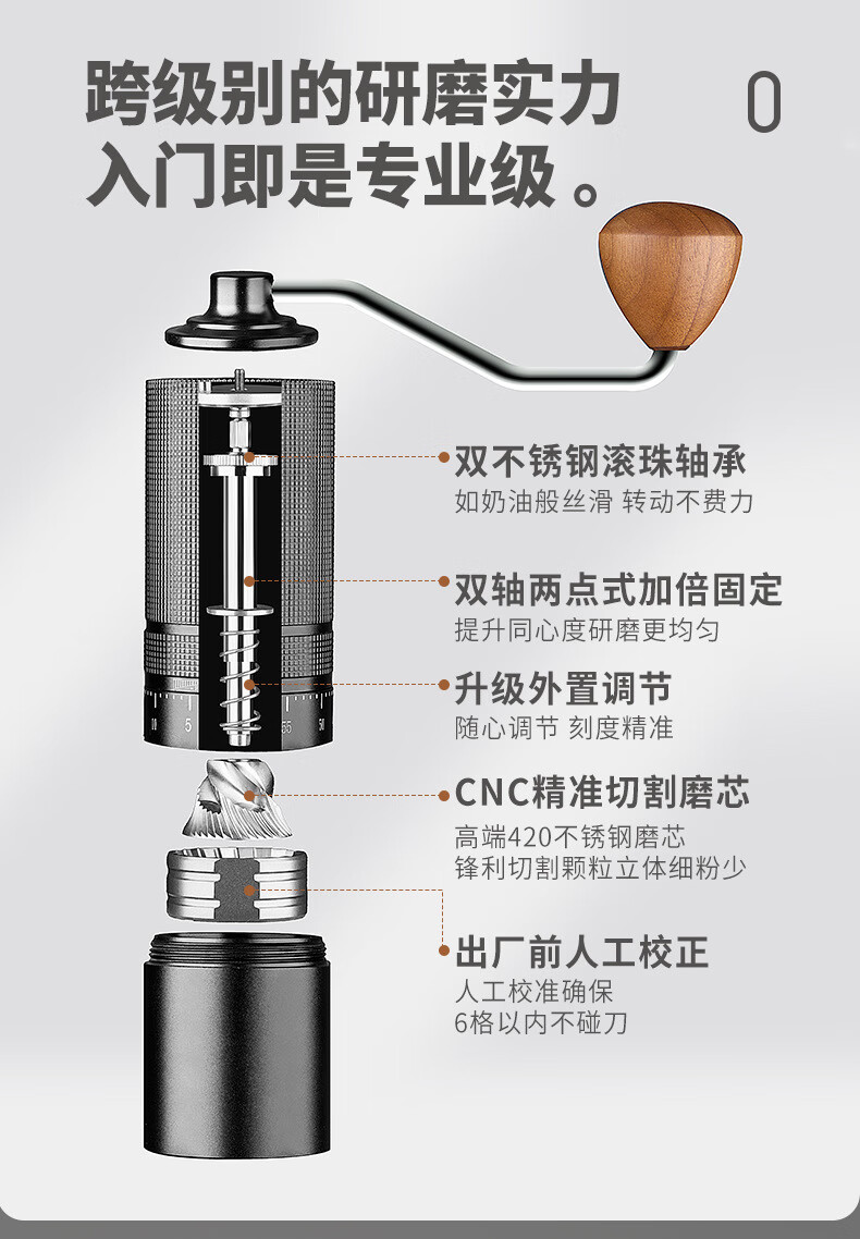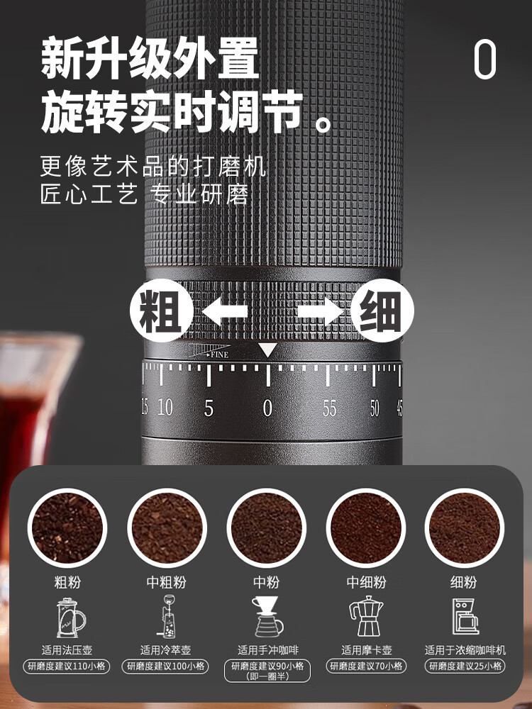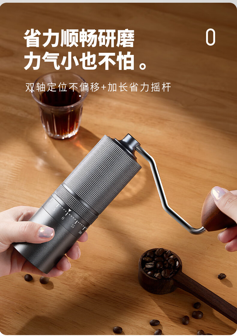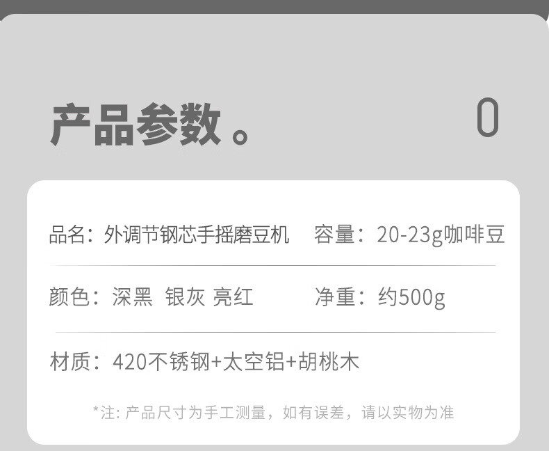 GOK external adjustment hand grinder steel core seven-star household coffee grinder outdoor portable coffee grinder square external adjustment seven-star-gun gray