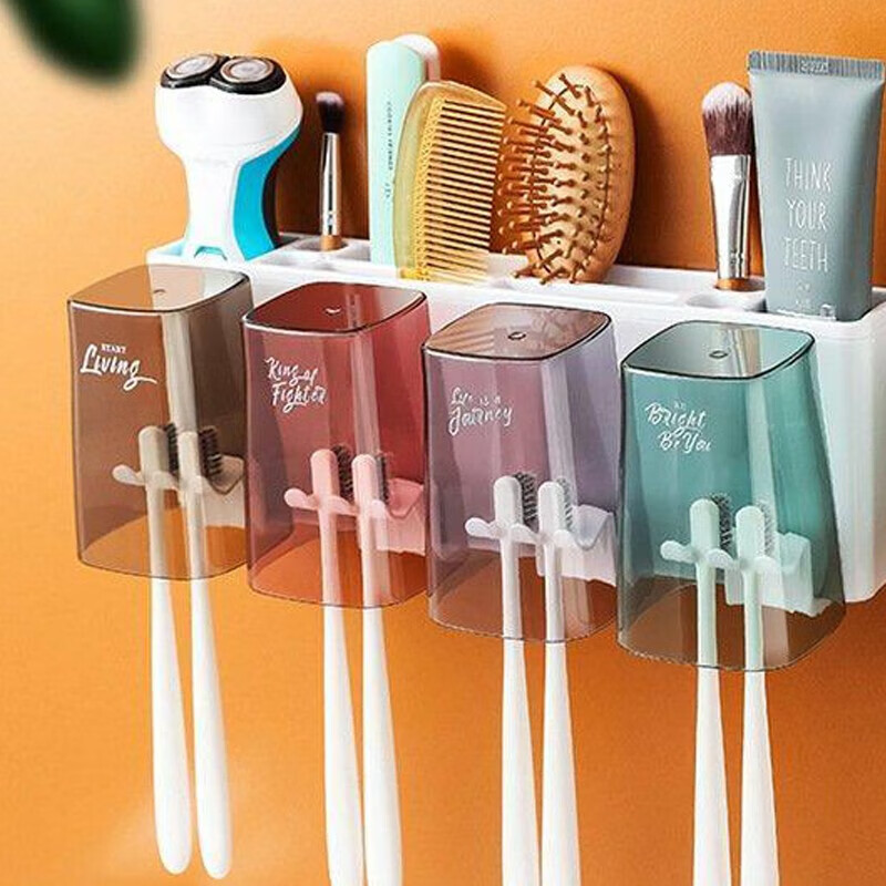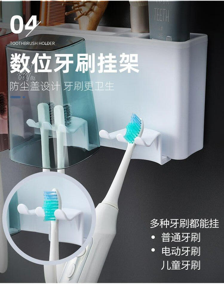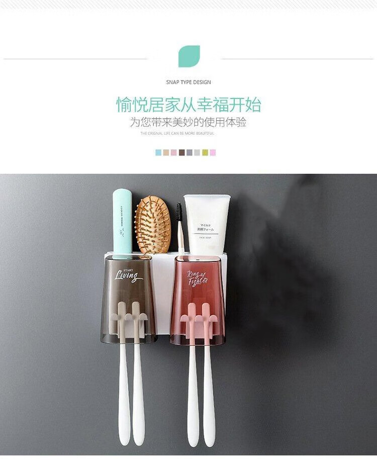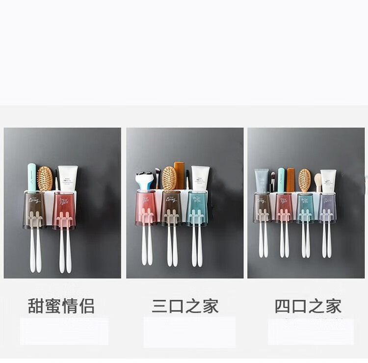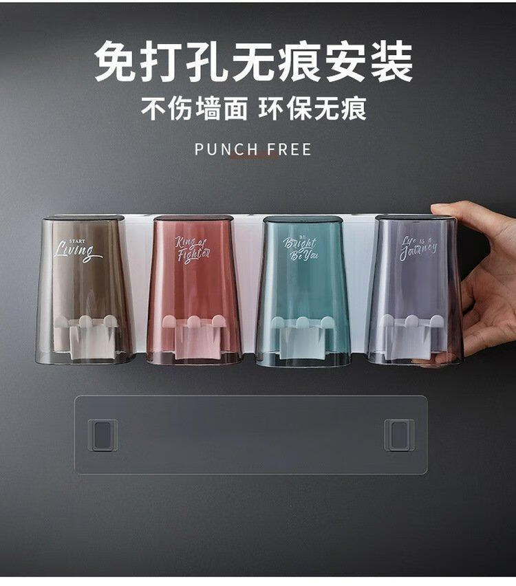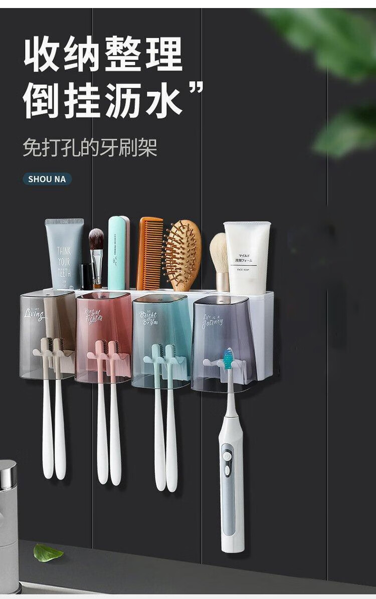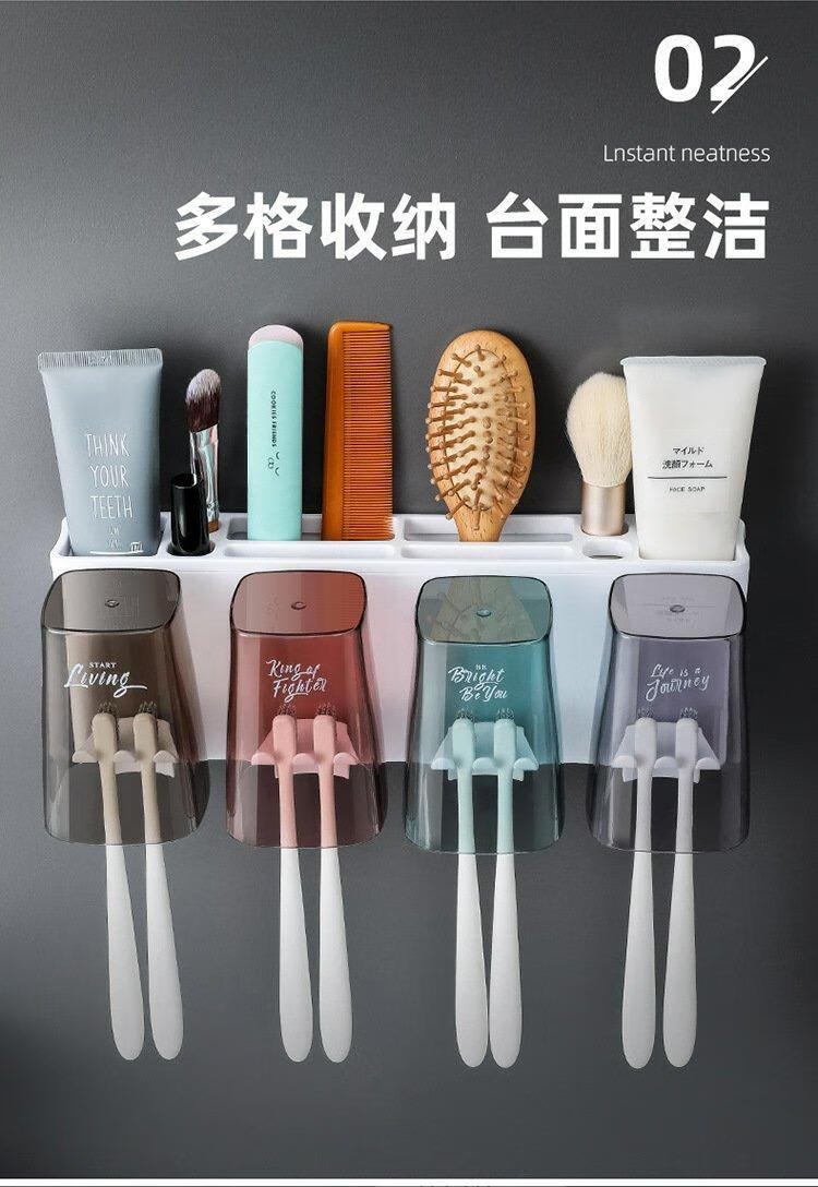 Qijitu punch-free bathroom toothbrush rack tooth cup storage box set mouthwash wall hanging suction cup wall hanging family of four + delivery of four tooth cups