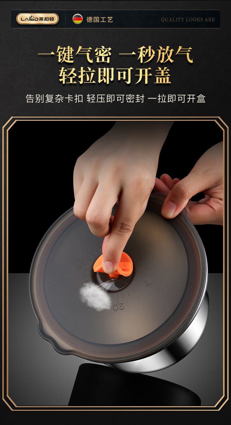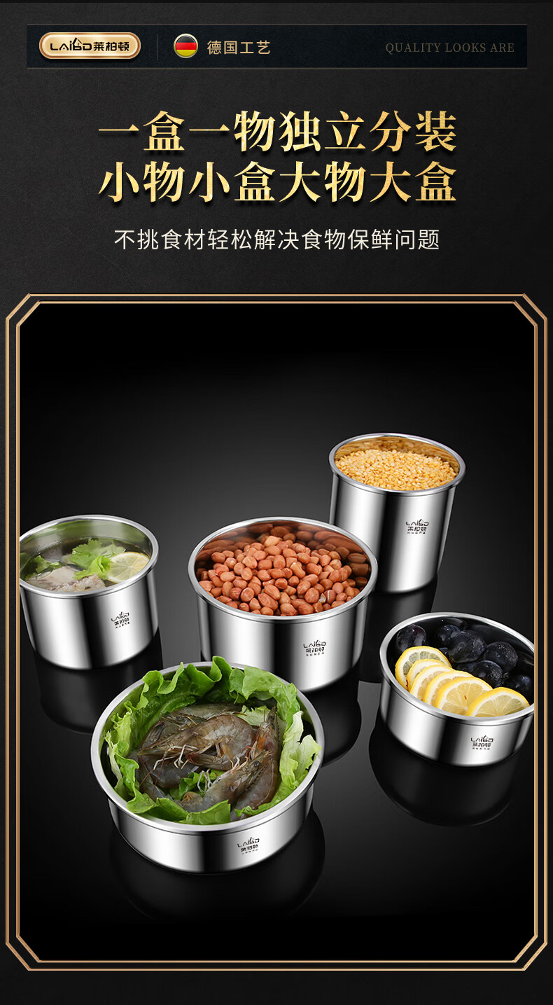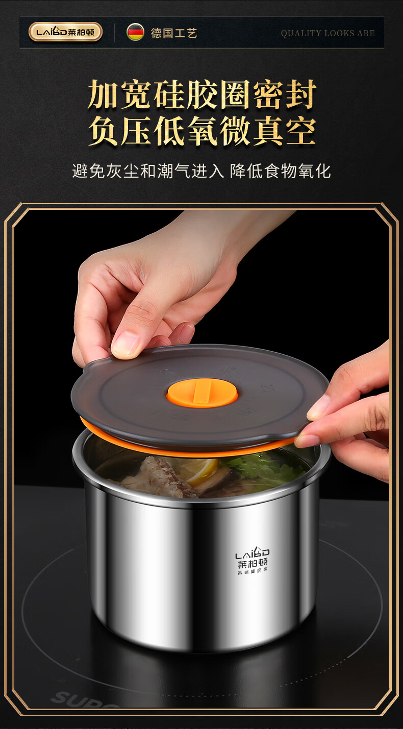 Labton 316 stainless steel crisper refrigerator storage box round vacuum sealed box fruit lunch box food sample box high style 2200ml crisper box
