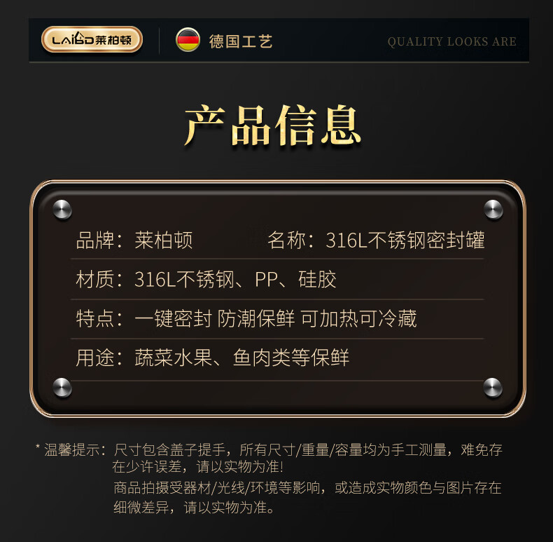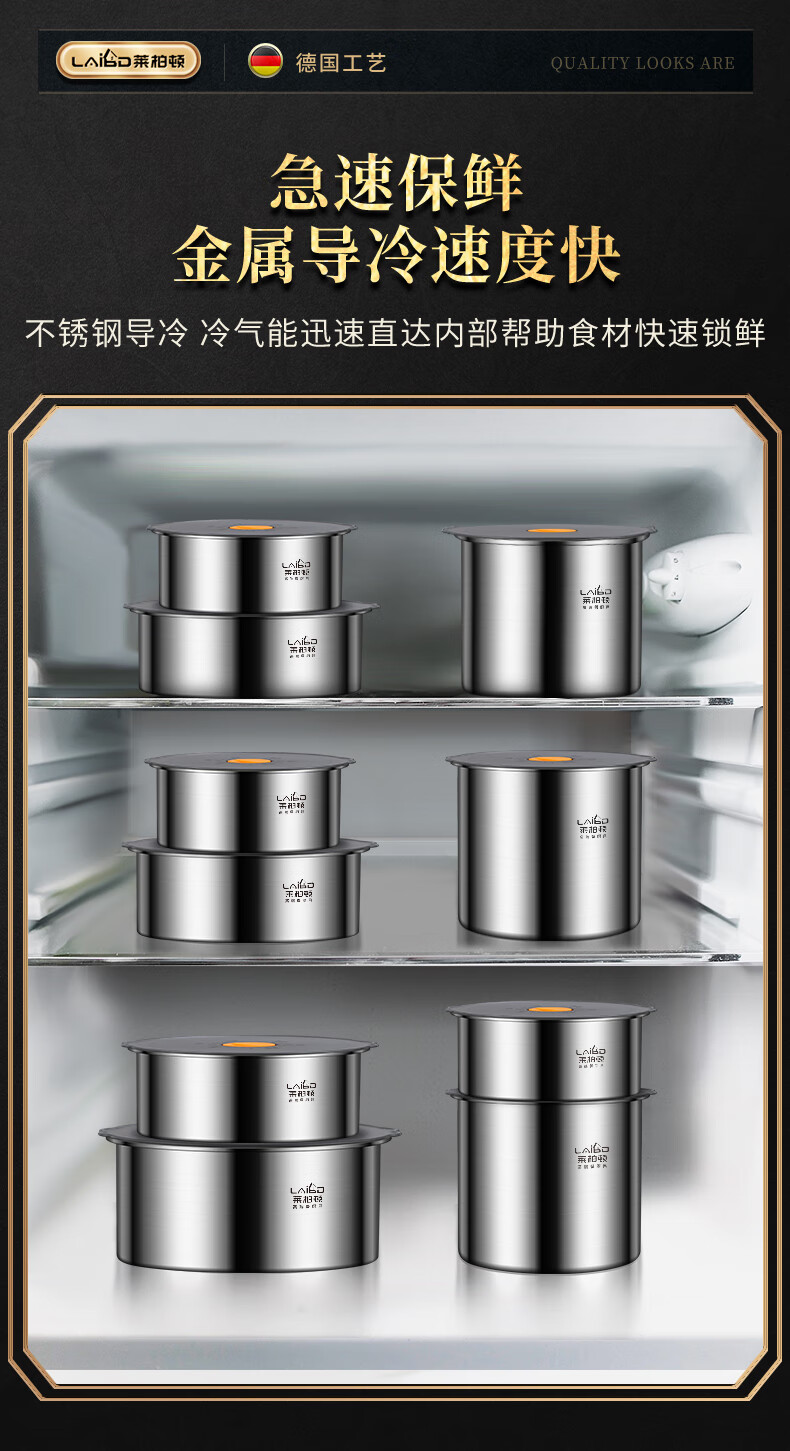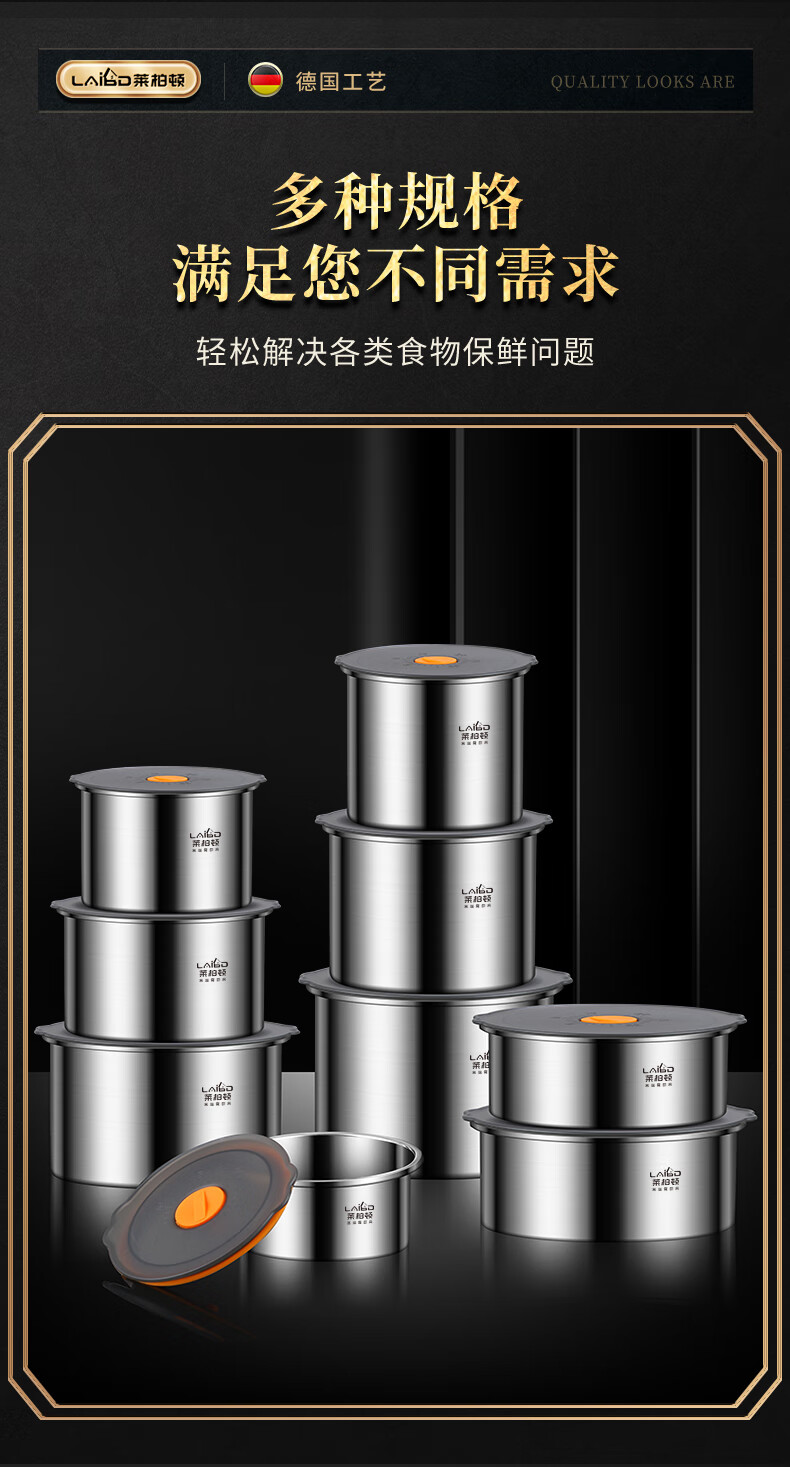 Labton 316 stainless steel crisper refrigerator storage box round vacuum sealed box fruit lunch box food sample box high style 2200ml crisper box