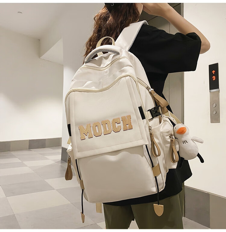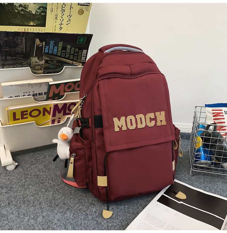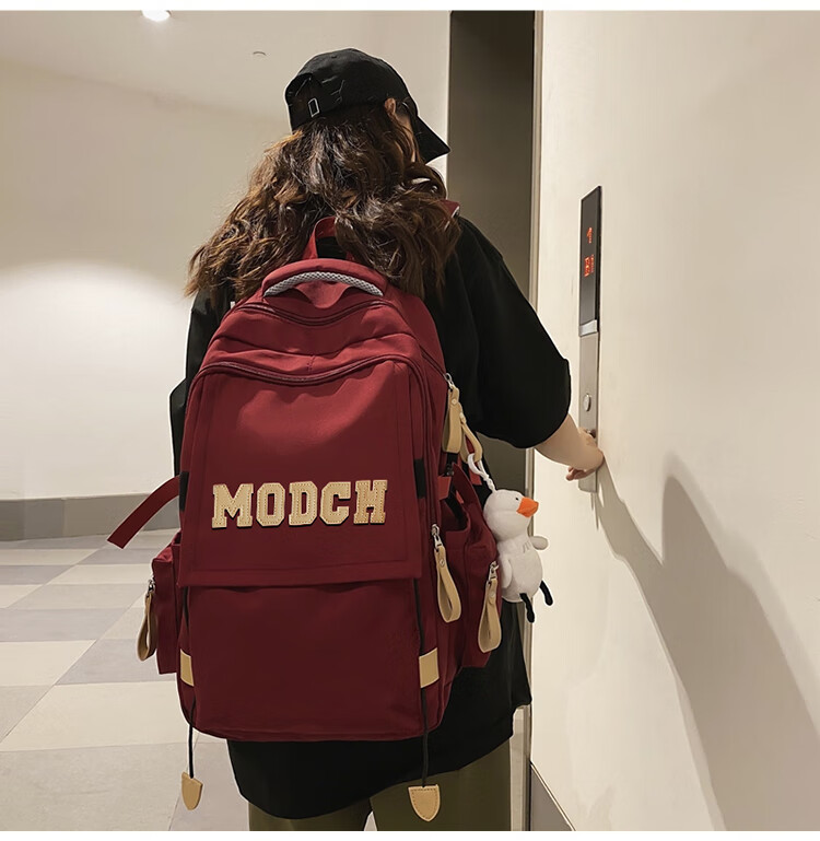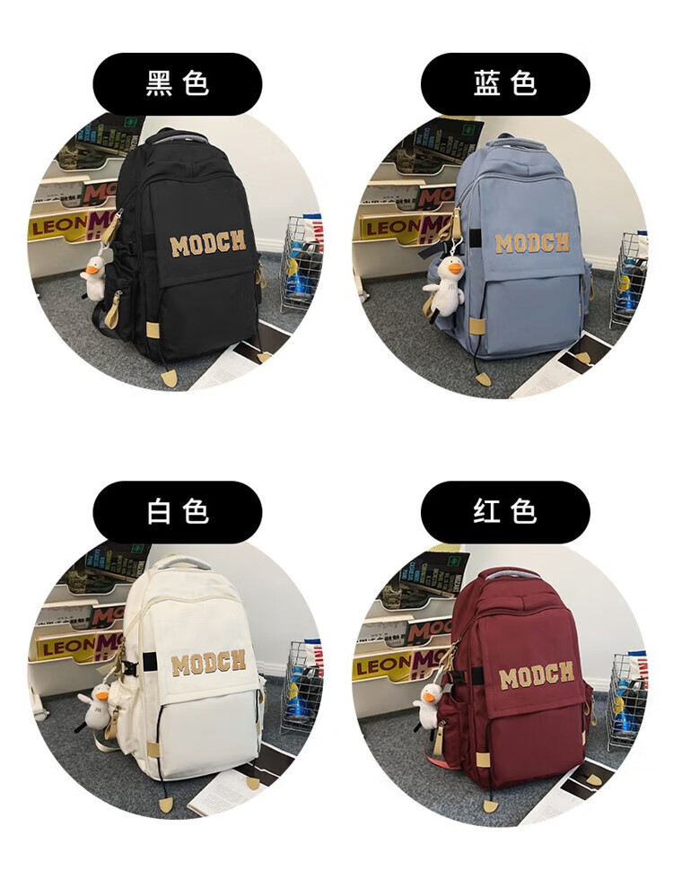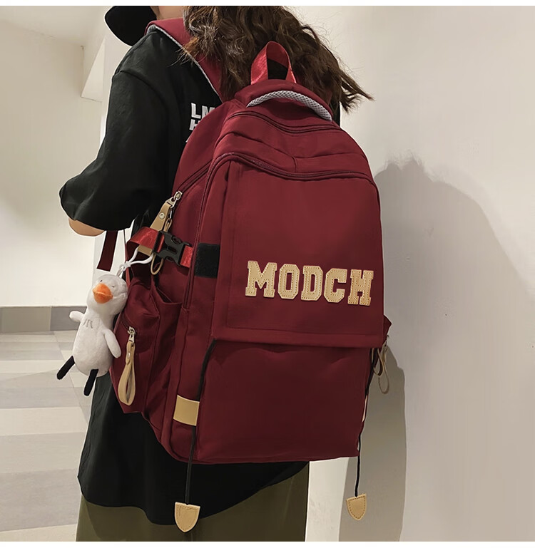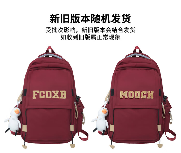 Doublestar schoolbag, junior high school girl, high school student backpack, trendy large capacity sports simple computer bag, red with duck pendant