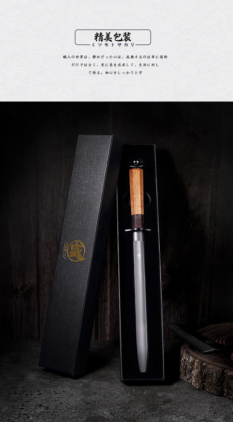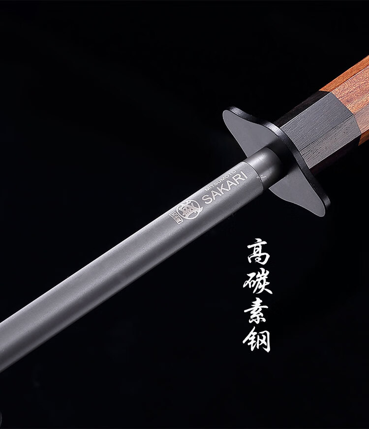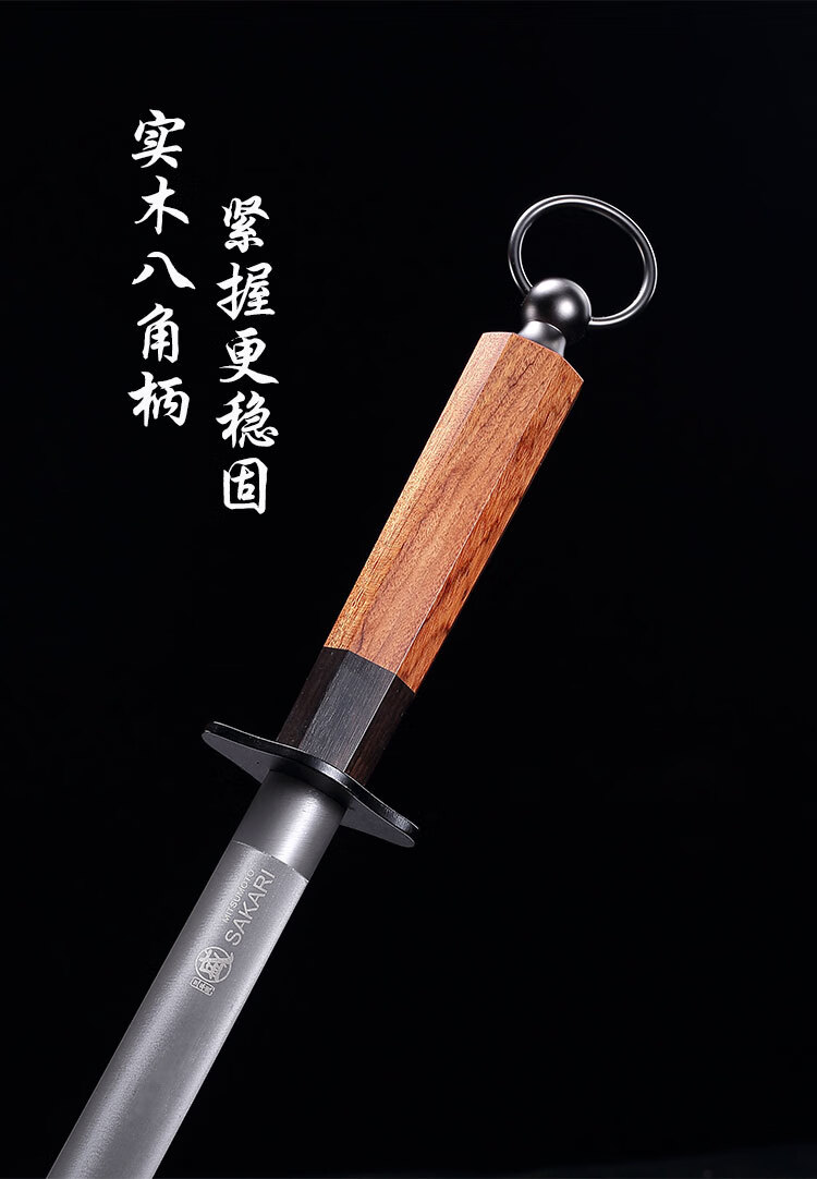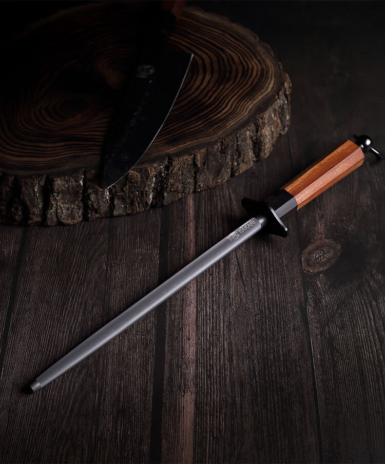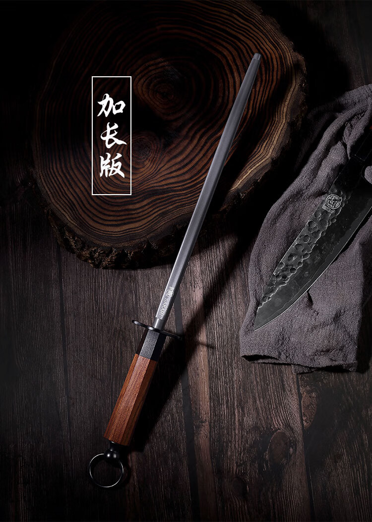 Sanbonsheng Japan imported knife sharpening stick butcher special slaughtering commercial fine grinding professional sharpening stick steel rod household knife sharpening artifact 12-inch round sharpening stick solid wood handle