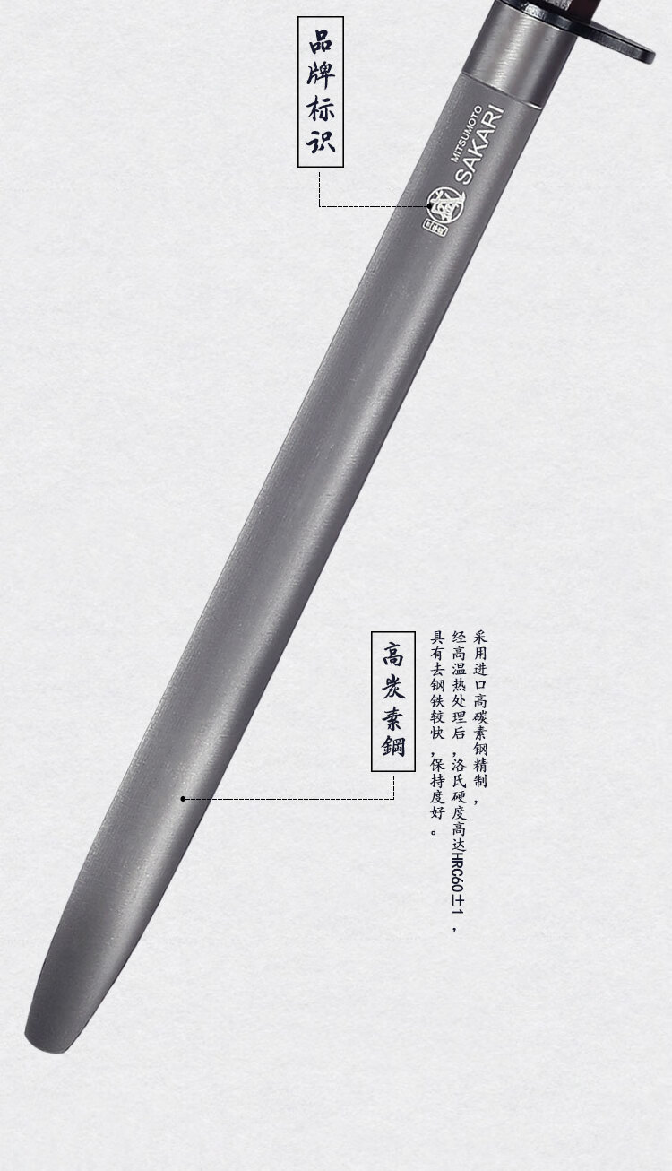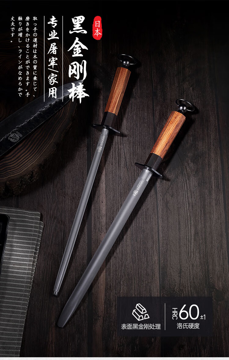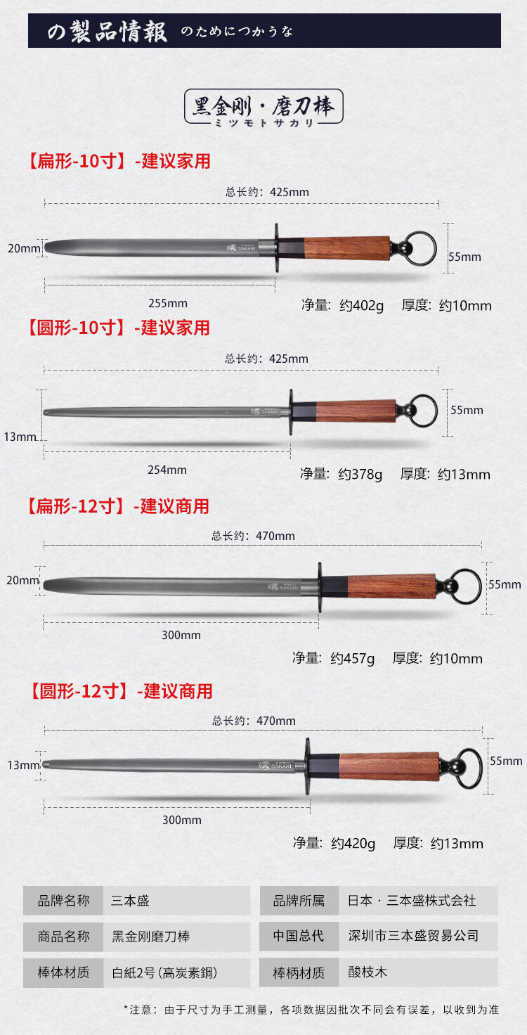 Sanbonsheng Japan imported knife sharpening stick butcher special slaughtering commercial fine grinding professional sharpening stick steel rod household knife sharpening artifact 12-inch round sharpening stick solid wood handle