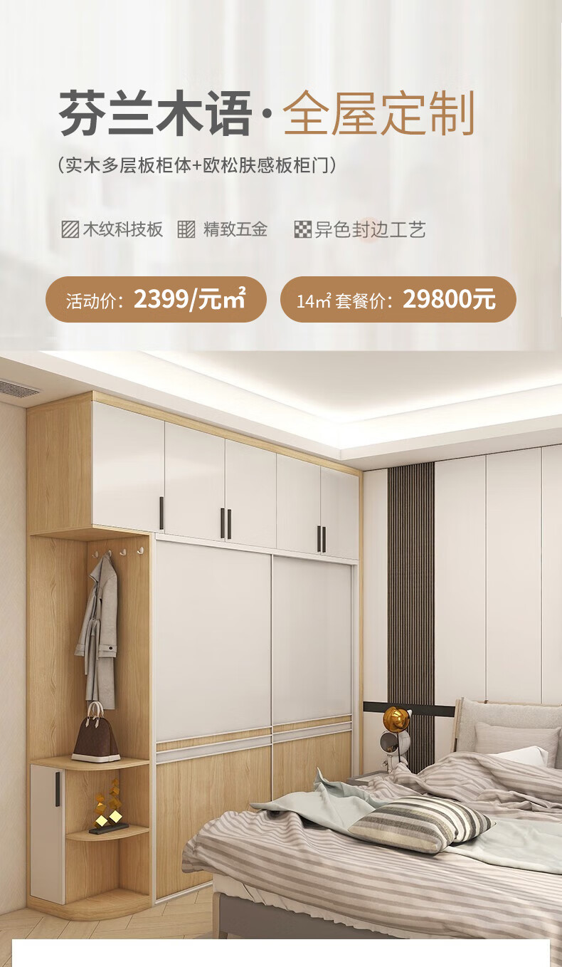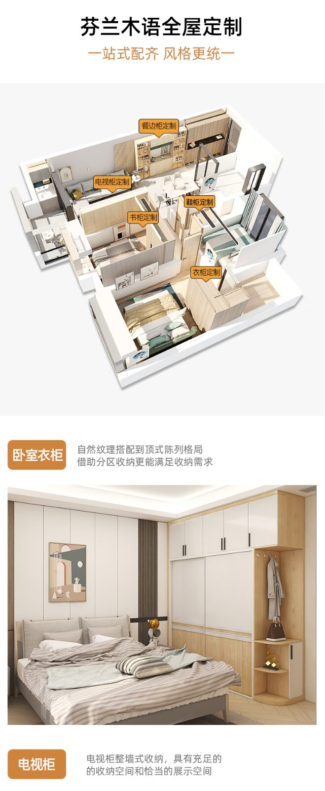 Dinoya whole house customization, bedroom wardrobe customization TV cabinet, cabinet solid wood multi-layer board + cabinet door European pine skin-feel board, basic customization (single flat)