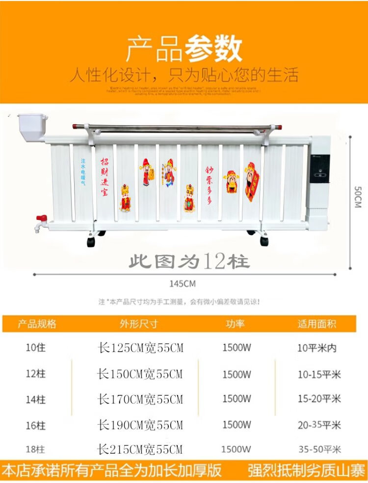 Water-filled radiator heater water-filled radiator energy-saving heating large area radiator household water radiator 10-column knob intelligent control type