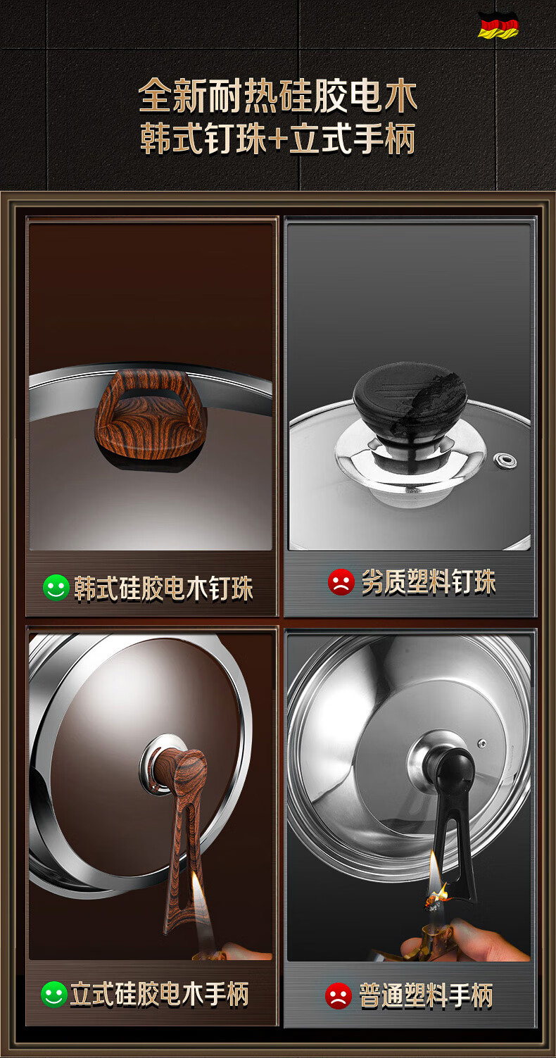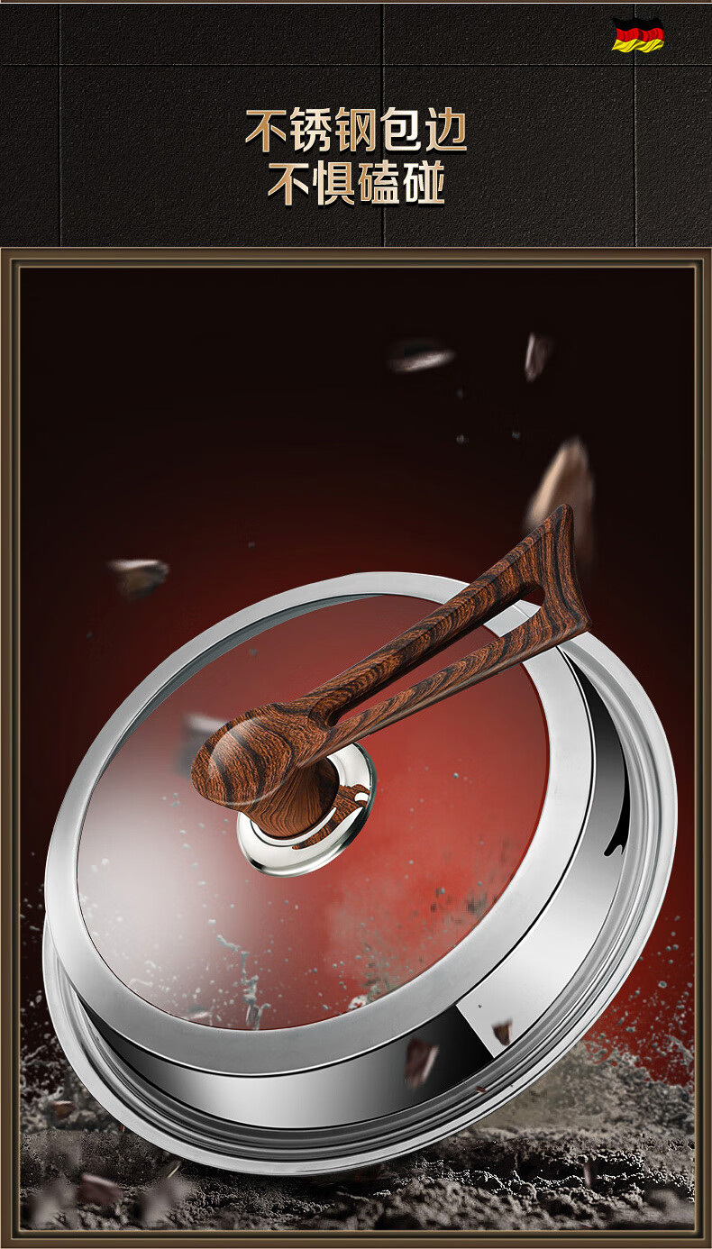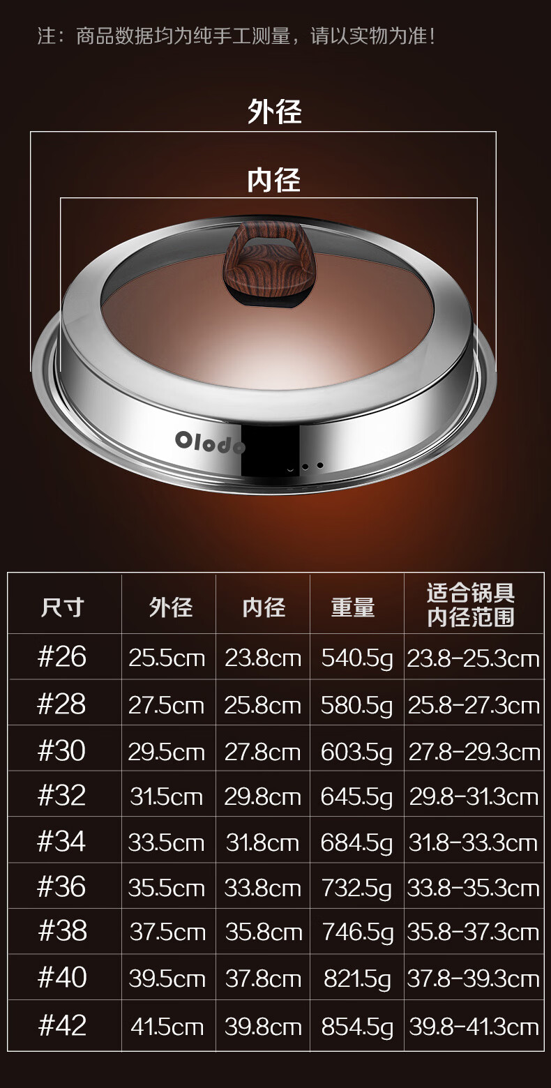 Olodo soup pot, steamer, wok, transparent tempered glass pot lid, thickened and elevated stainless steel countertop, stand-up cover with handle, 34cm full see-through, with 2 handles (can stand up