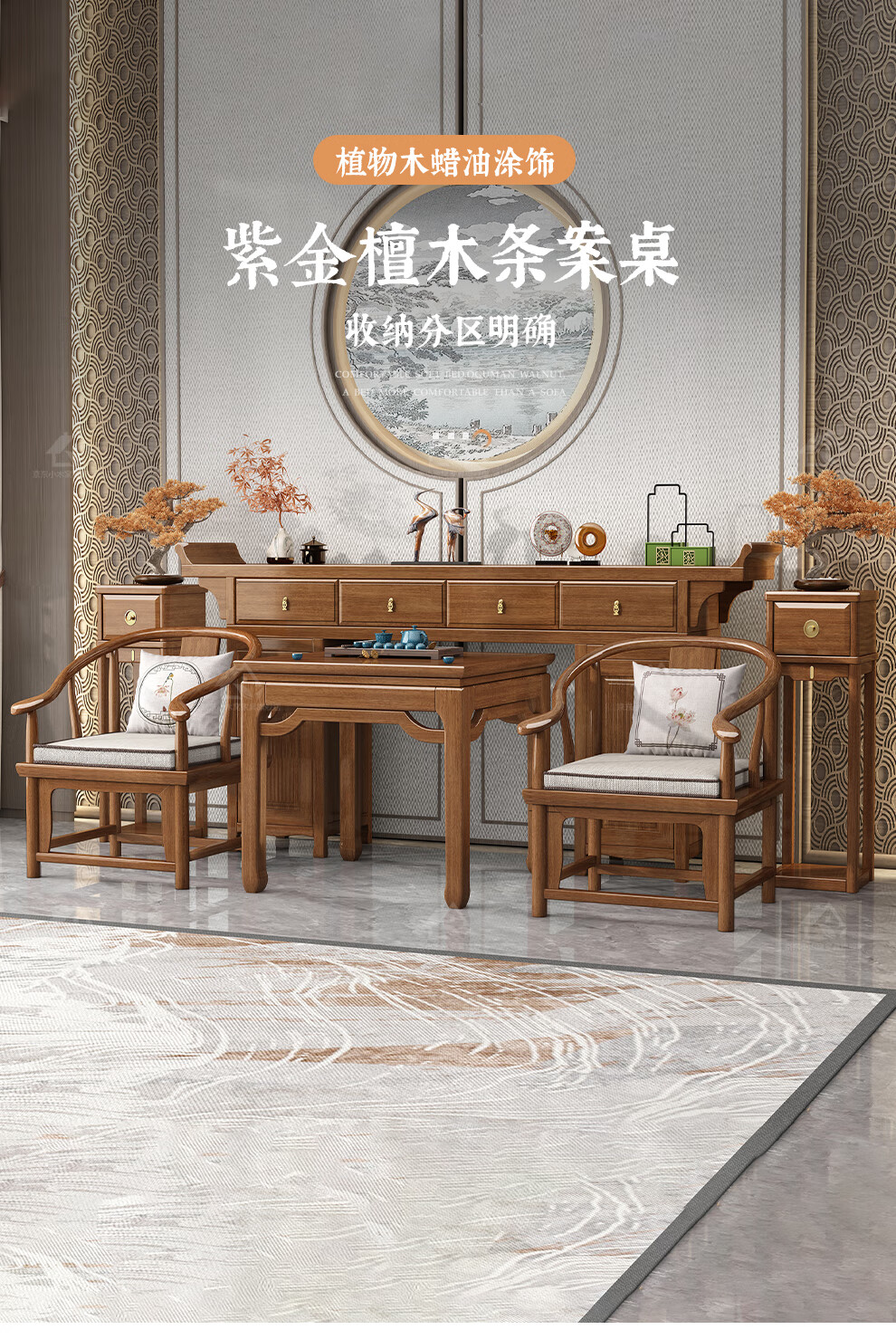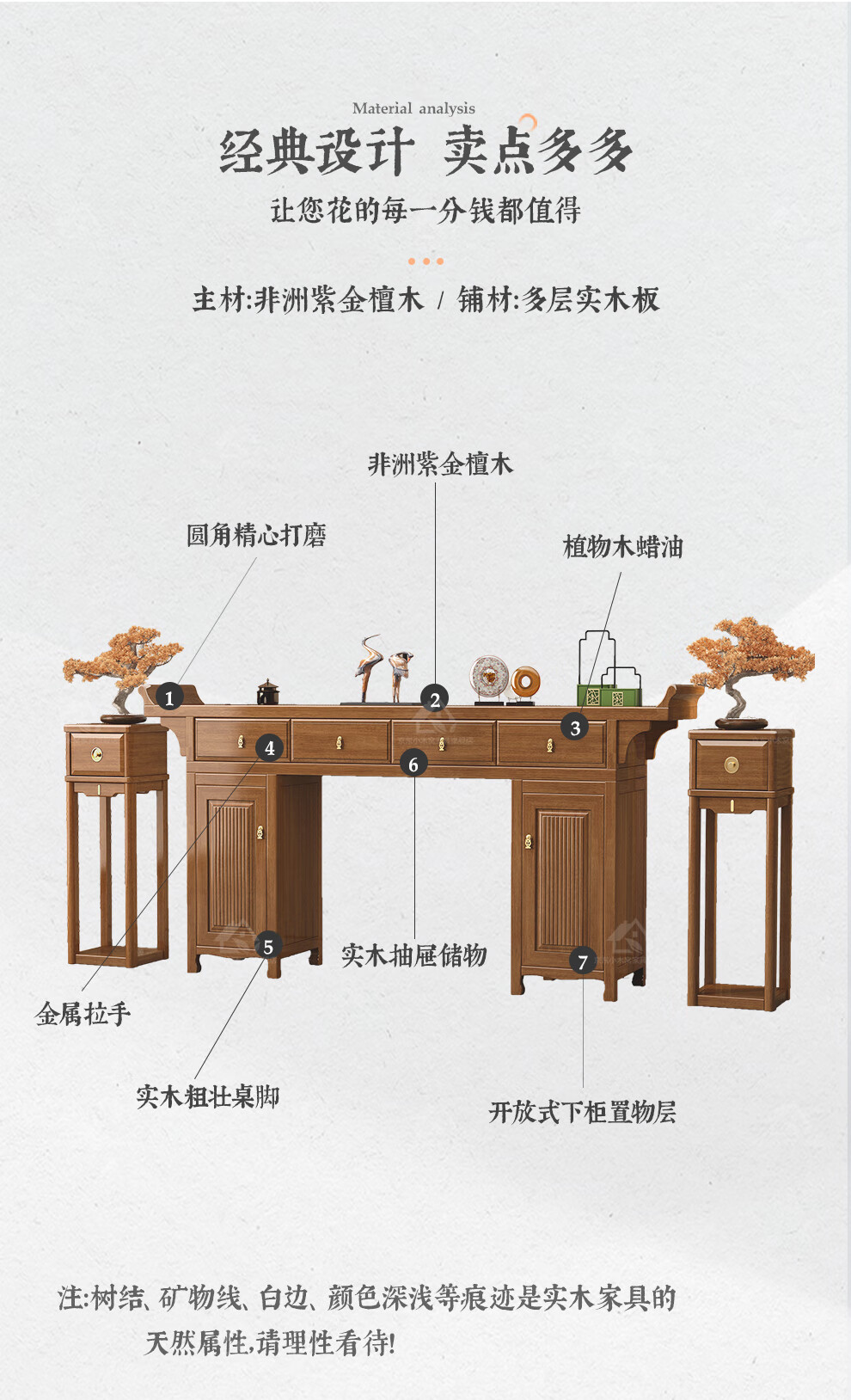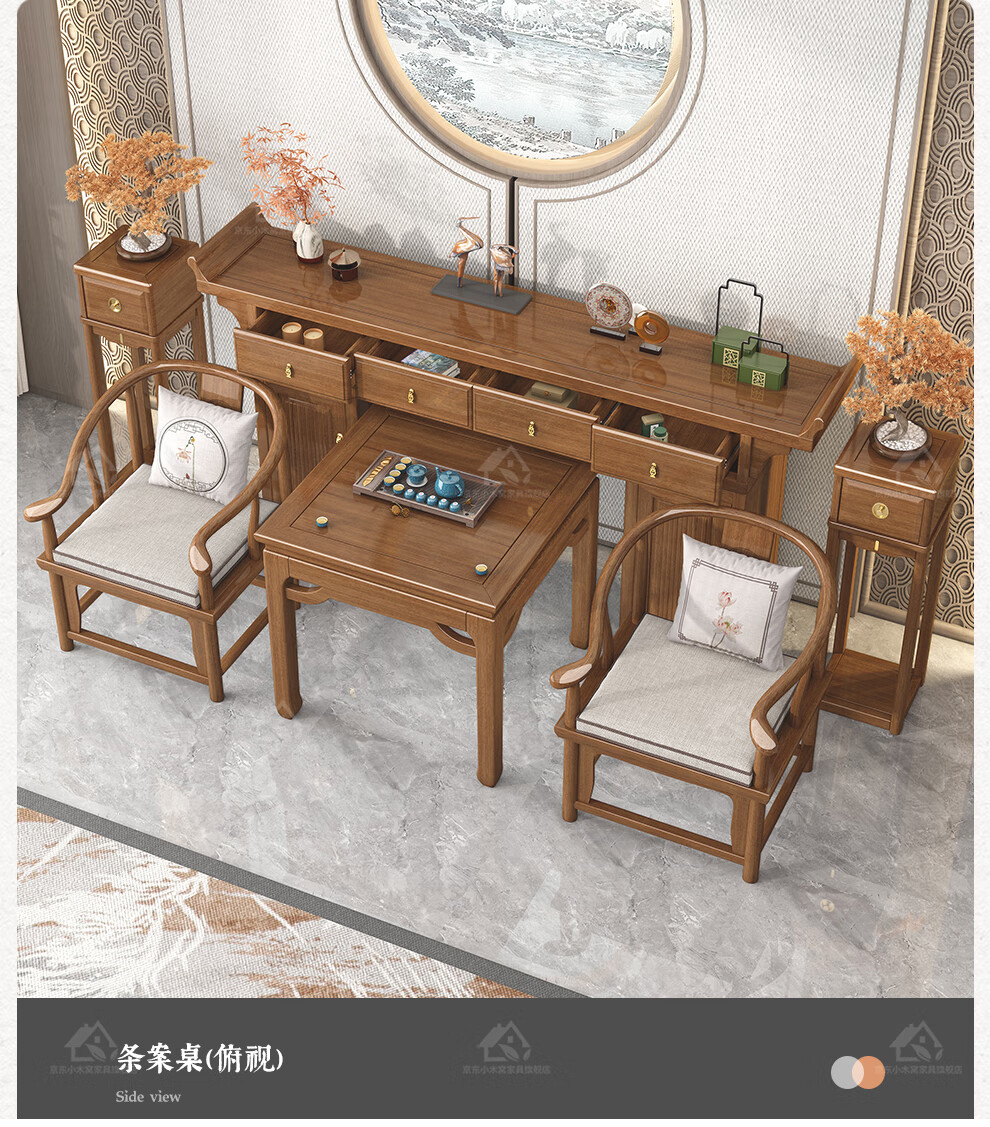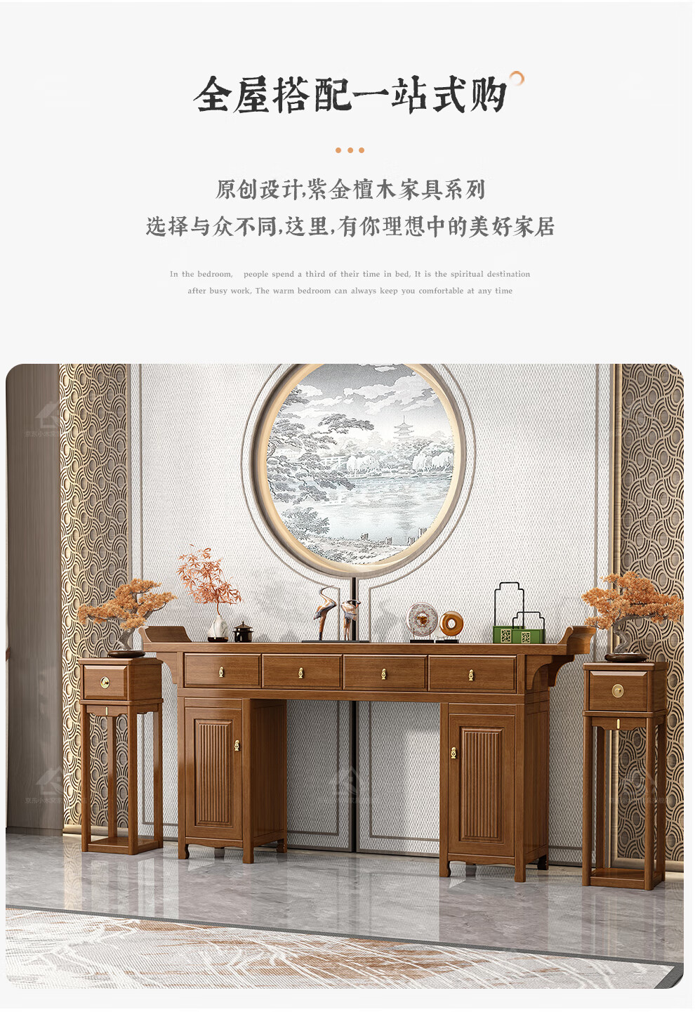 Small wooden nest, altar table, altar table, entrance table, Zen-like nave, six-piece set, new Chinese style purple sandalwood solid wood end view table, altar table/offering table/ altar (horseshoe leg design) assembly