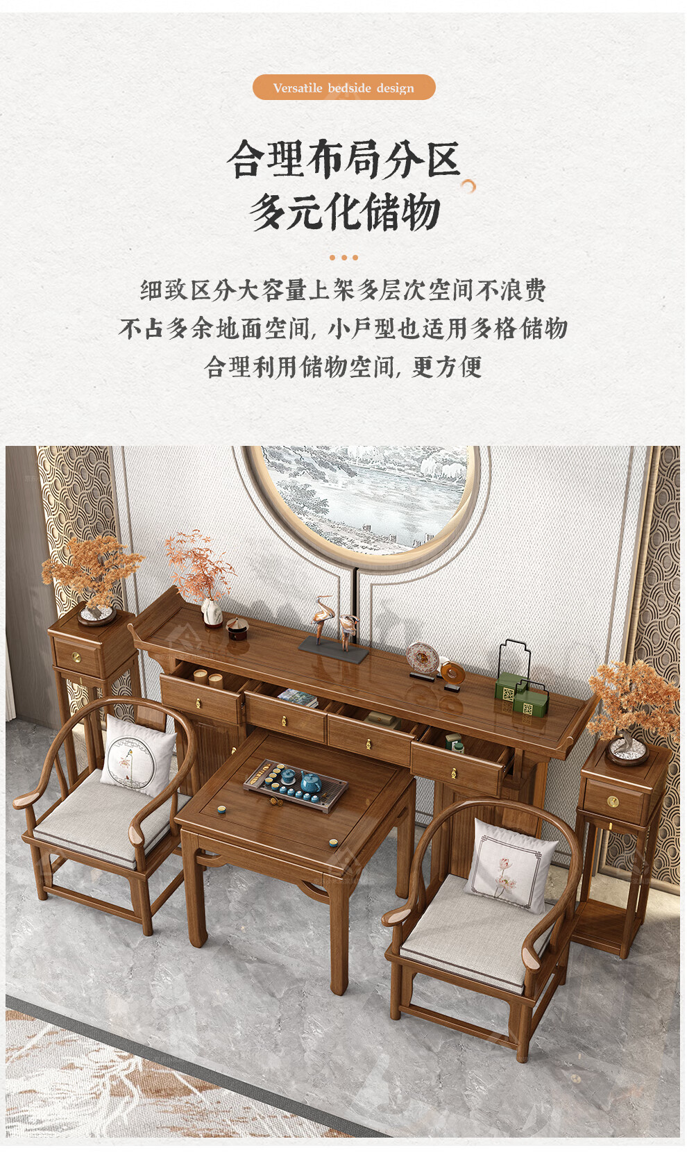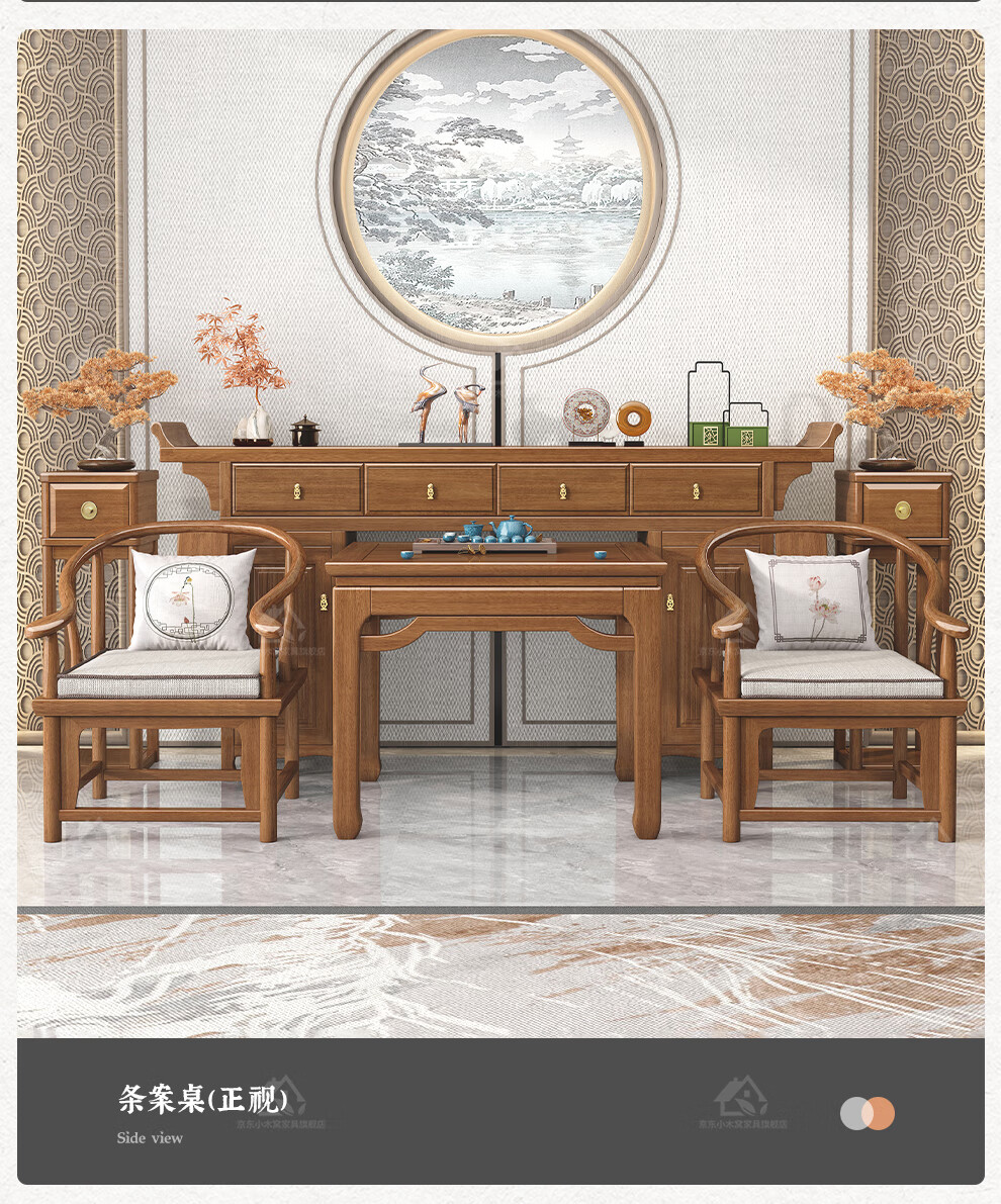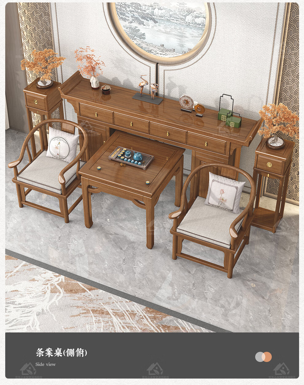 Small wooden nest, altar table, altar table, entrance table, Zen-like nave, six-piece set, new Chinese style purple sandalwood solid wood end view table, altar table/offering table/ altar (horseshoe leg design) assembly