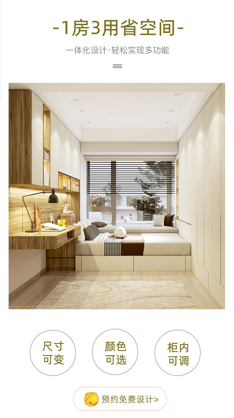 Gold Medal Wardrobe Tatami Whole House Customized Bed Wardrobe Desk Integrated Bedroom Furniture Customized Storage Multi-Function Room Prepayment