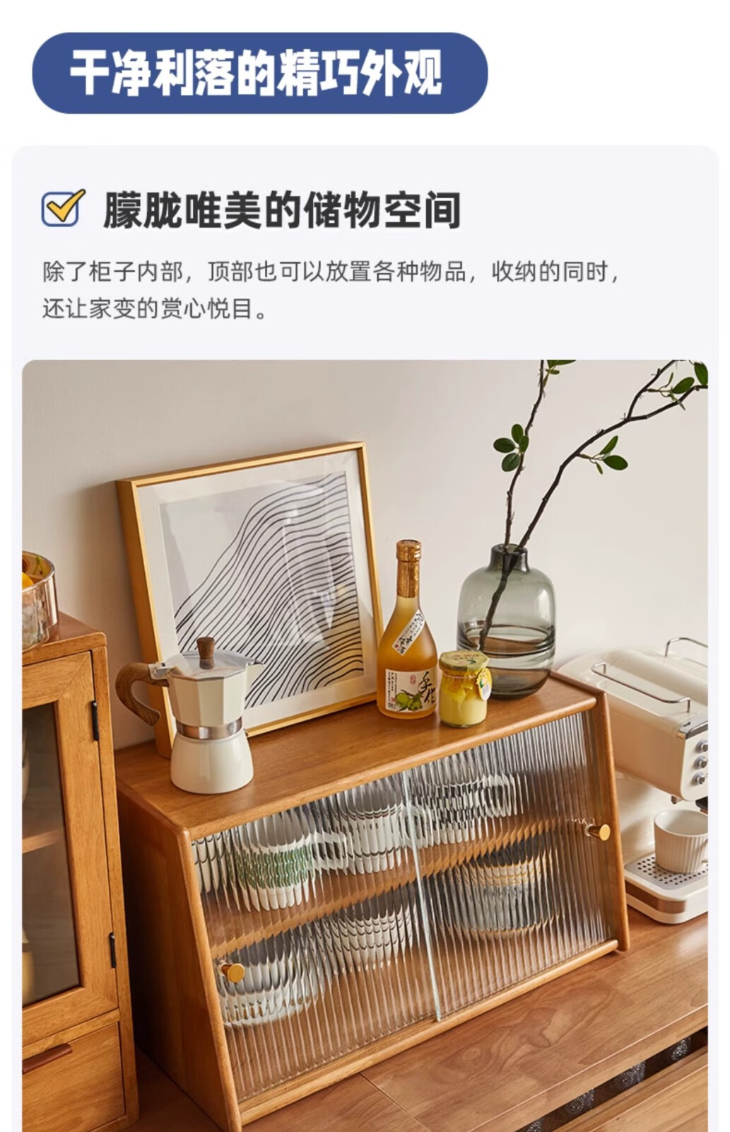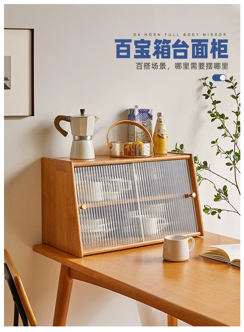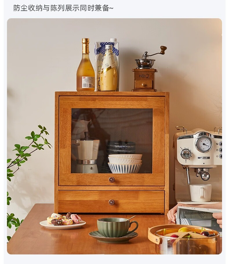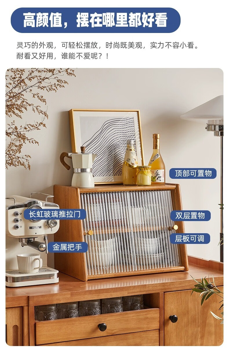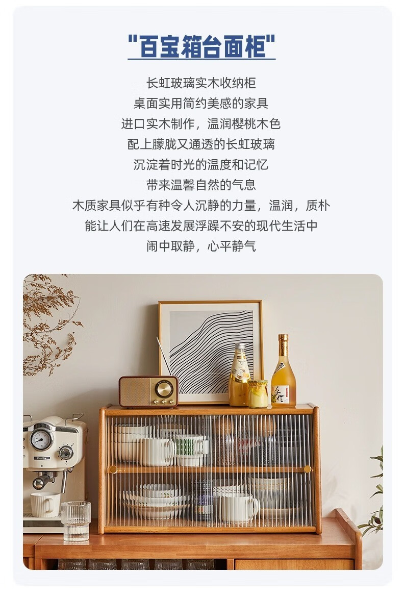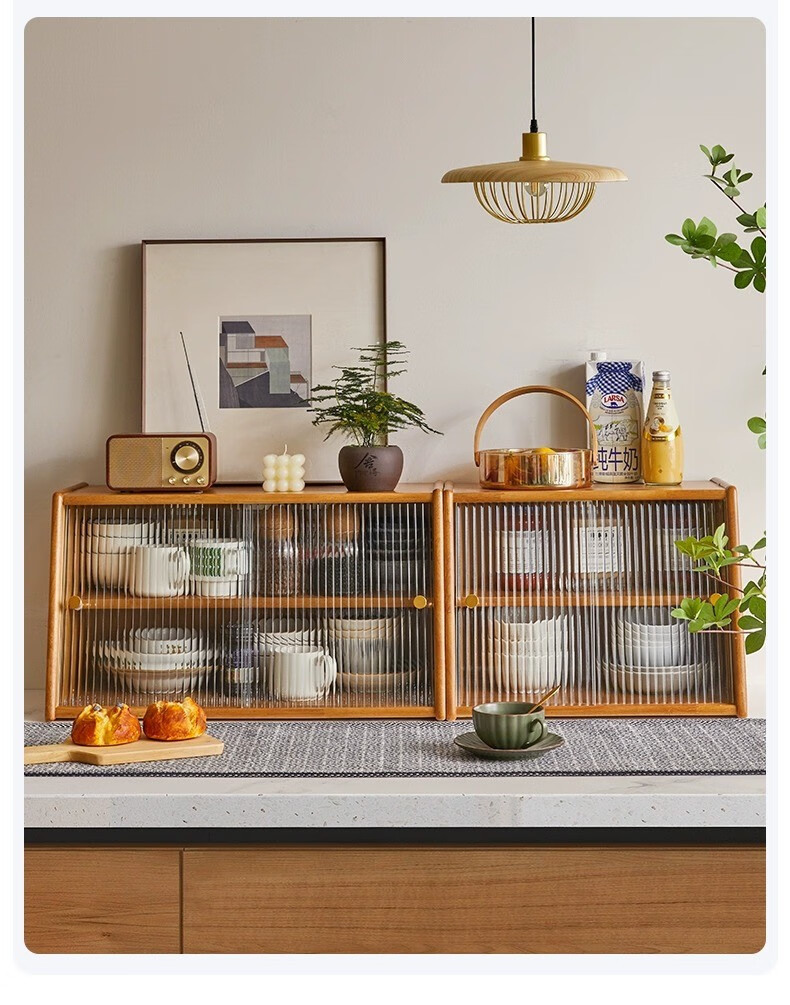Yiliuyuan Solid Wood Sideboard Kitchen Shelf Wall Cabinet Home Dining Table Cupboard Storage Desktop Storage Cup Holder 45cm Sliding Door Cherry Wood Color - Completely shipped