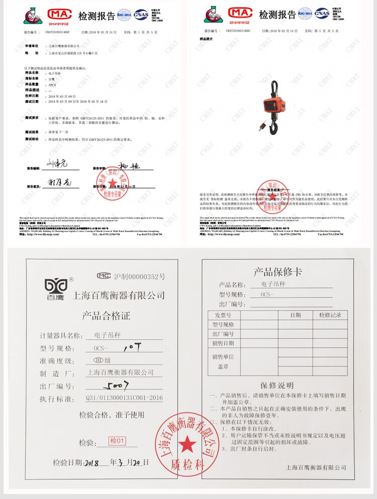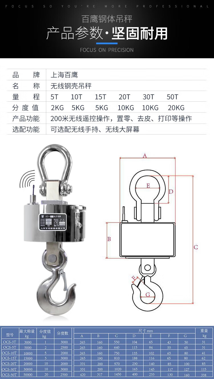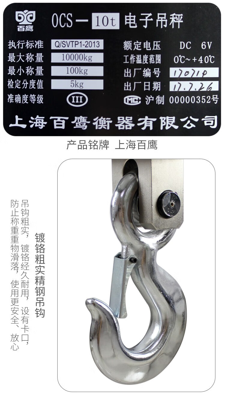 Taichuan BY-9800B Shanghai Baiying Electronic Crane Scale Wireless Printing Electronic Hook Scale BY-9800A Hook Scale 5 tons/with wireless printing table/cart included