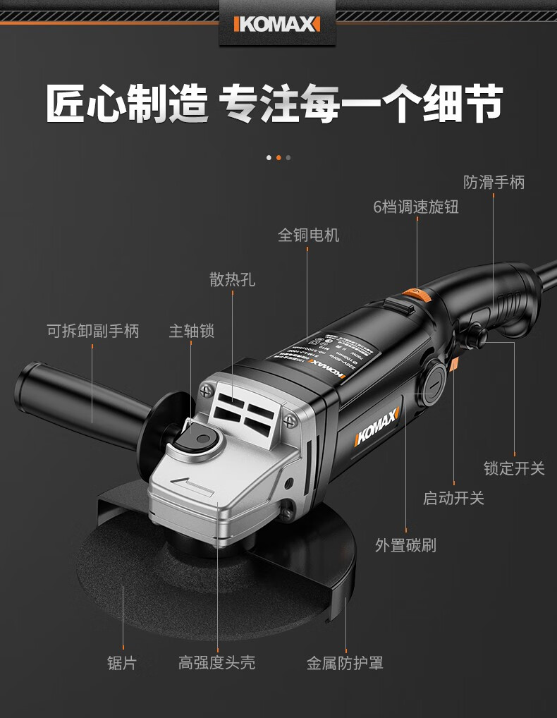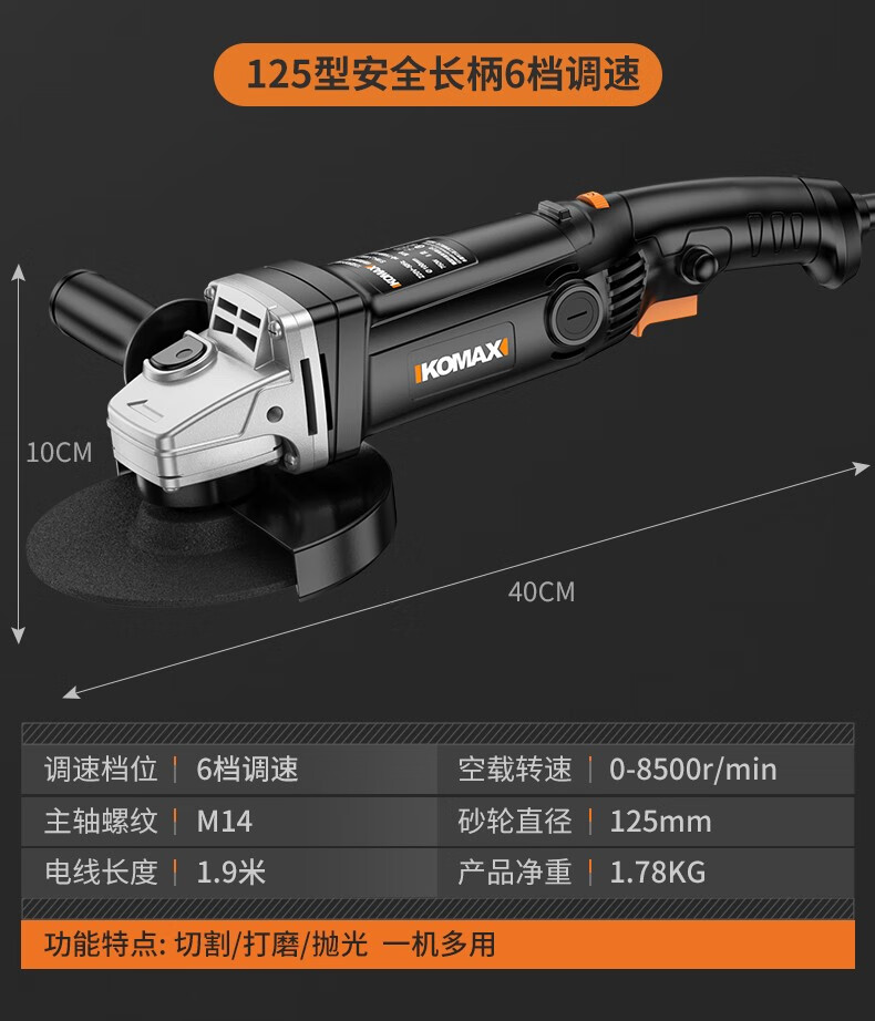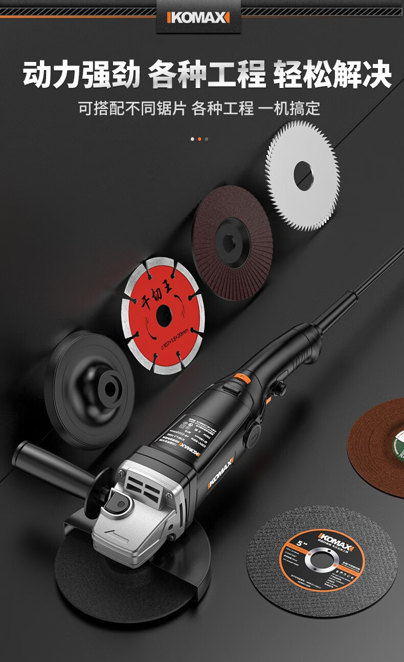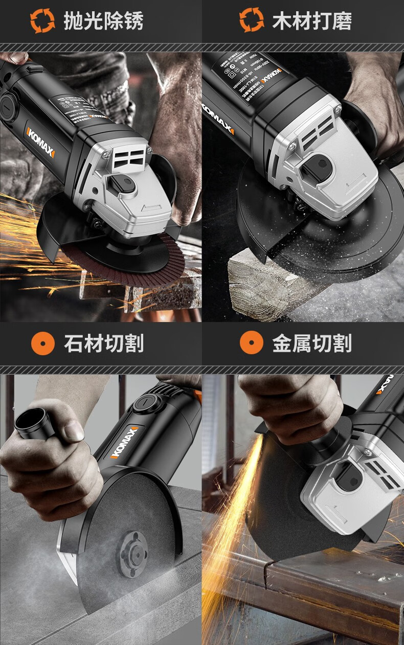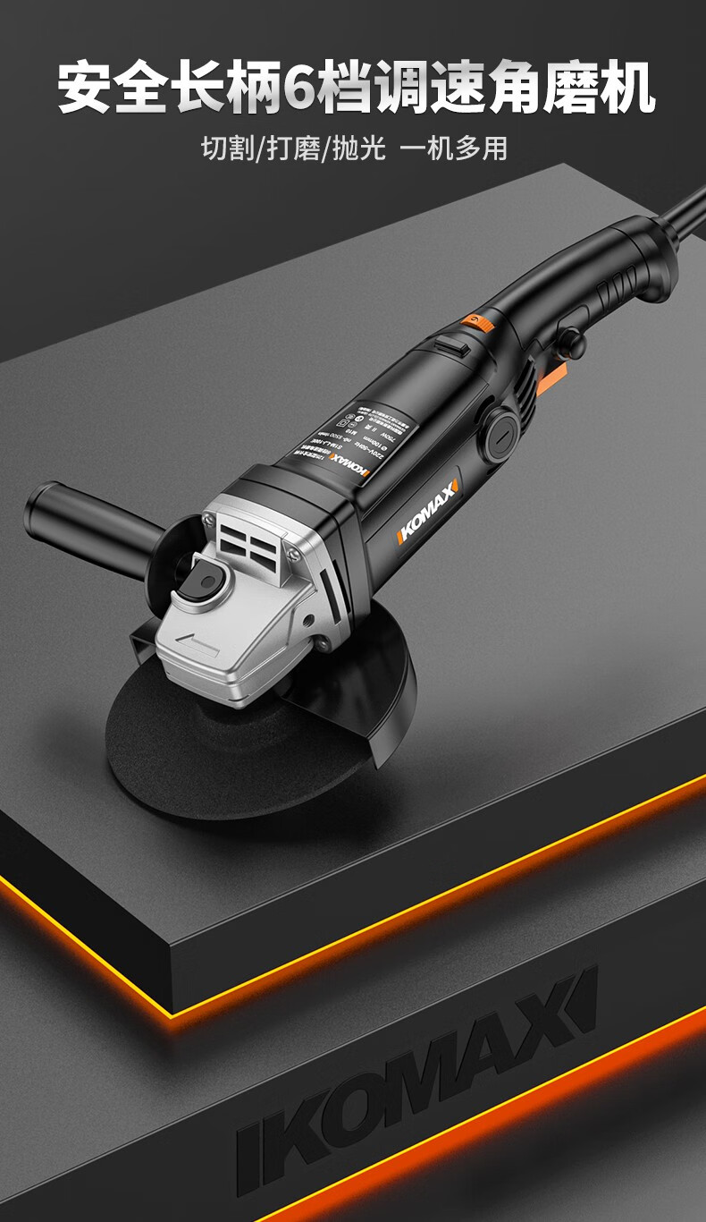 KOMAX angle grinder multi-function grinder polisher hand grinder polisher cutting machine household hand grinding wheel 100 type safety long handle 6-speed speed adjustment junior package