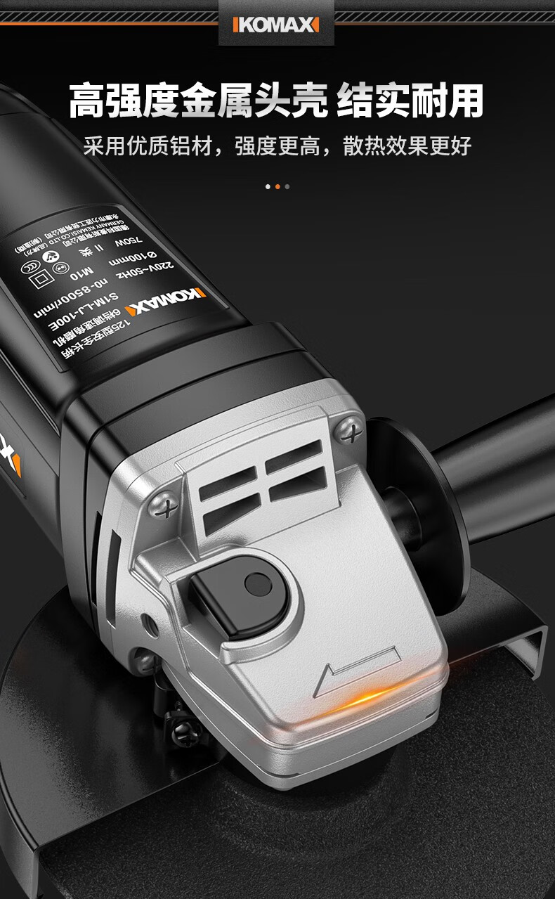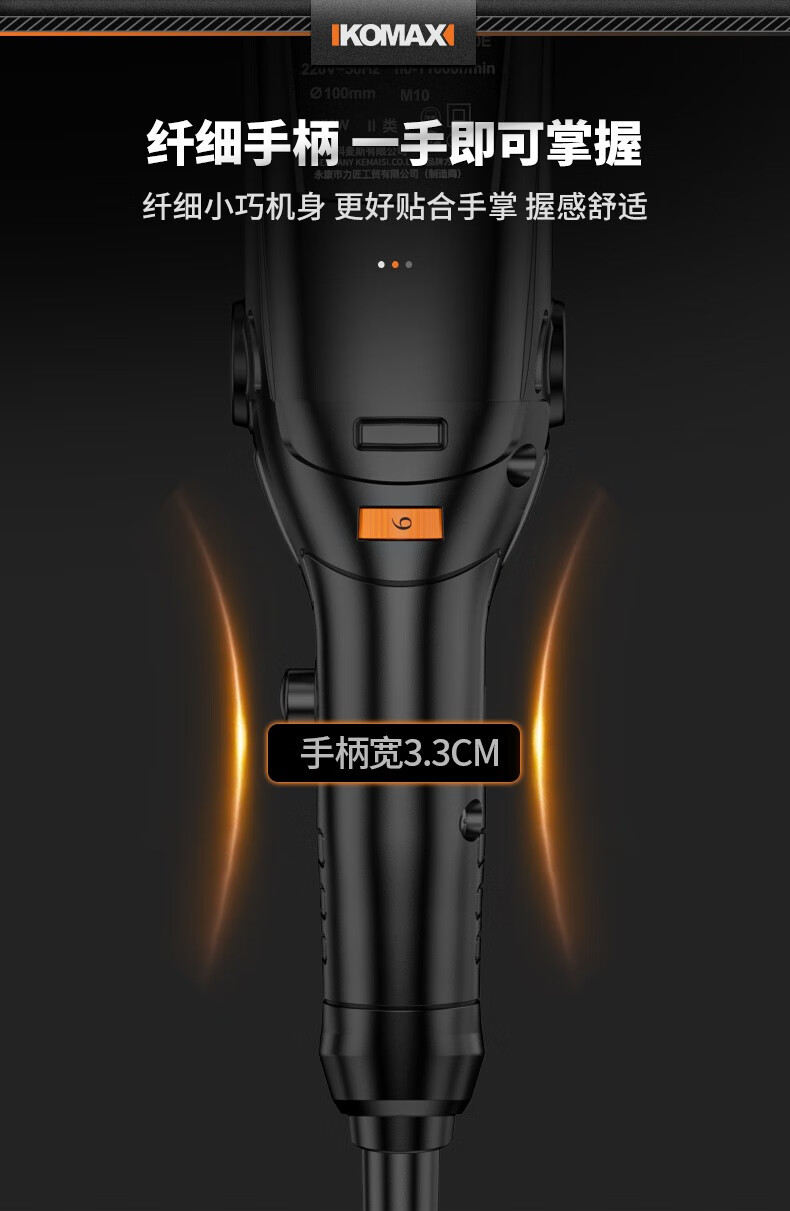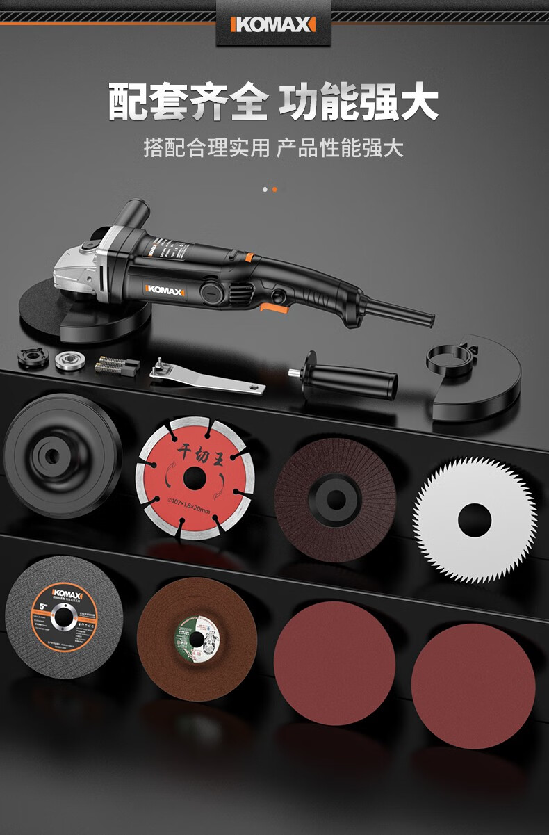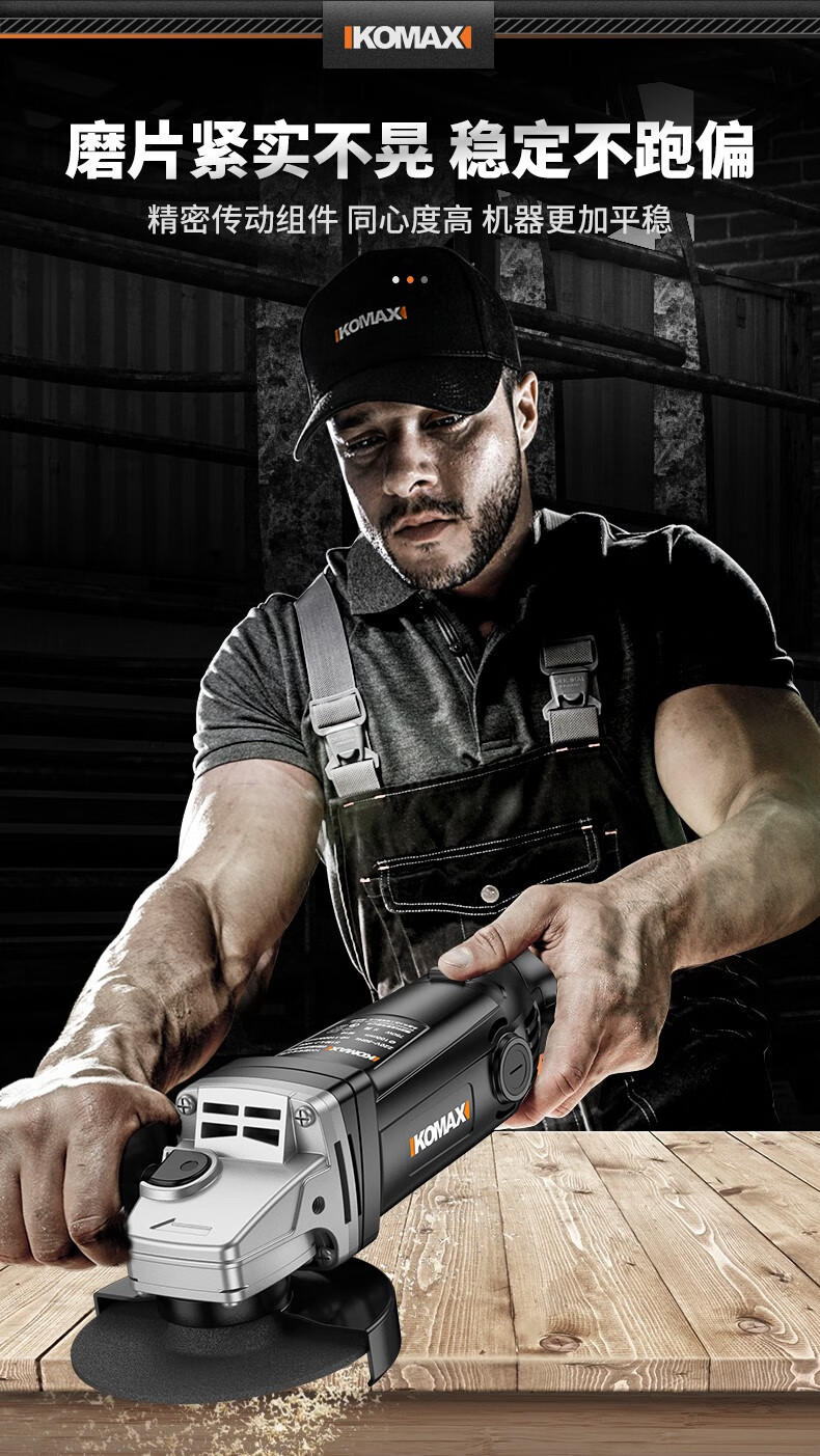 KOMAX angle grinder multi-function grinder polisher hand grinder polisher cutting machine household hand grinding wheel 100 type safety long handle 6-speed speed adjustment junior package
